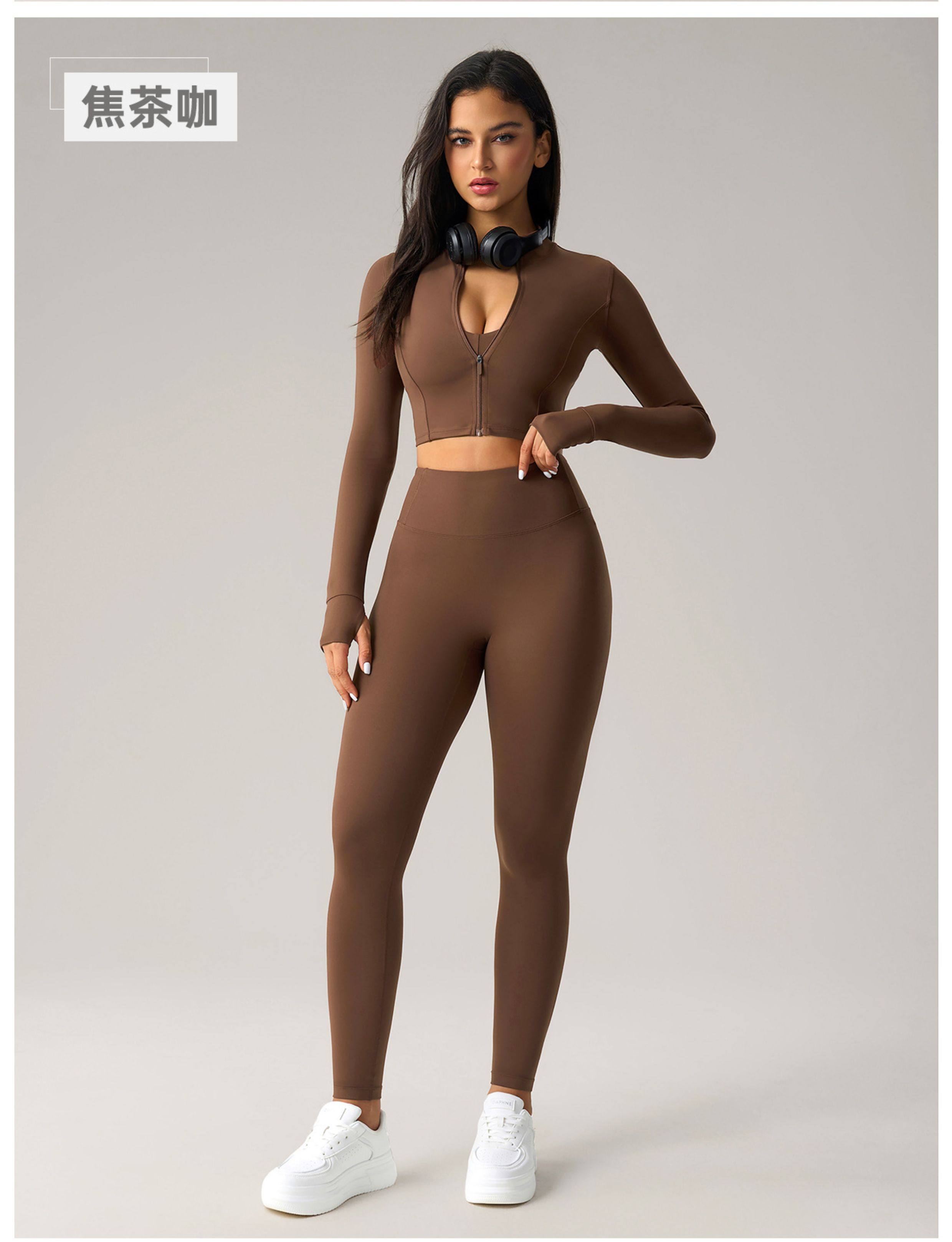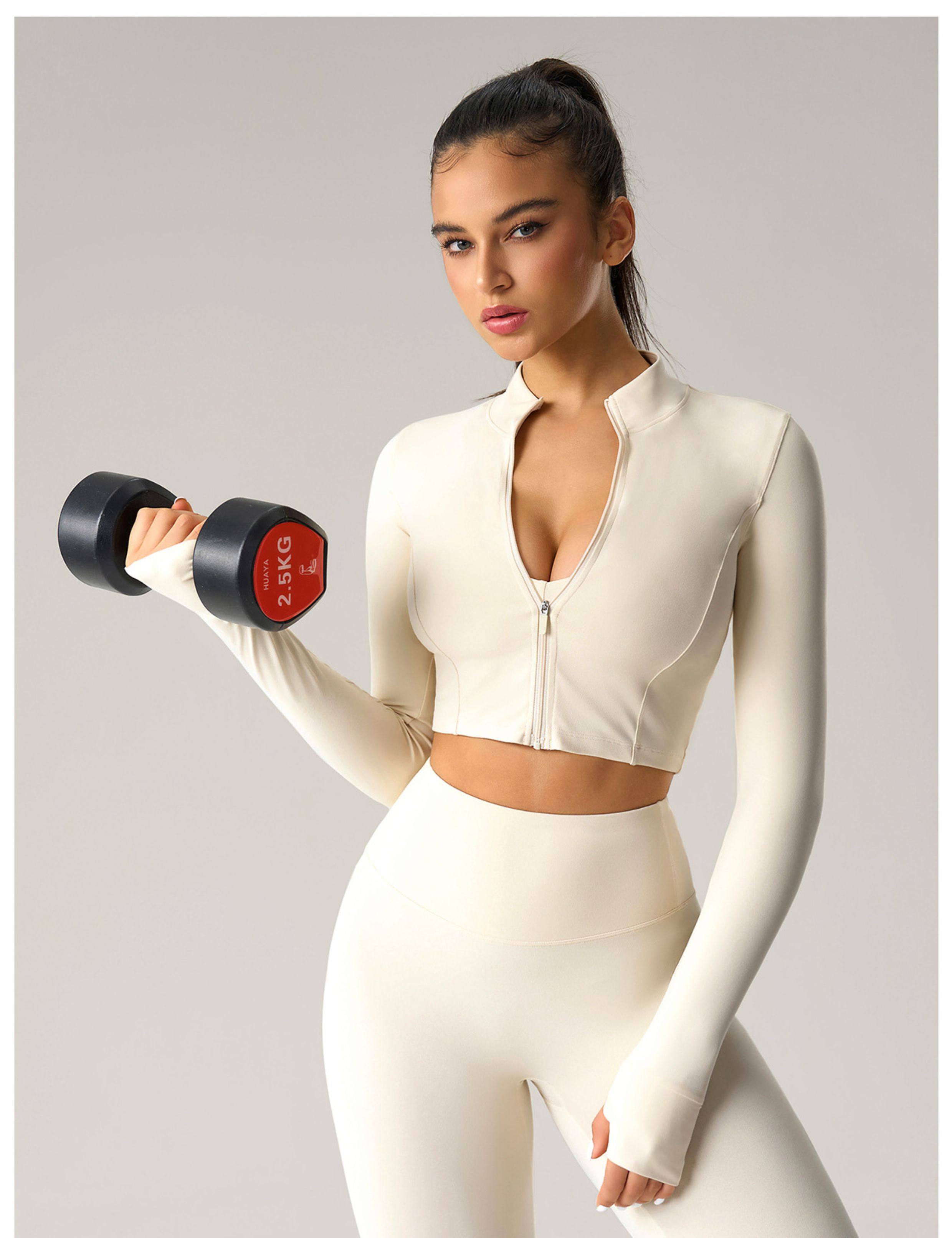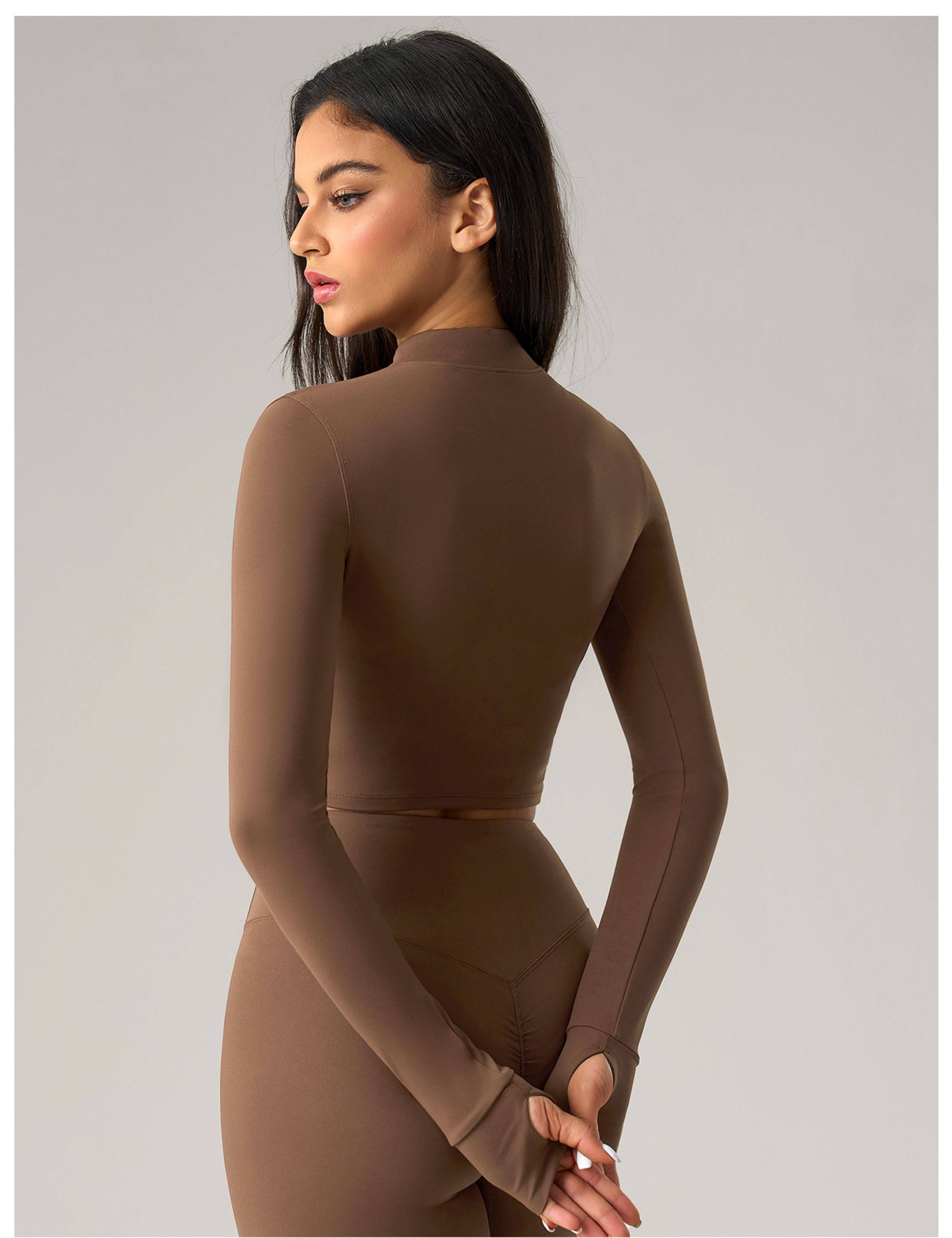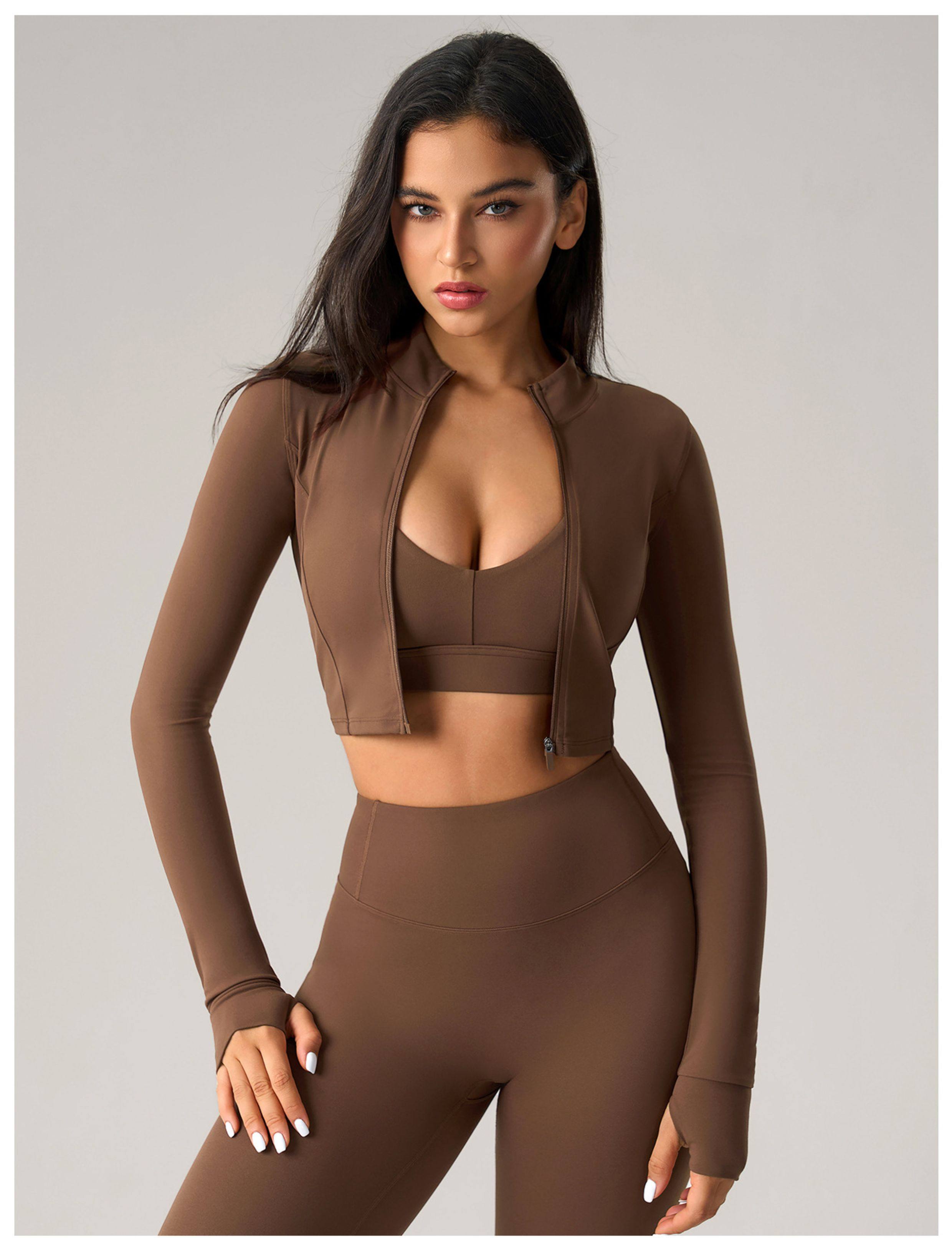 2025 Autumn and Winter European and American Tight-Fitting Short Zipper Sports Jacket for Women Outdoor Running Fitness Yoga Wear Long-Sleeved Top