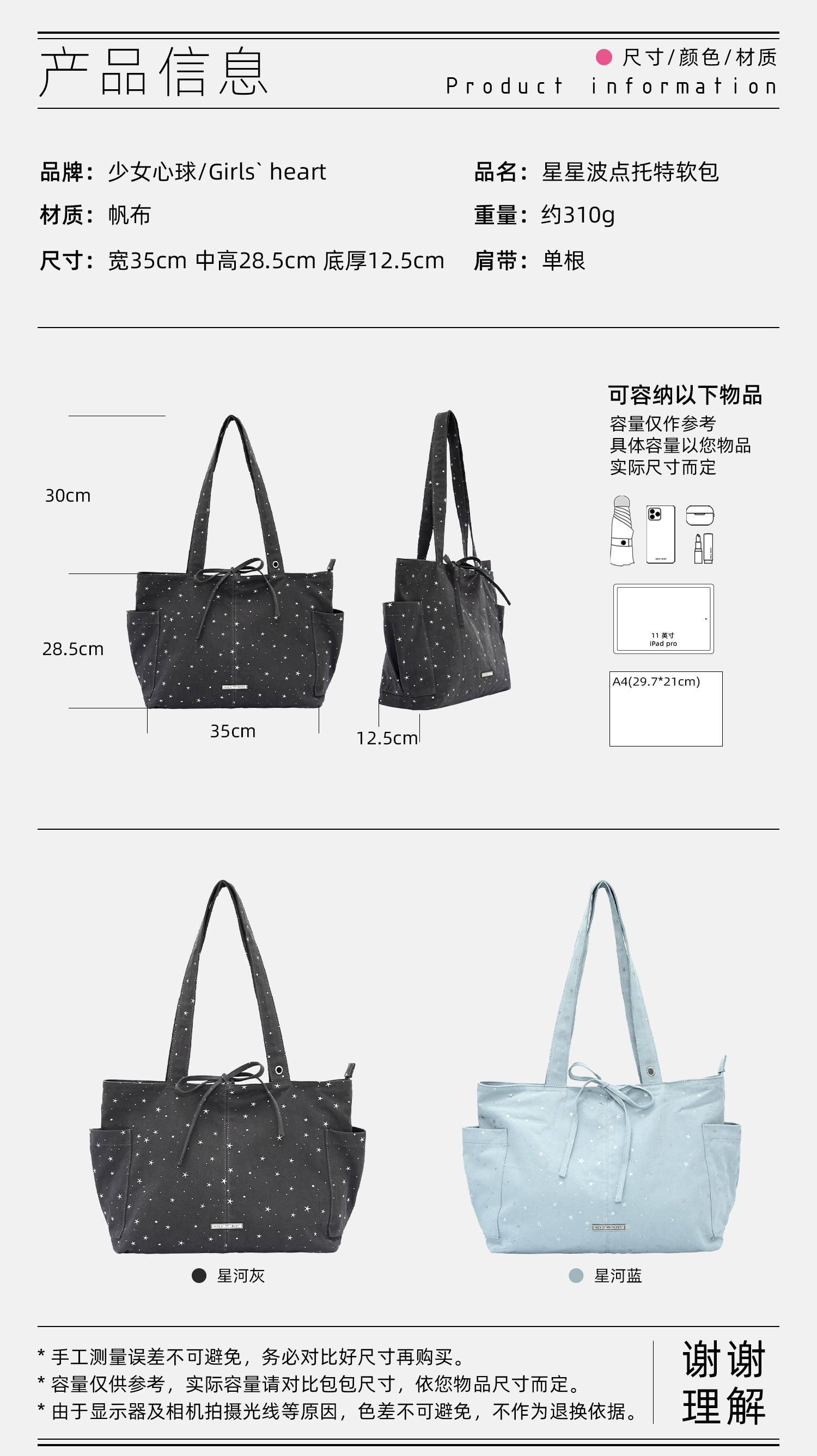 Girly Heart Ball Star Polka Dot Canvas Denim Tote Autumn Light Niche Design Single Shoulder Tote Large Capacity Bag