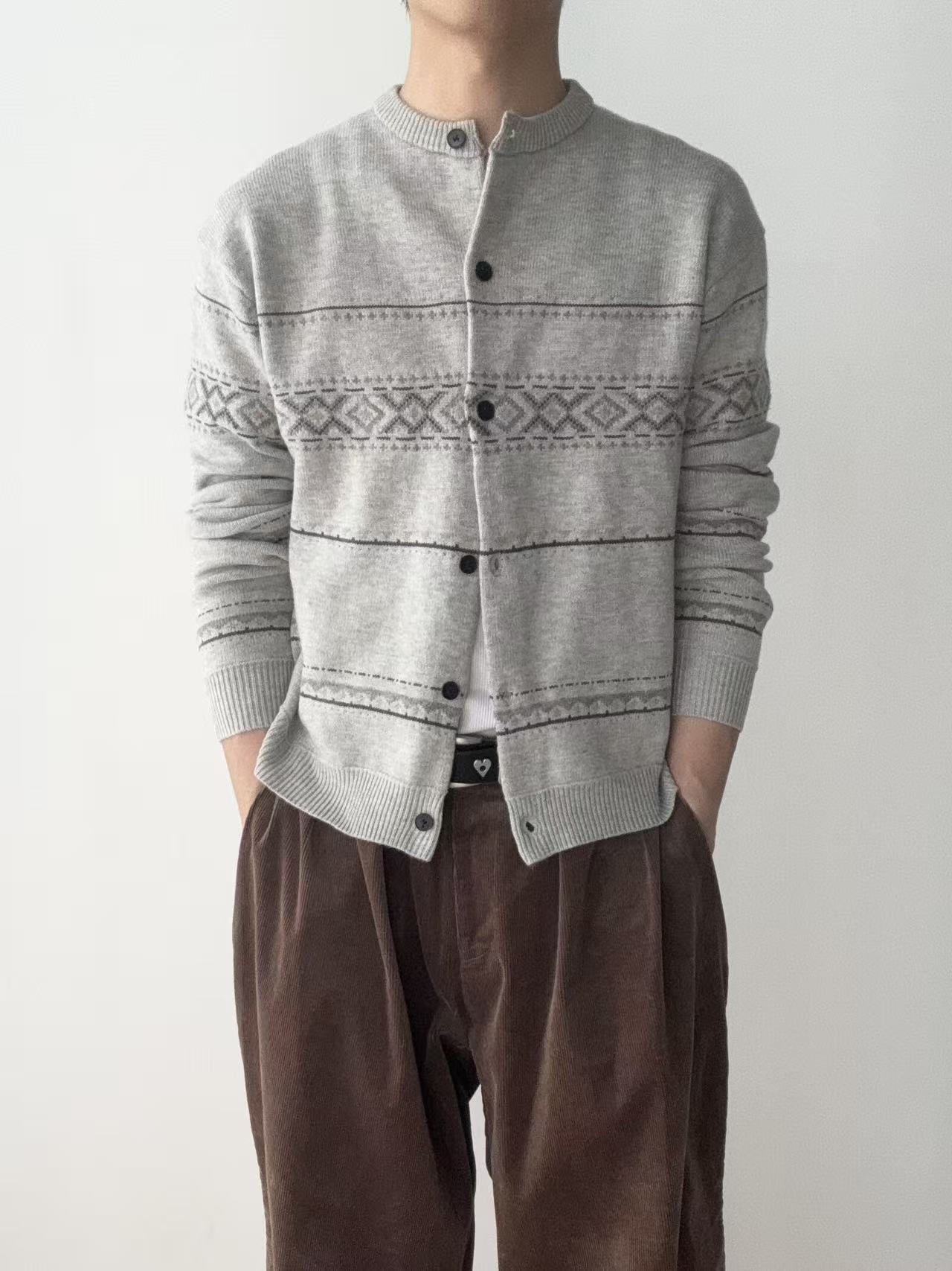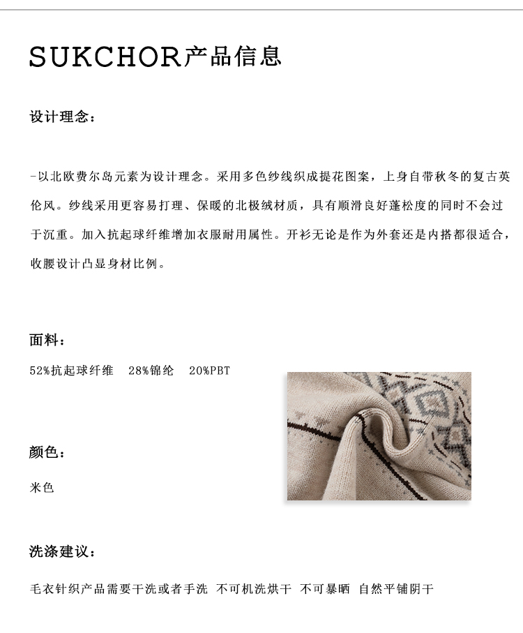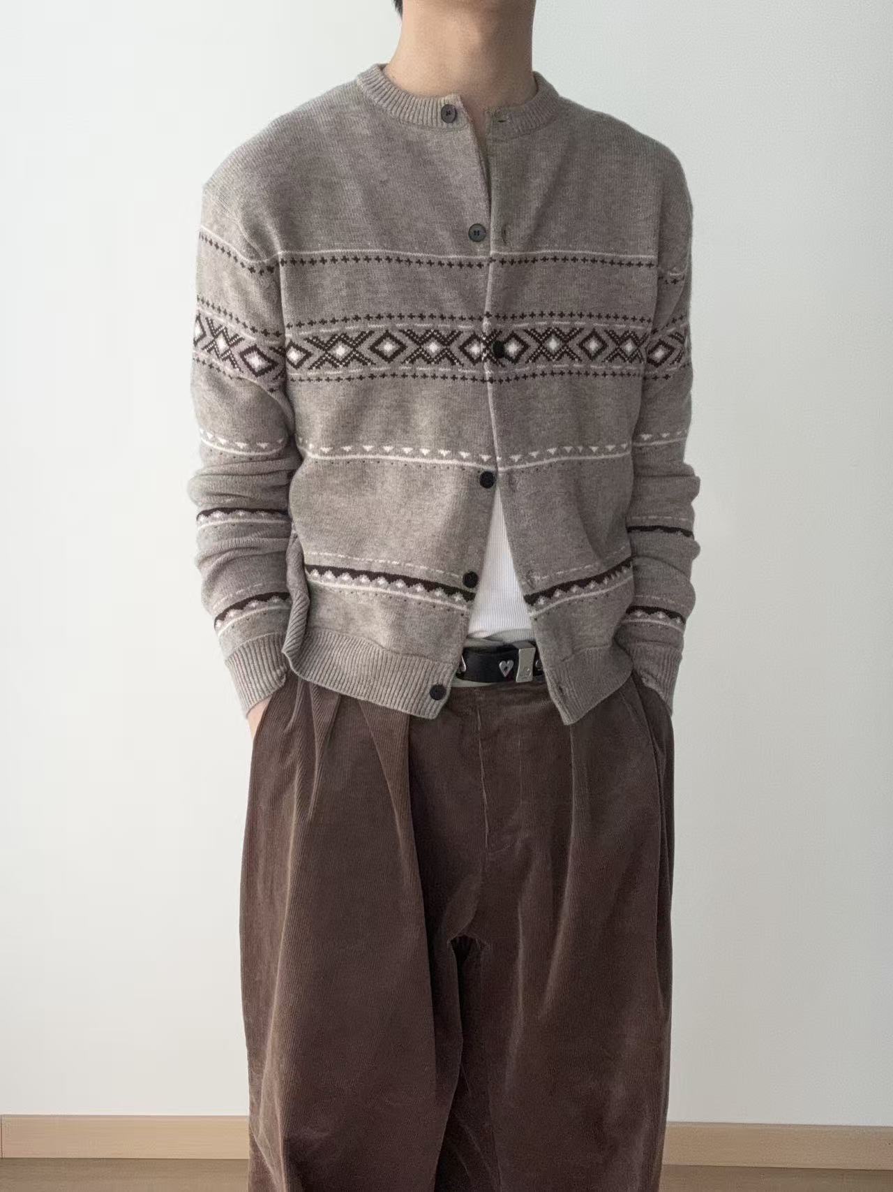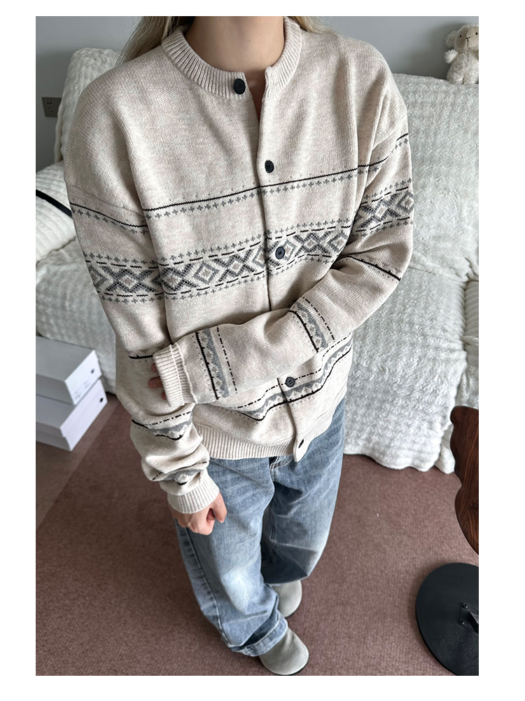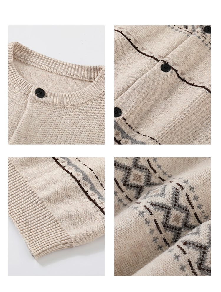 Sukchor Fair Isle High Intelligence Academy Atmosphere Jacquard Texture Imitation Cashmere Knitted Cardigan Sweater