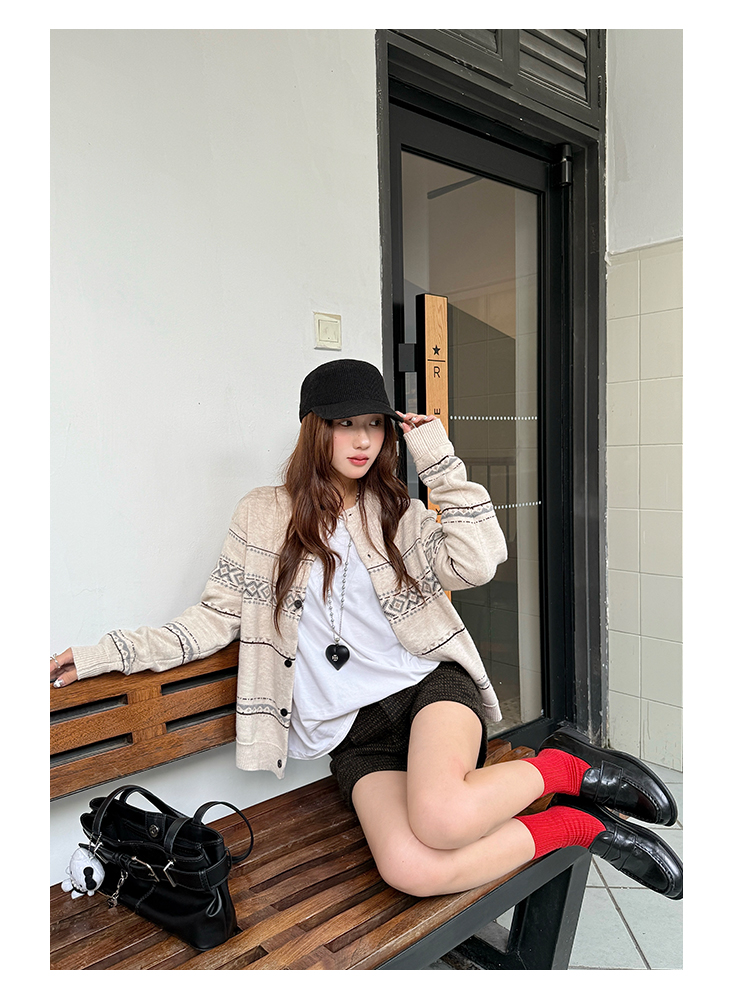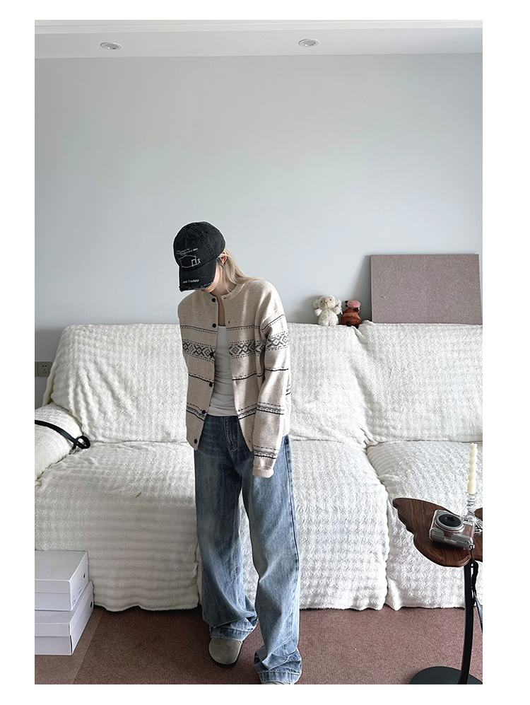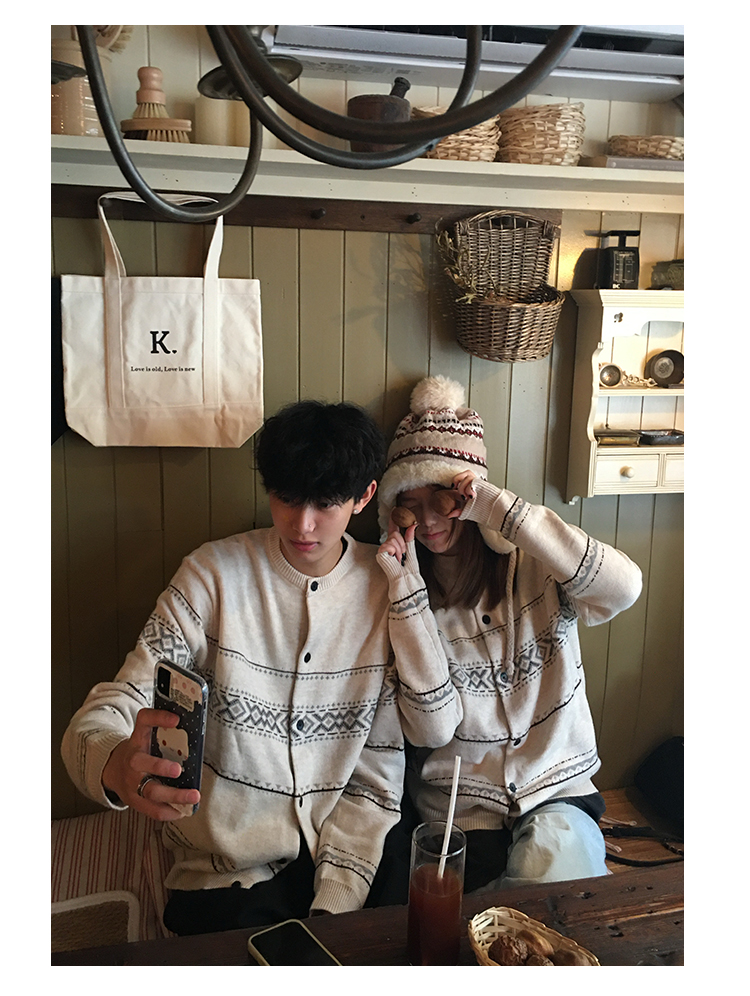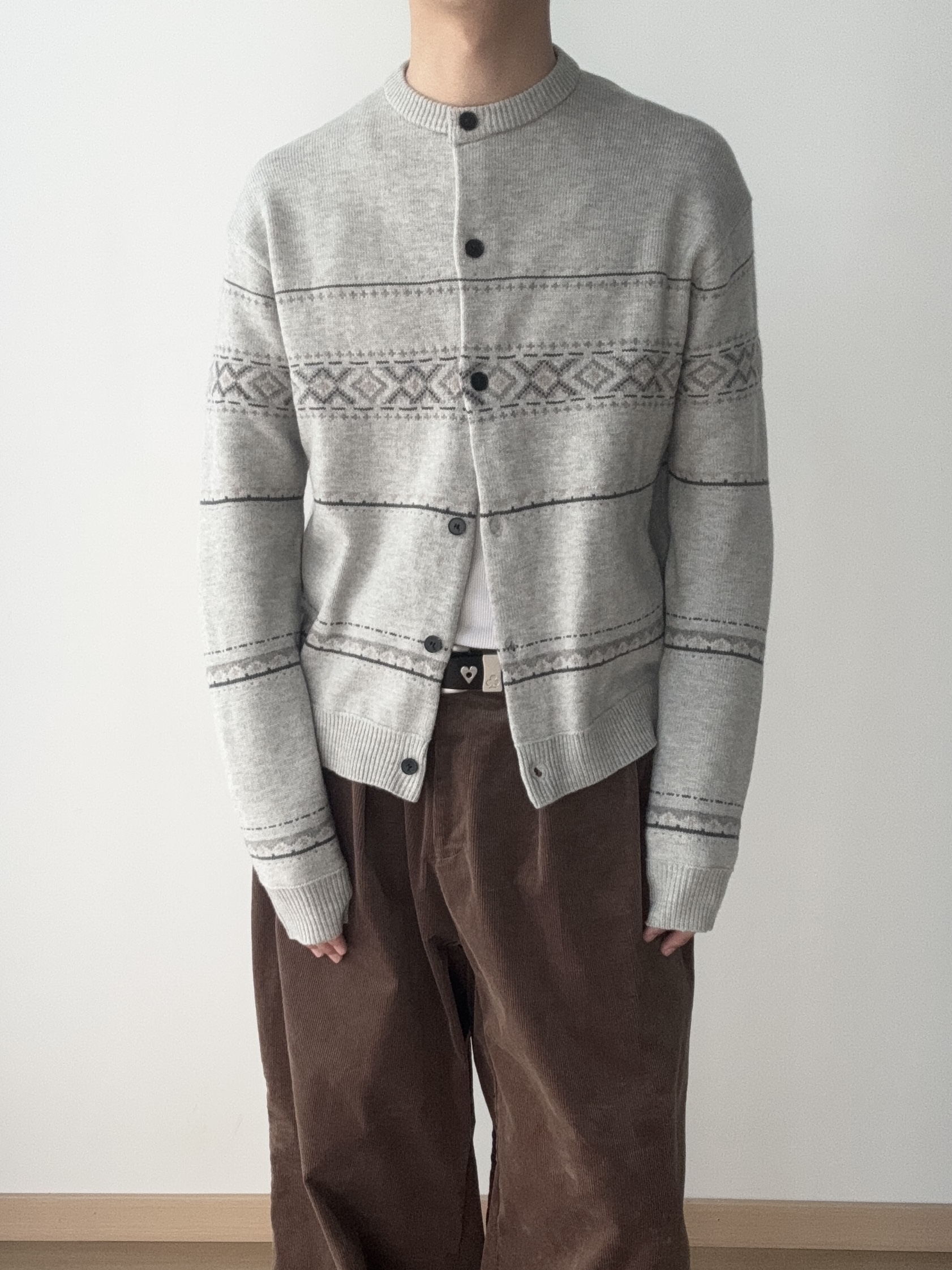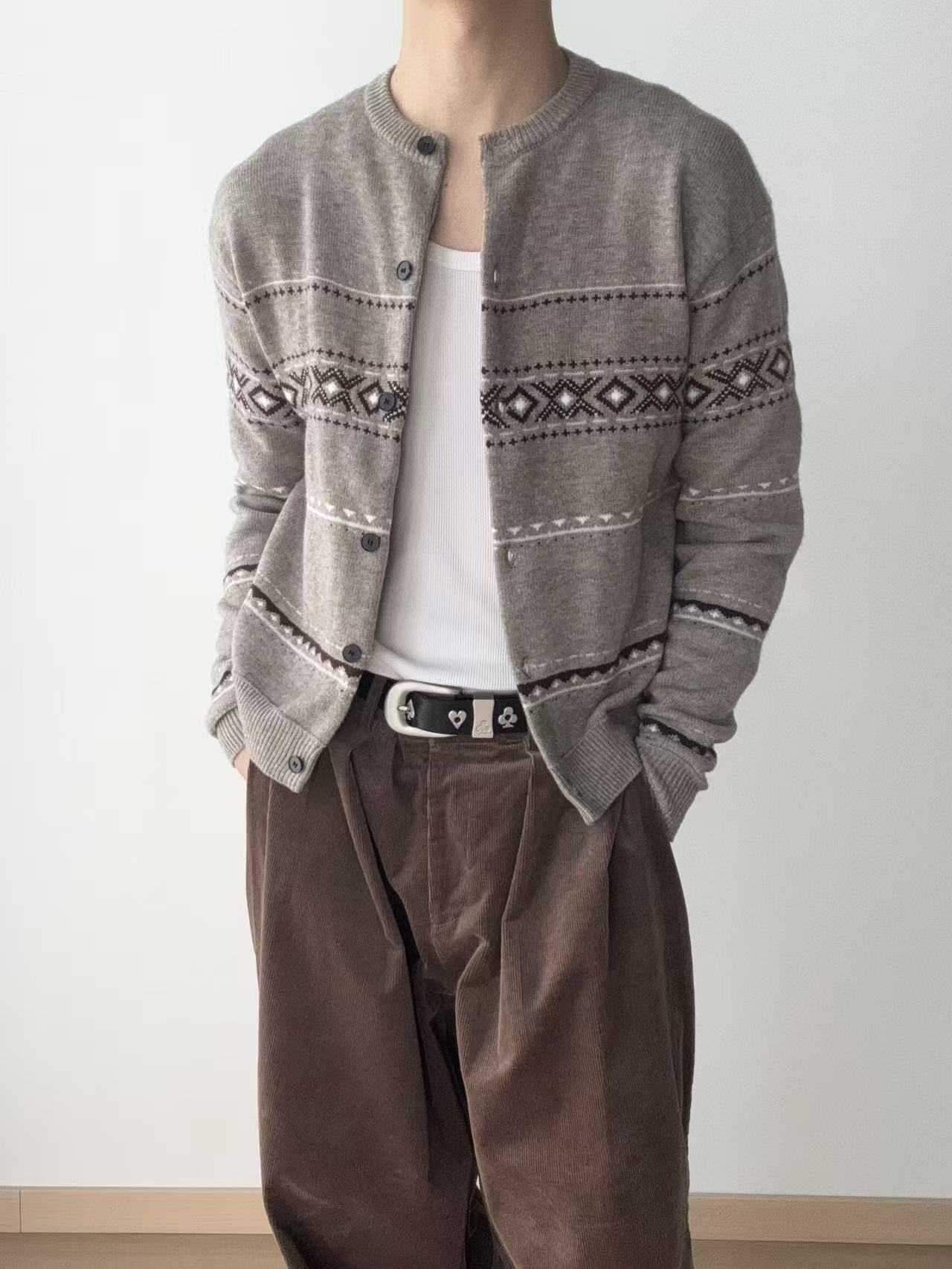 Sukchor Fair Isle High Intelligence Academy Atmosphere Jacquard Texture Imitation Cashmere Knitted Cardigan Sweater