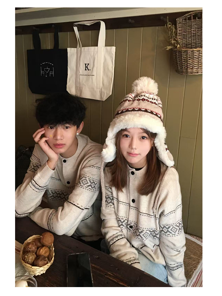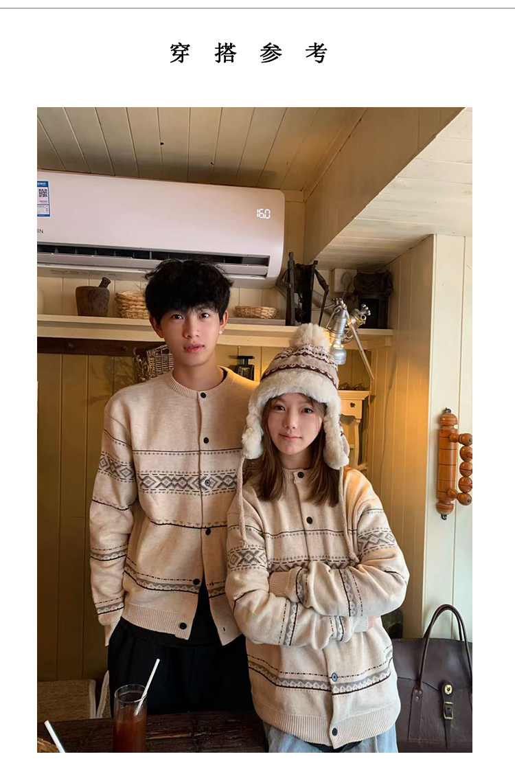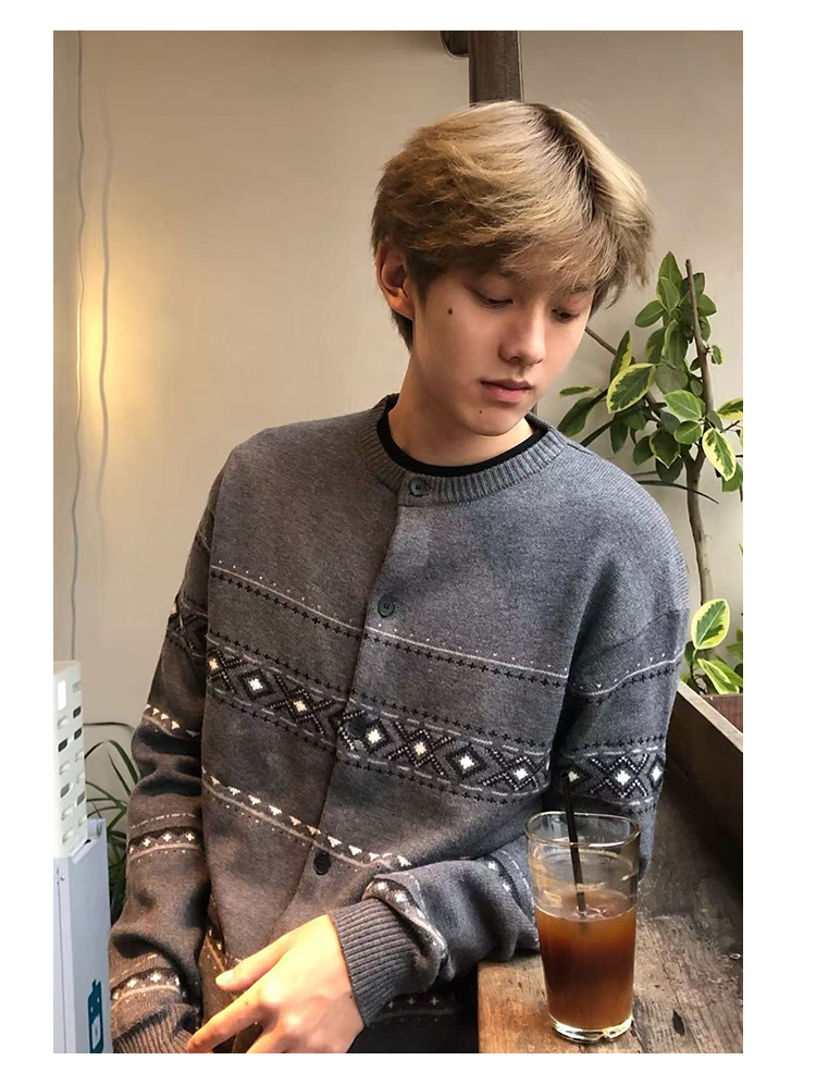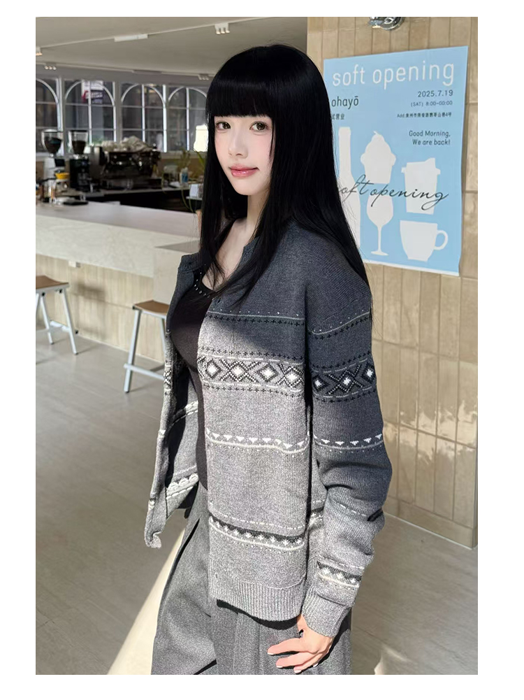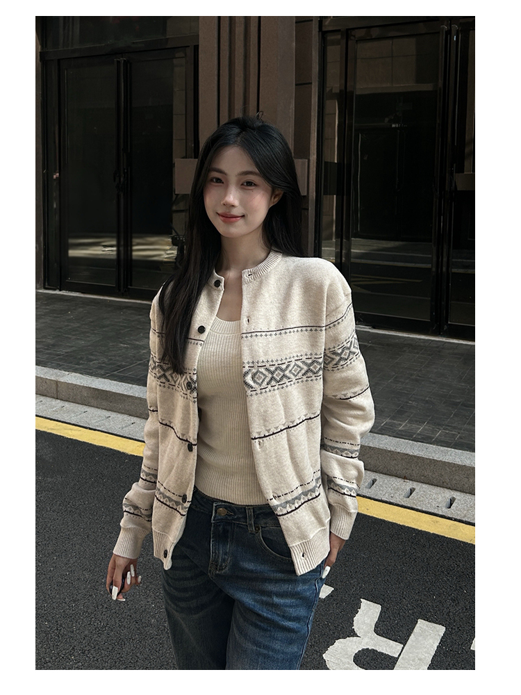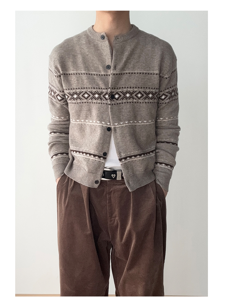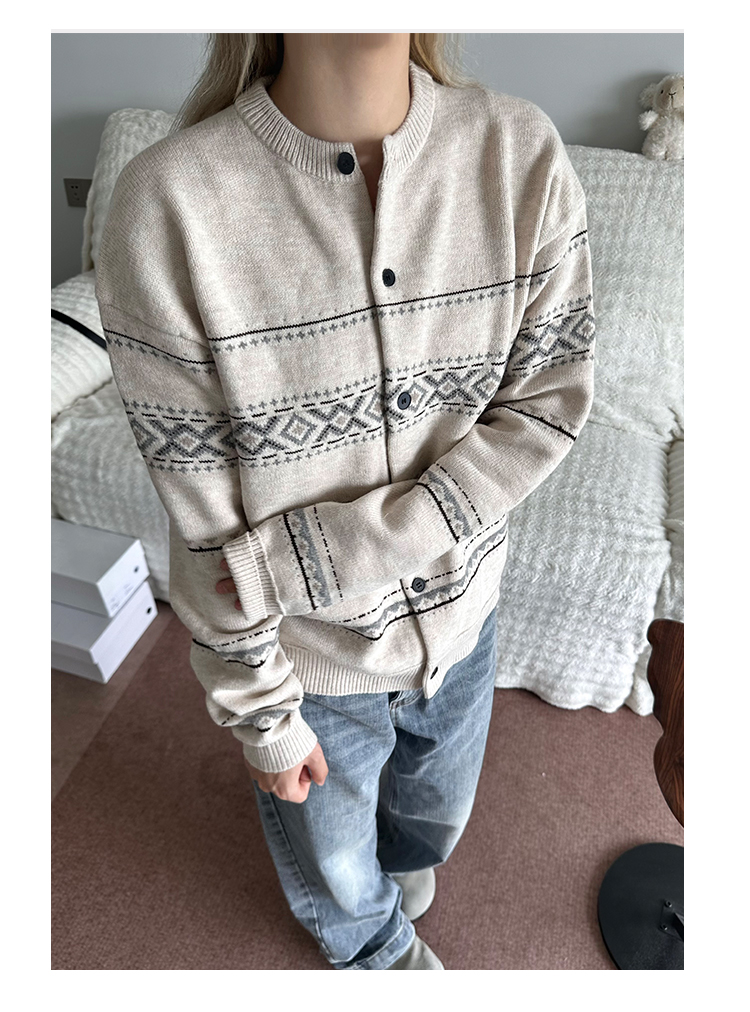 【Nico's Style】Sukchor Fair Isle High-Fashion Jacquard Imitation Cashmere Knit Cardigan Sweater