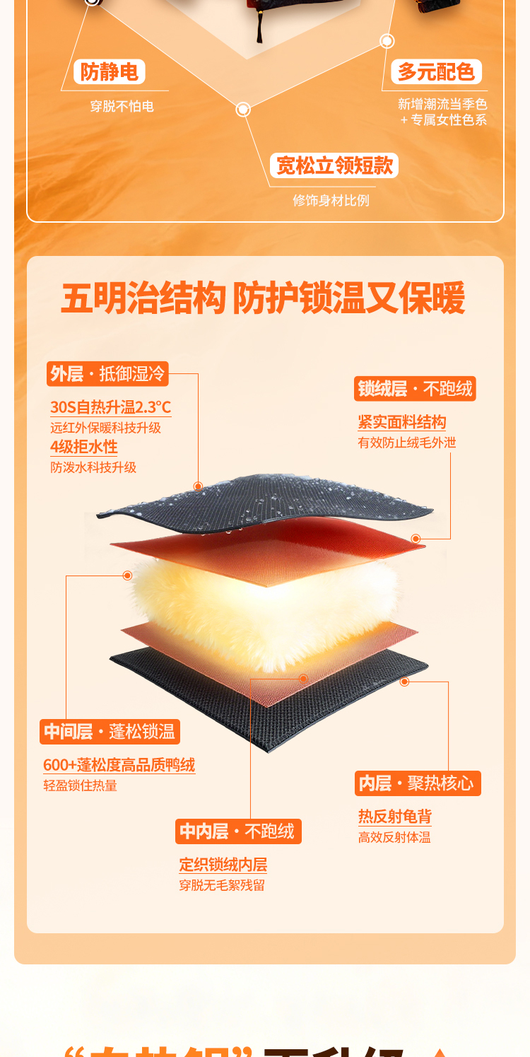 [Same Style as Sun Yingsha] Li-Ning Hot Pot down Jacket | Women's Winter Short Style Couple's Warm Outdoor Jacket for Men