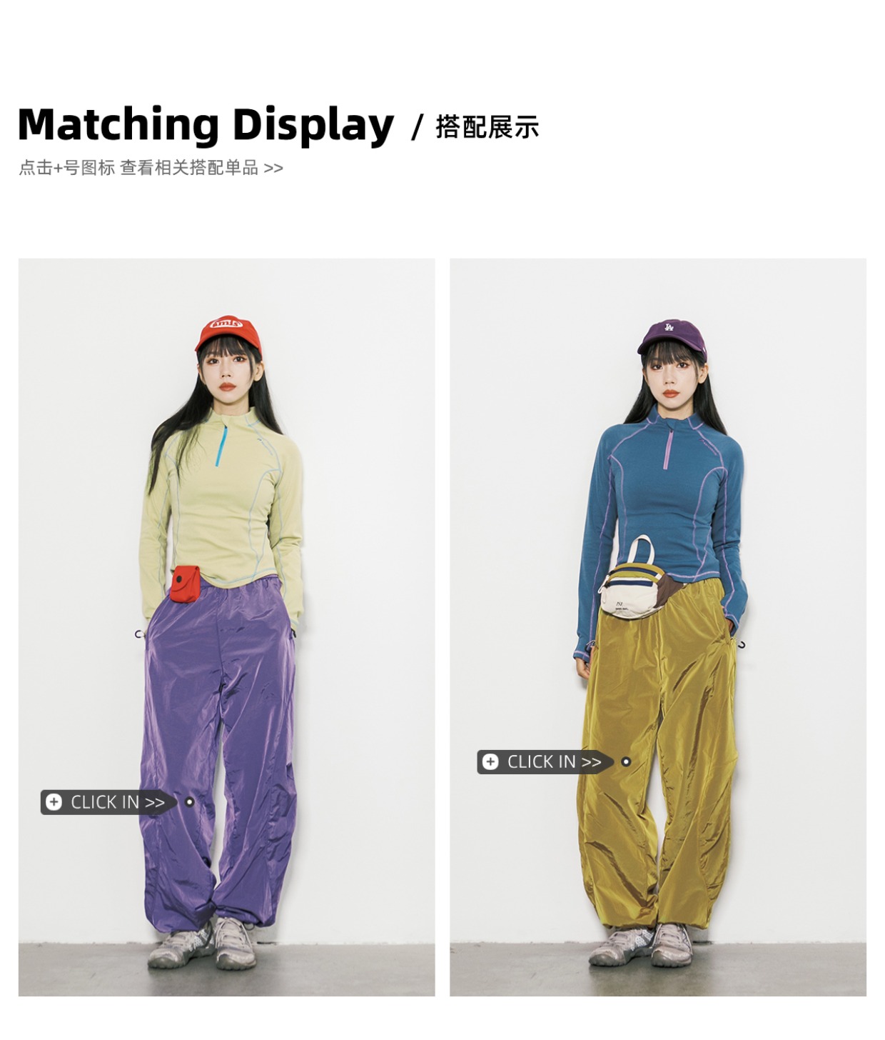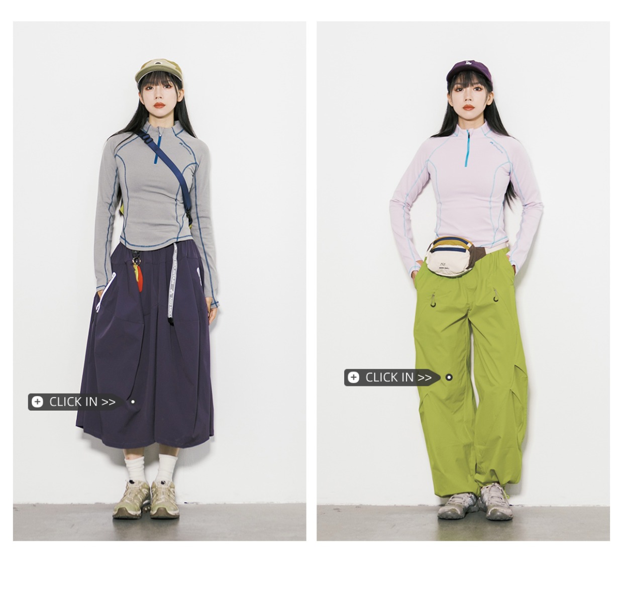 Rcdb Mountain-Style Outdoor Color-Block Hasselblad Line Half-Zip Stand Collar Long-Sleeve T-Shirt for Women, Slim Fit Inner Layer Base Shirt Top