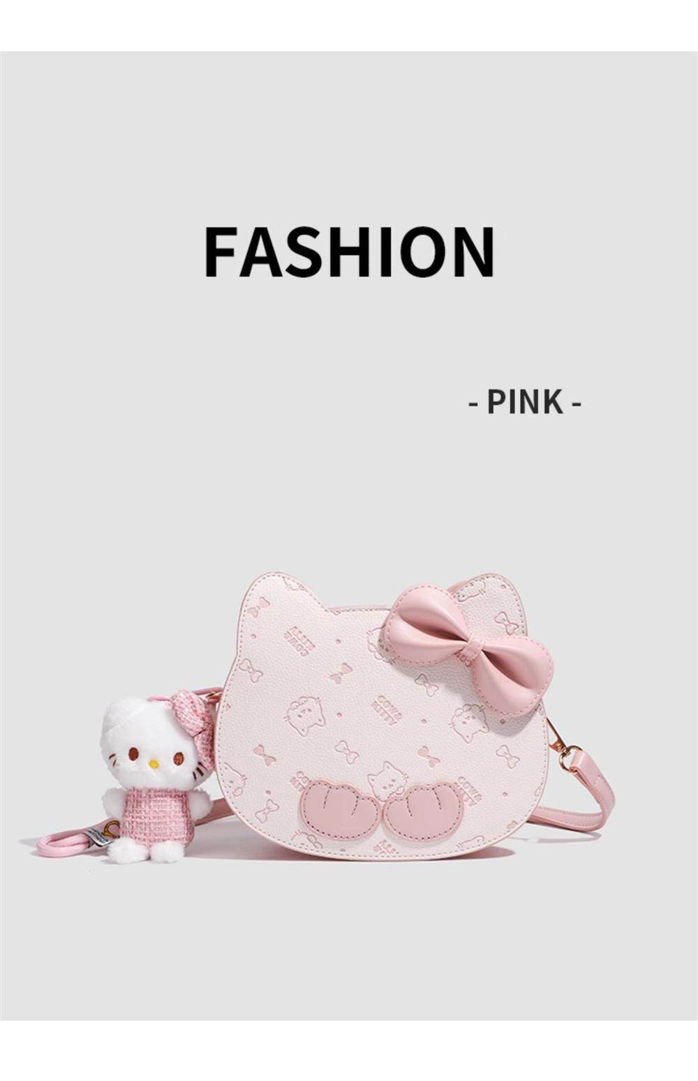 Ur Bag for Women, Gift, Pink Dopamine Kitty Cat Saddle Bag, Sandwich Biscuit Bag, Bowknot Shoulder Bag