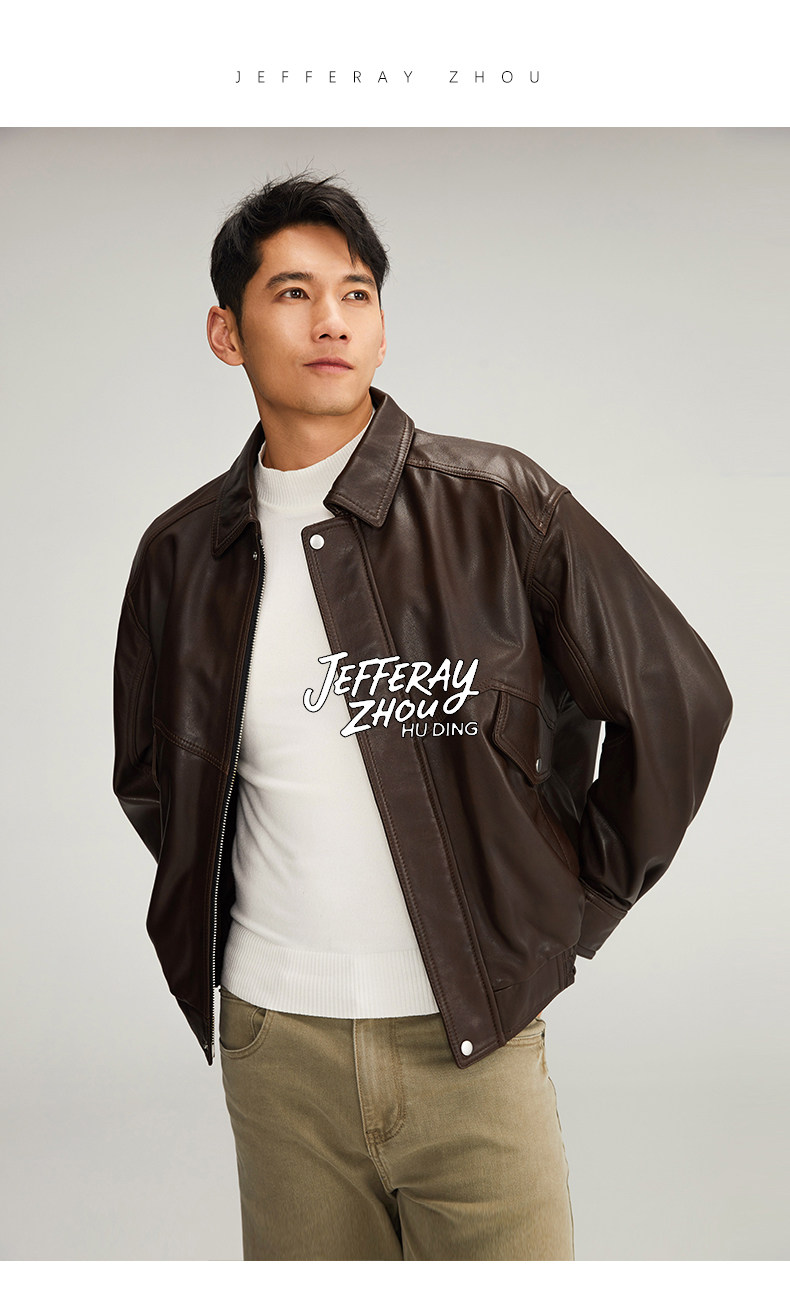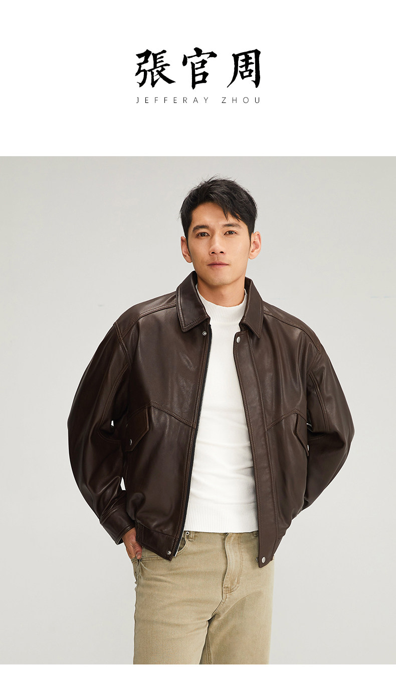 Zhang Guanzhou Men's Leather Jacket 2025 New Vintage Hong Kong Style Lambskin Jacket Men's Versatile Turn-Down Collar Genuine Leather Coat