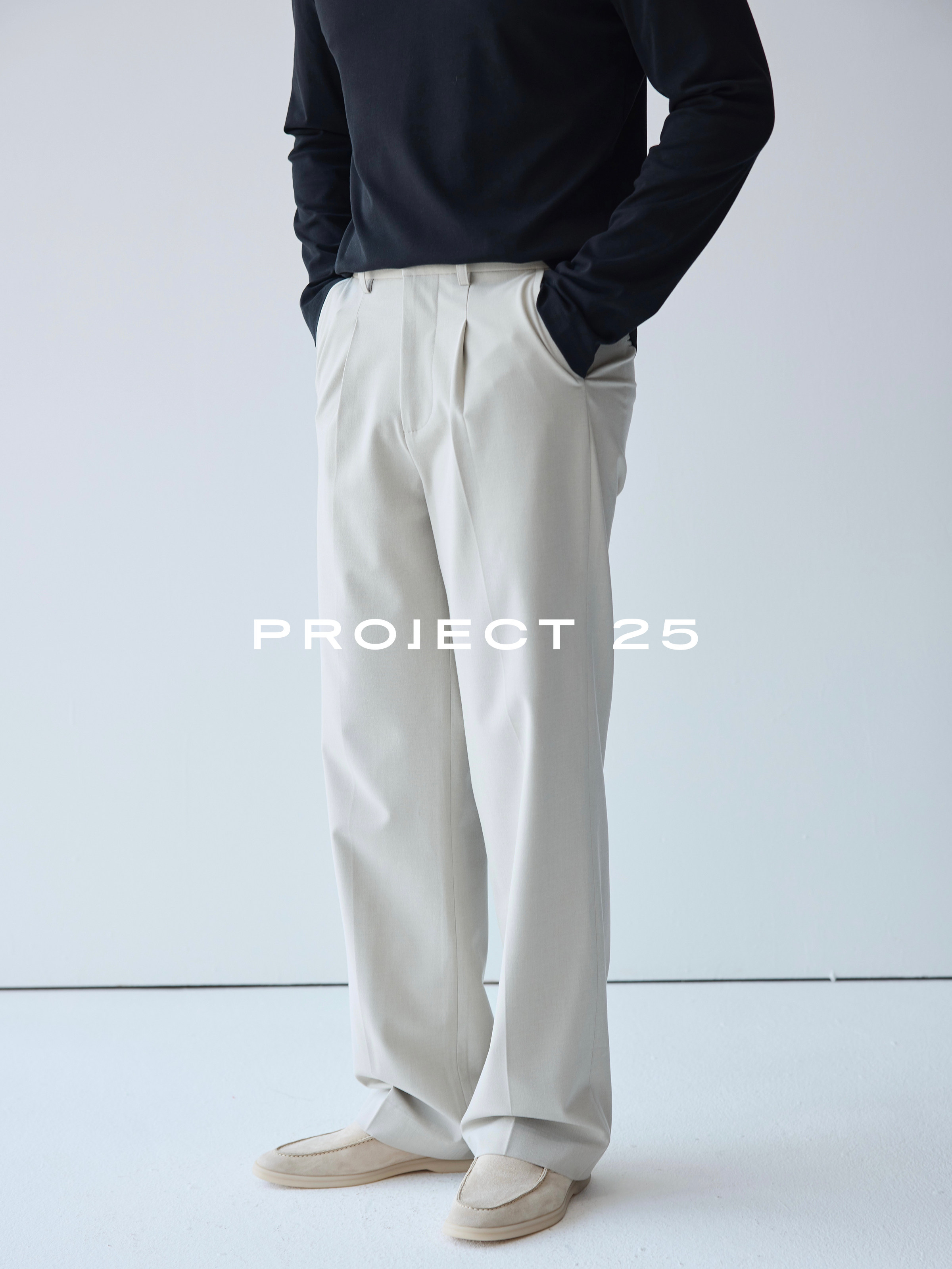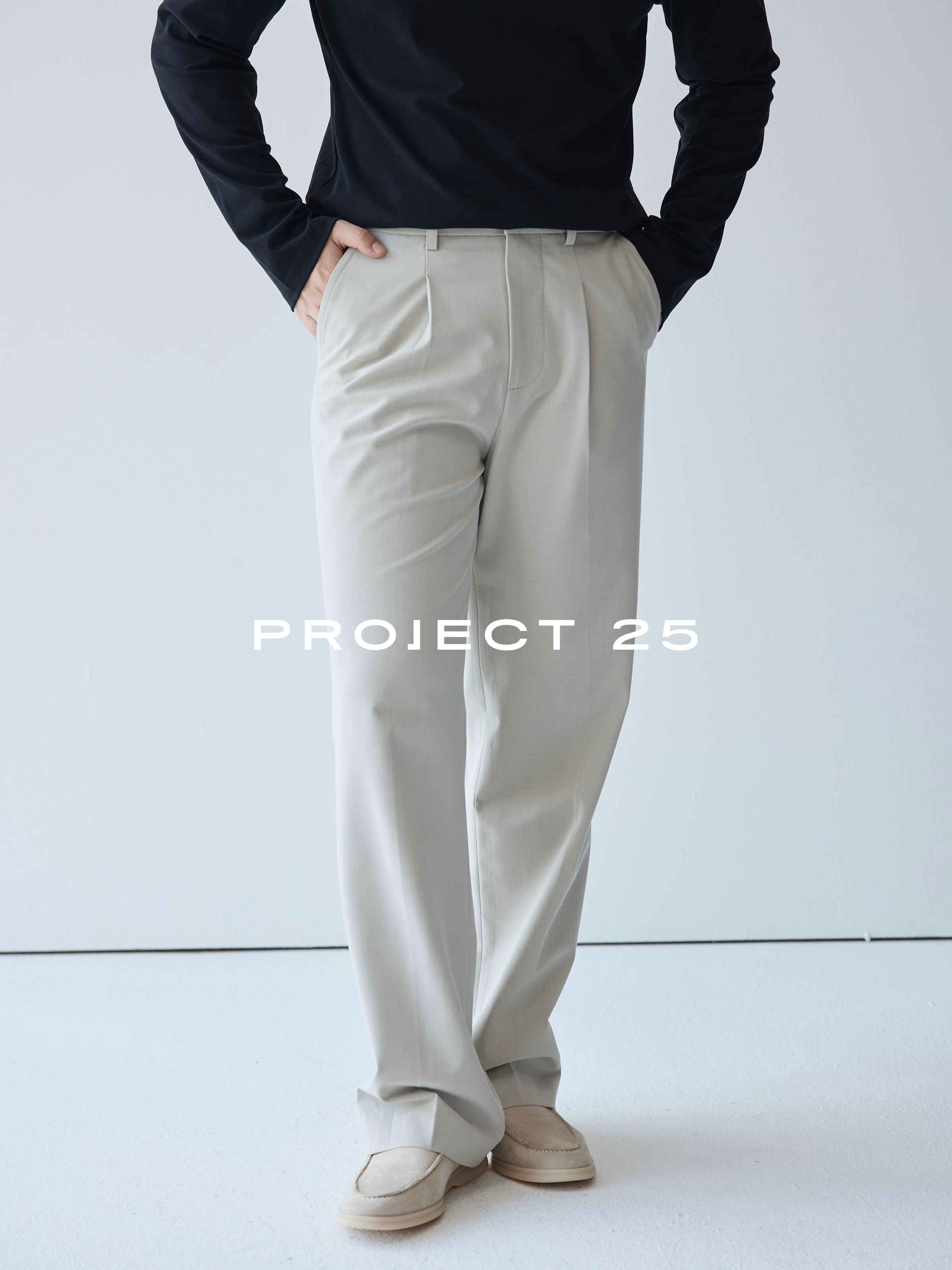 Project 25 Tr Blended Single-Pleat Three-Dimensional Cut Casual Straight-Leg Dress Pants Slimming Basic Commuter Trousers for Men