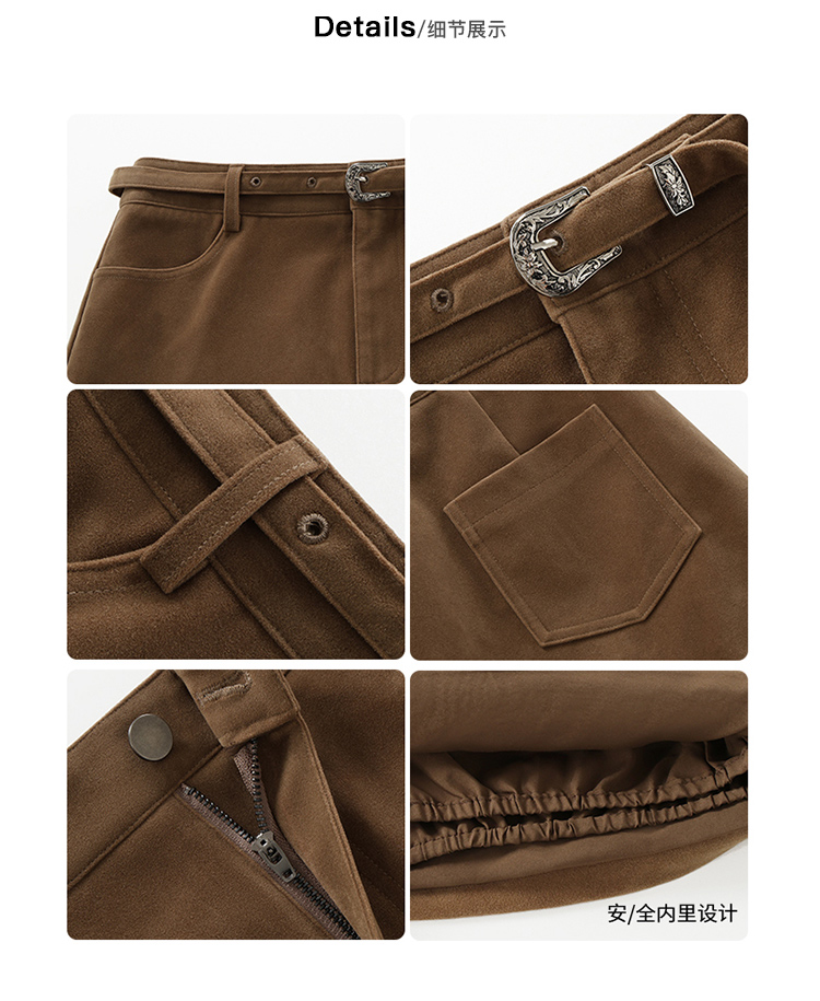 Pusumede with Belt~ Retro Khaki Suede High-Waisted A-Line Skirt for Women, Straight Hip-Hugging Short Skirt