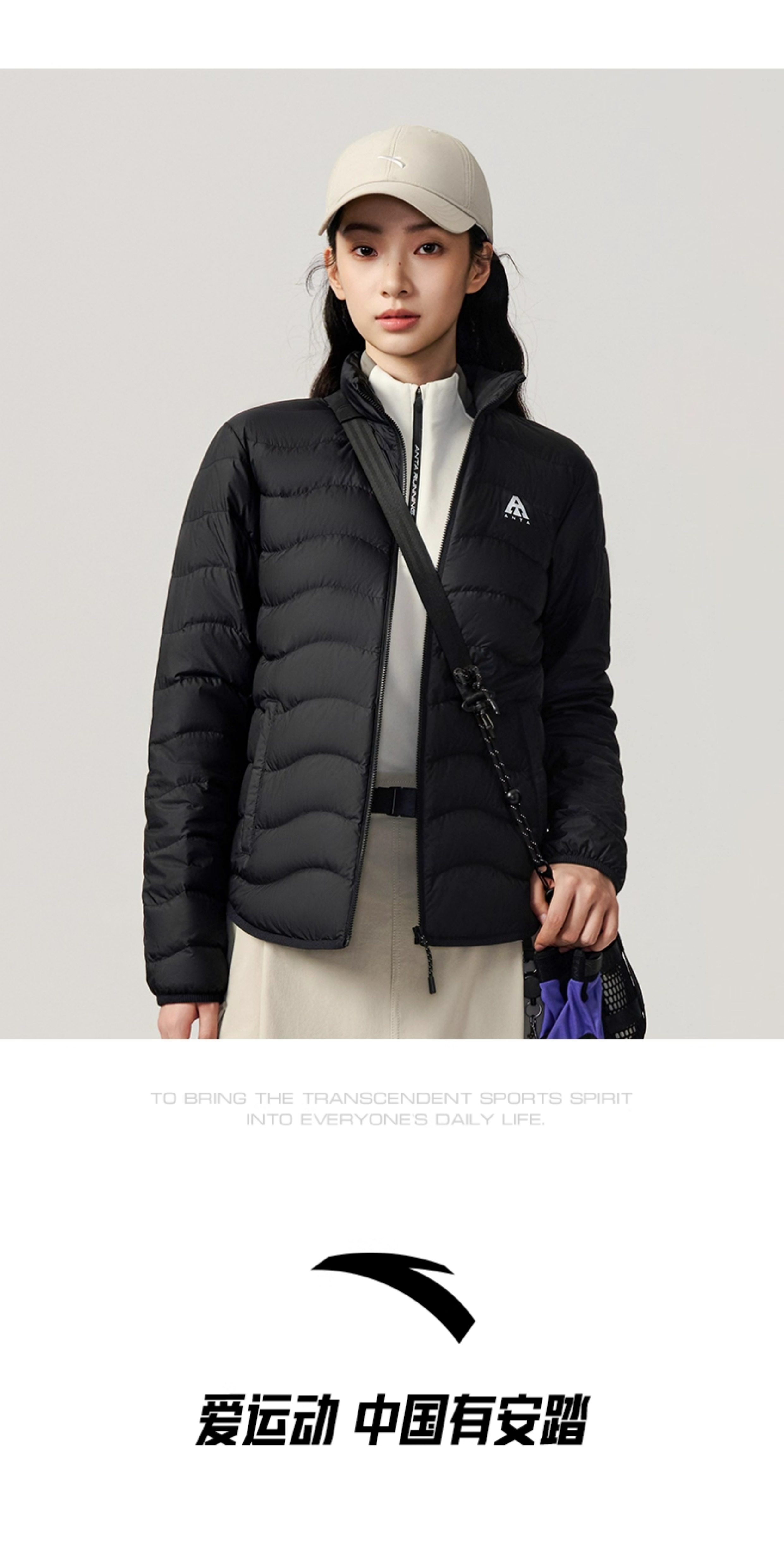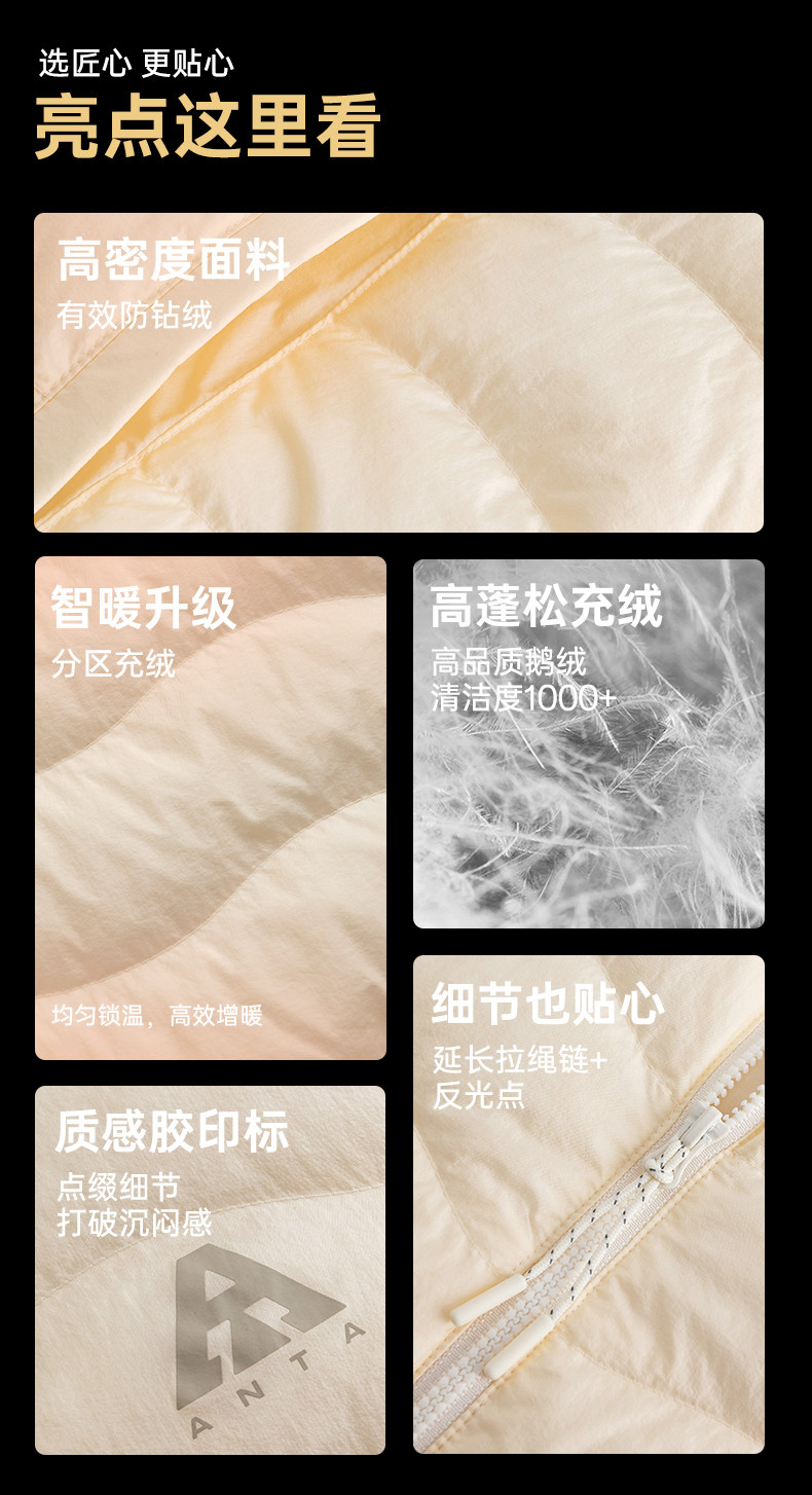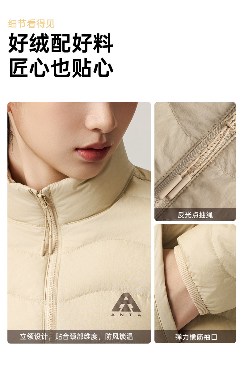 Anta Quilted down Jacket with Goose Down, Lightweight and Thin, Women's Winter Outdoor Slim-Fit Warm Inner Layer Casual Top