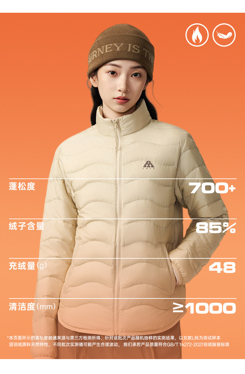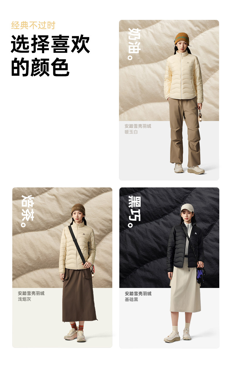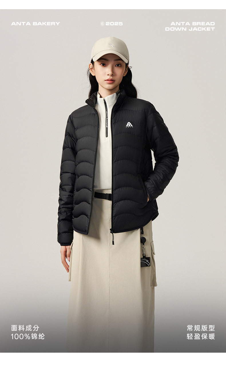 Anta Quilted down Jacket with Goose Down, Lightweight and Thin, Women's Winter Outdoor Slim-Fit Warm Inner Layer Casual Top