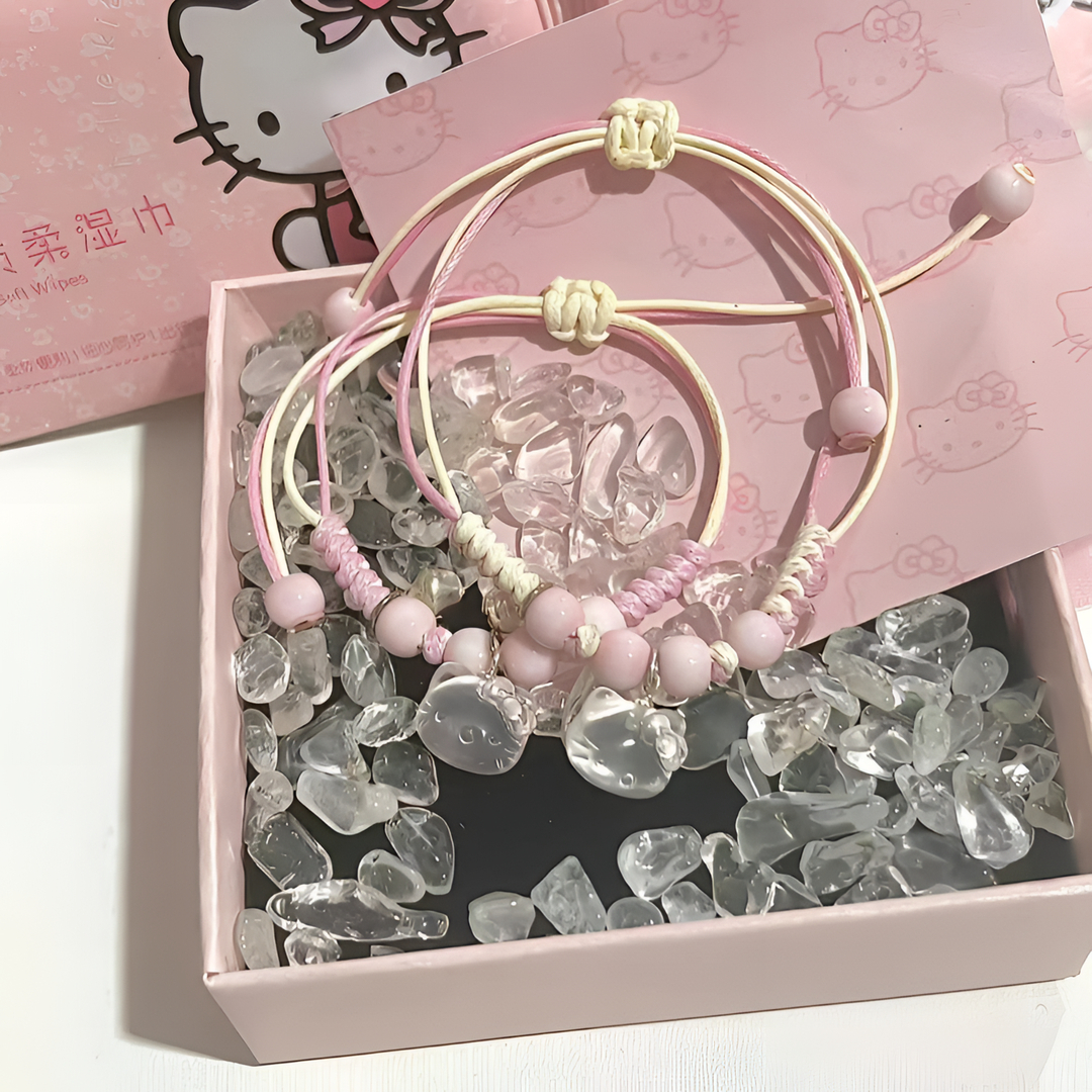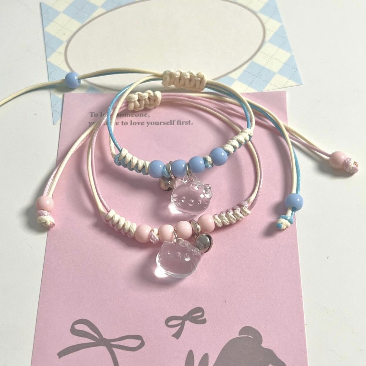Hellokitty Pink Braided Bracelet Simple Couple Best Friend Cute Bracelet ins Sweet New Bracelet