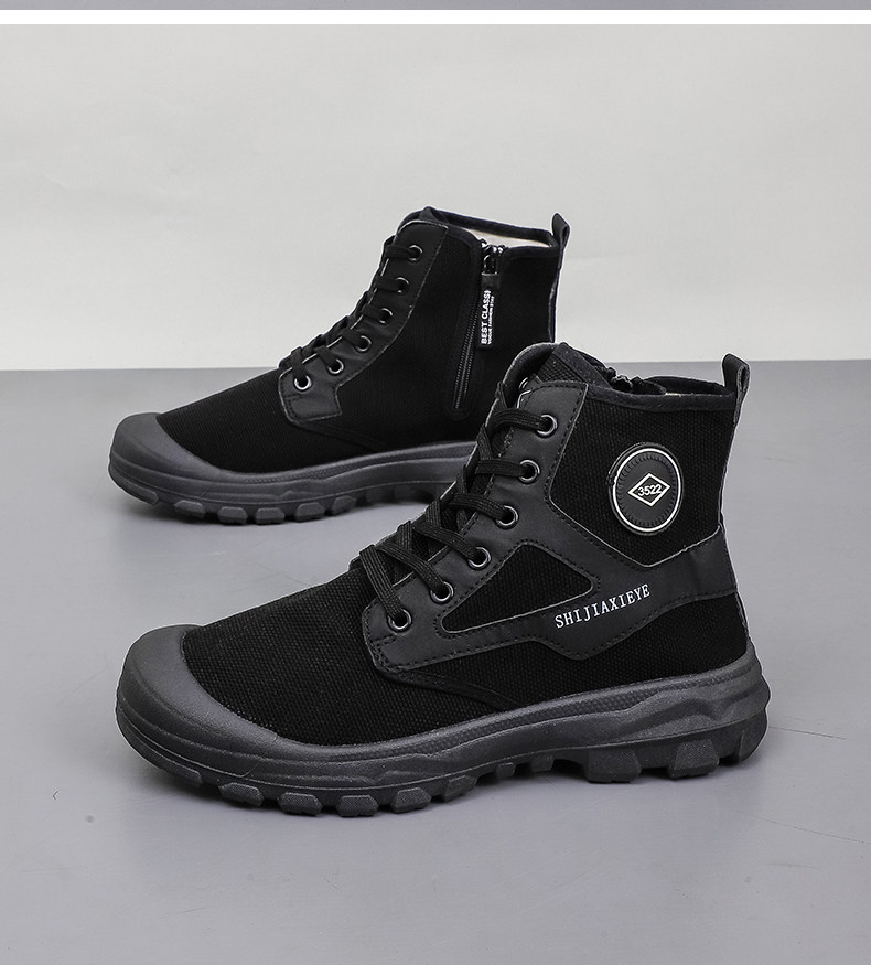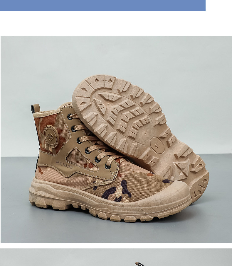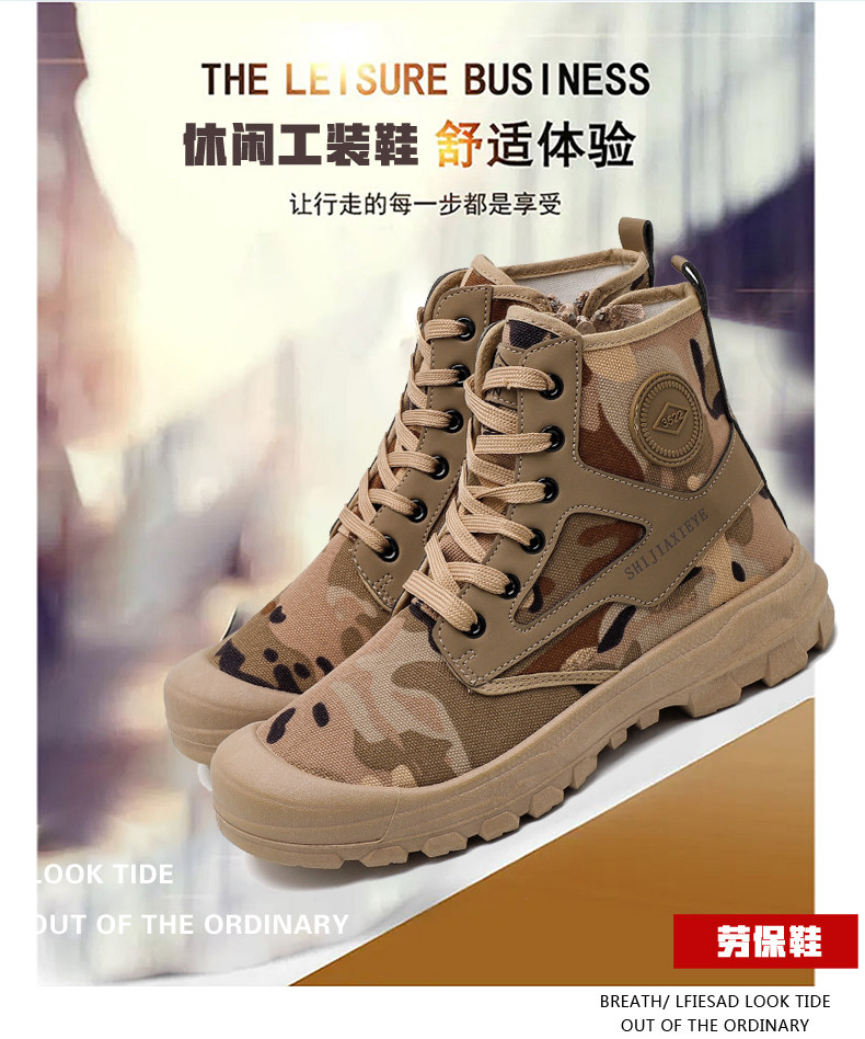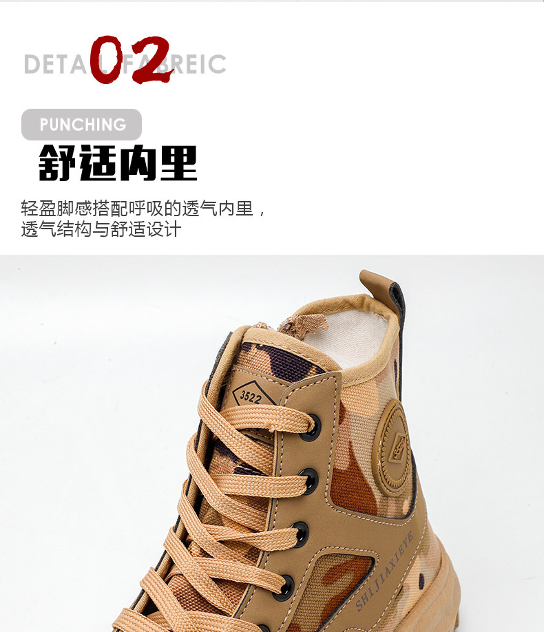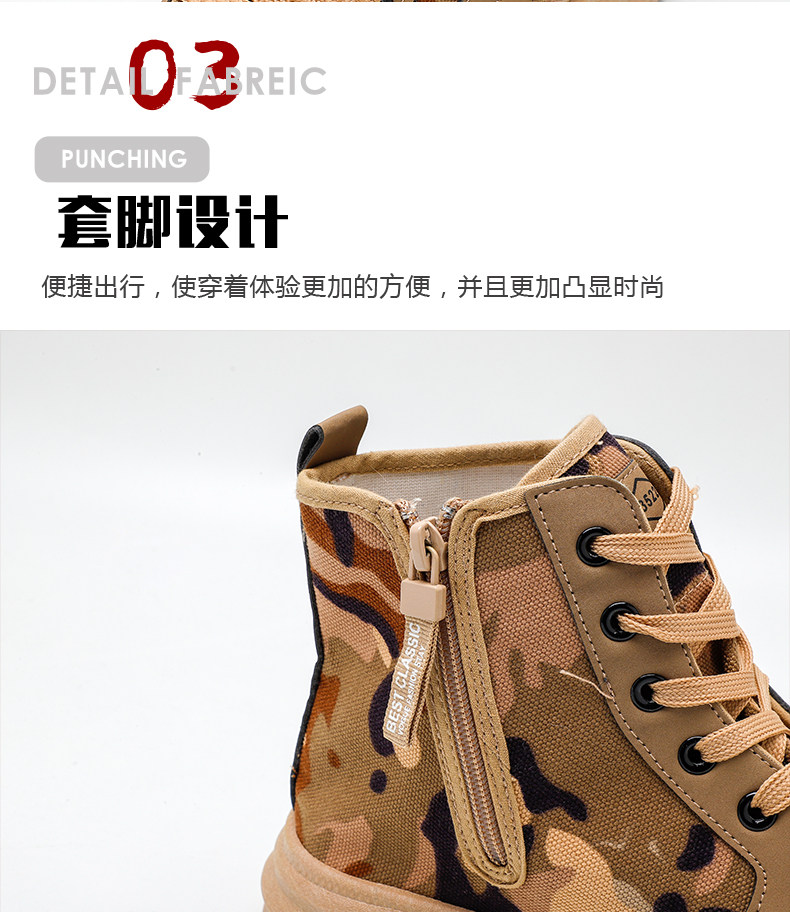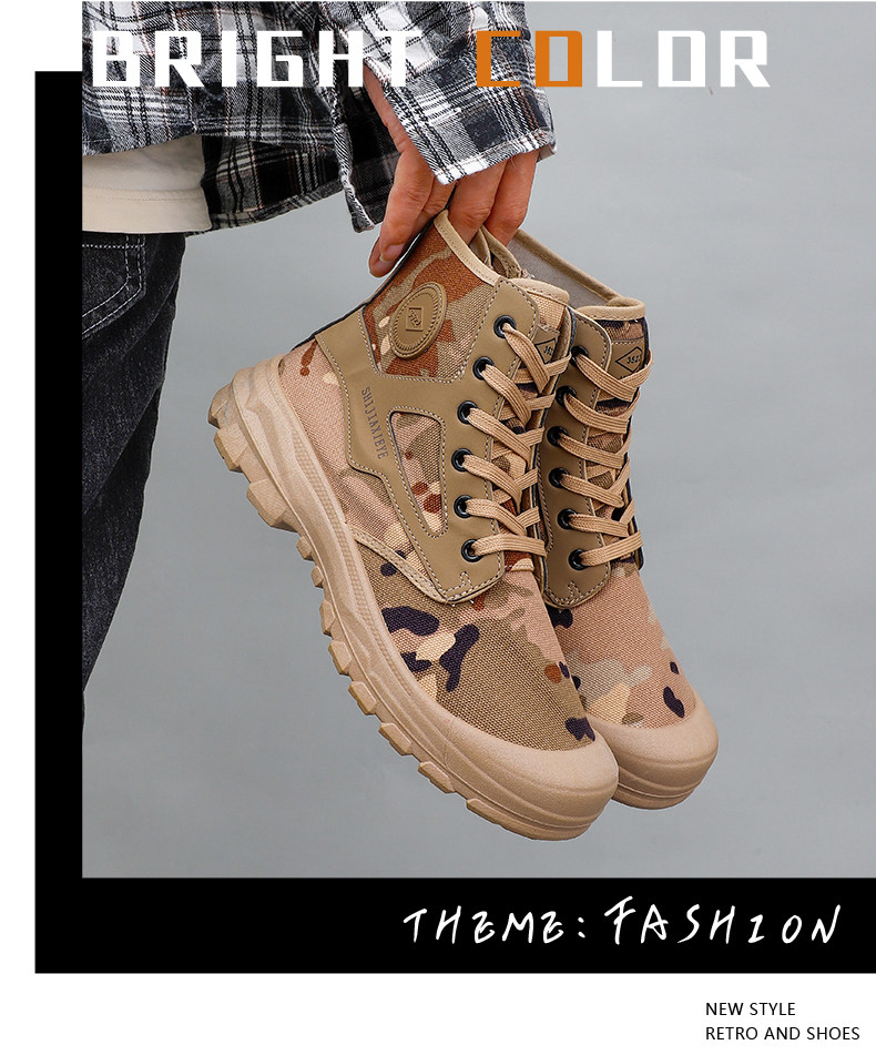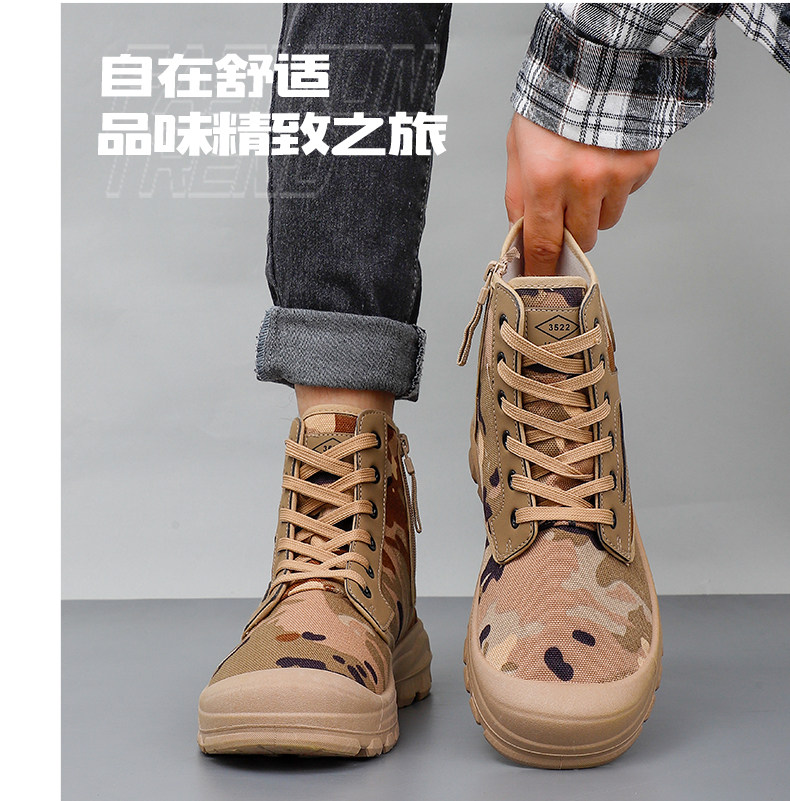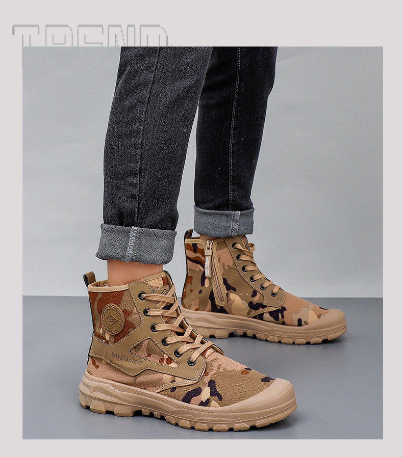 Winter High-Top Camouflage Shoes, Outdoor Side-Zip Martin Boots, Non-Slip, Hiking, Warm, Versatile, Casual, Breathable Work Shoes