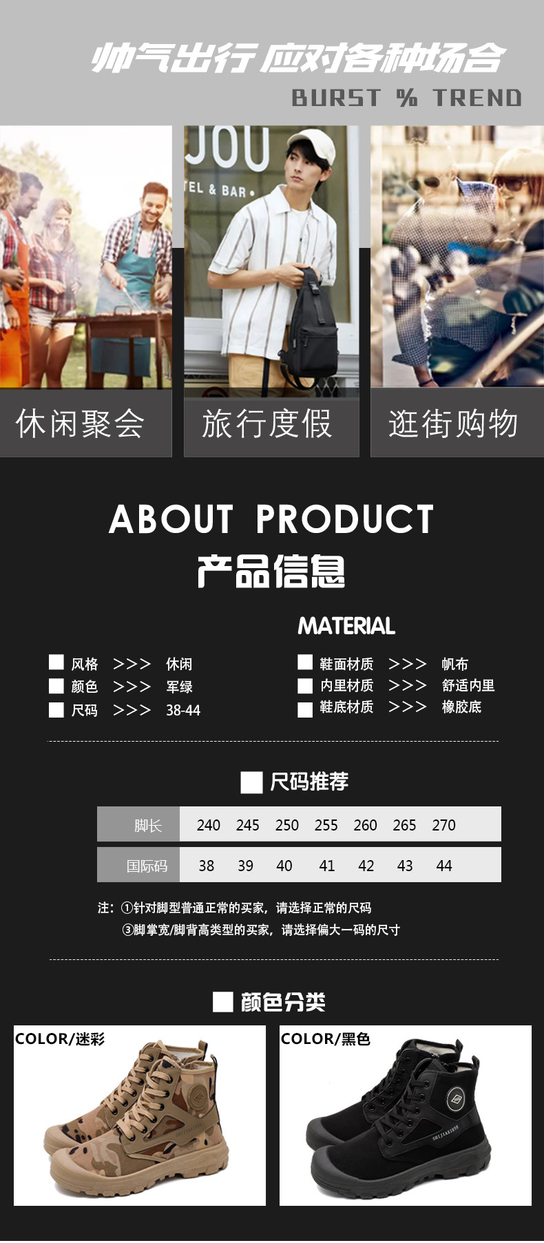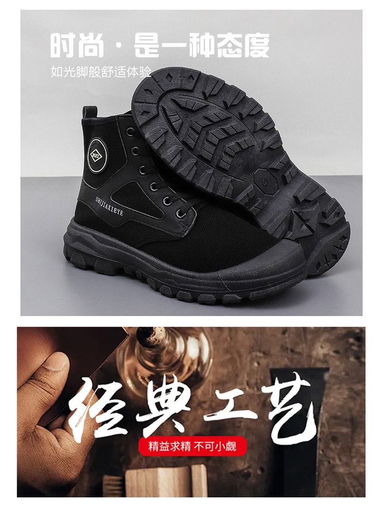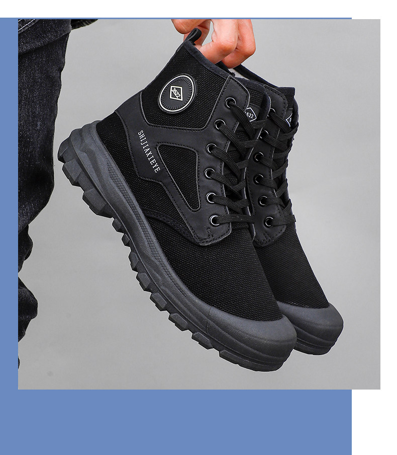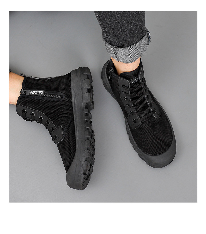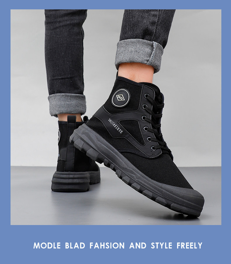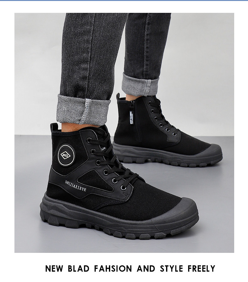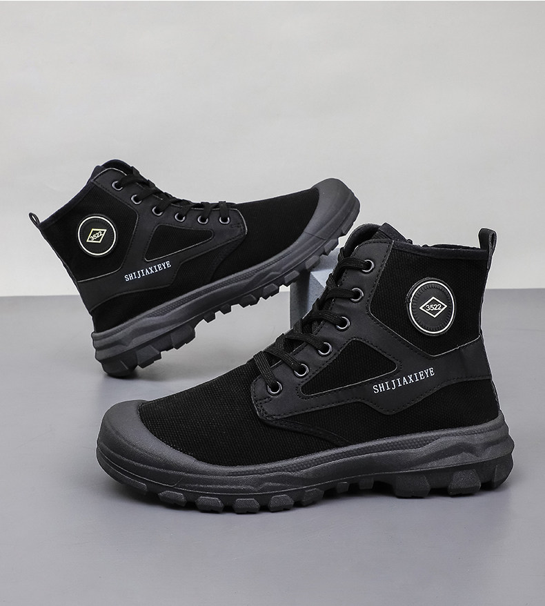 Winter High-Top Camouflage Shoes, Outdoor Side-Zip Martin Boots, Non-Slip, Hiking, Warm, Versatile, Casual, Breathable Work Shoes