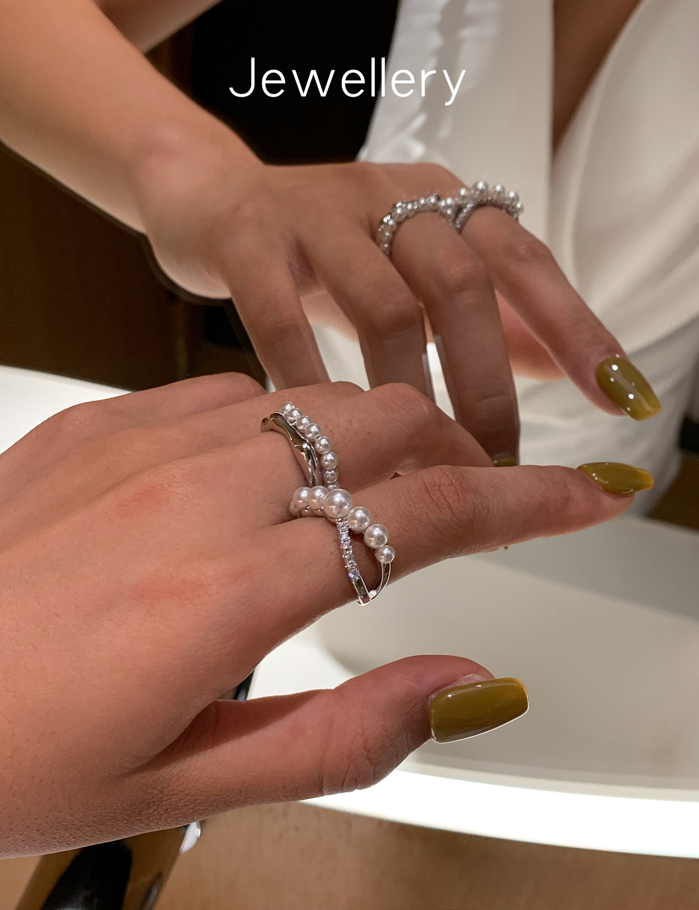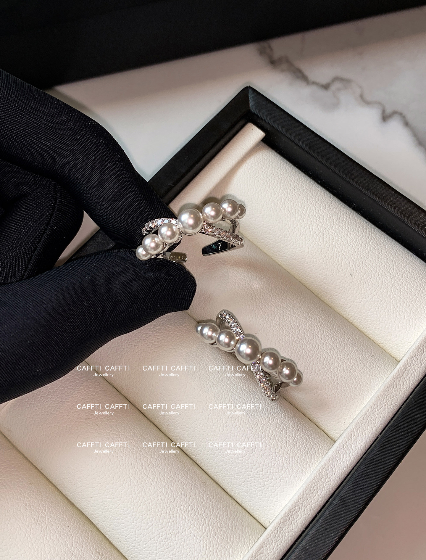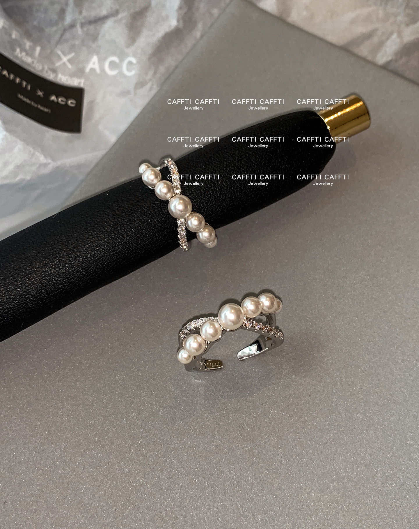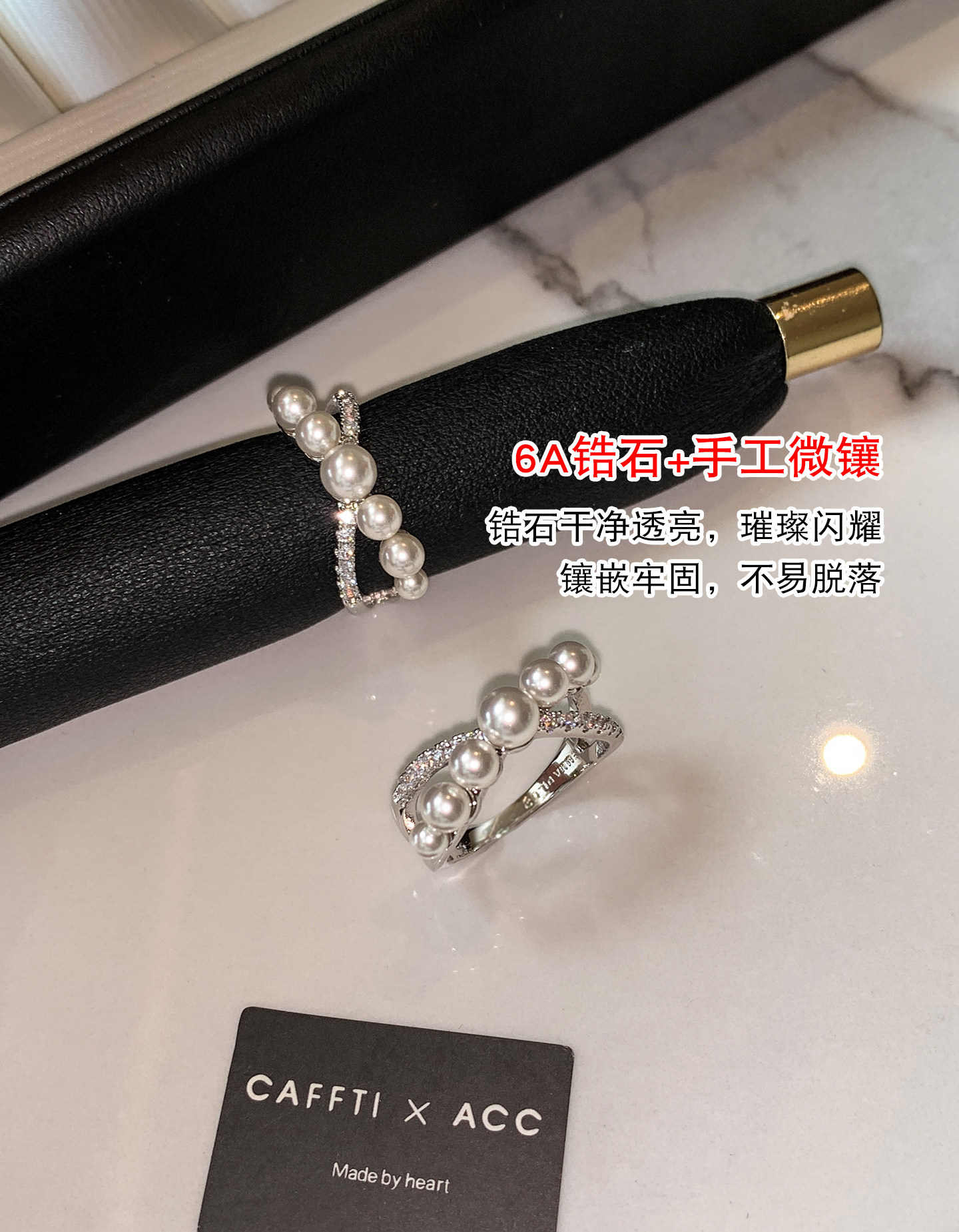 S Brand Australian White Cross Zircon Pearl Ring for Women, Niche Design, Light Luxury, Exquisite and High-End Index Finger Ring