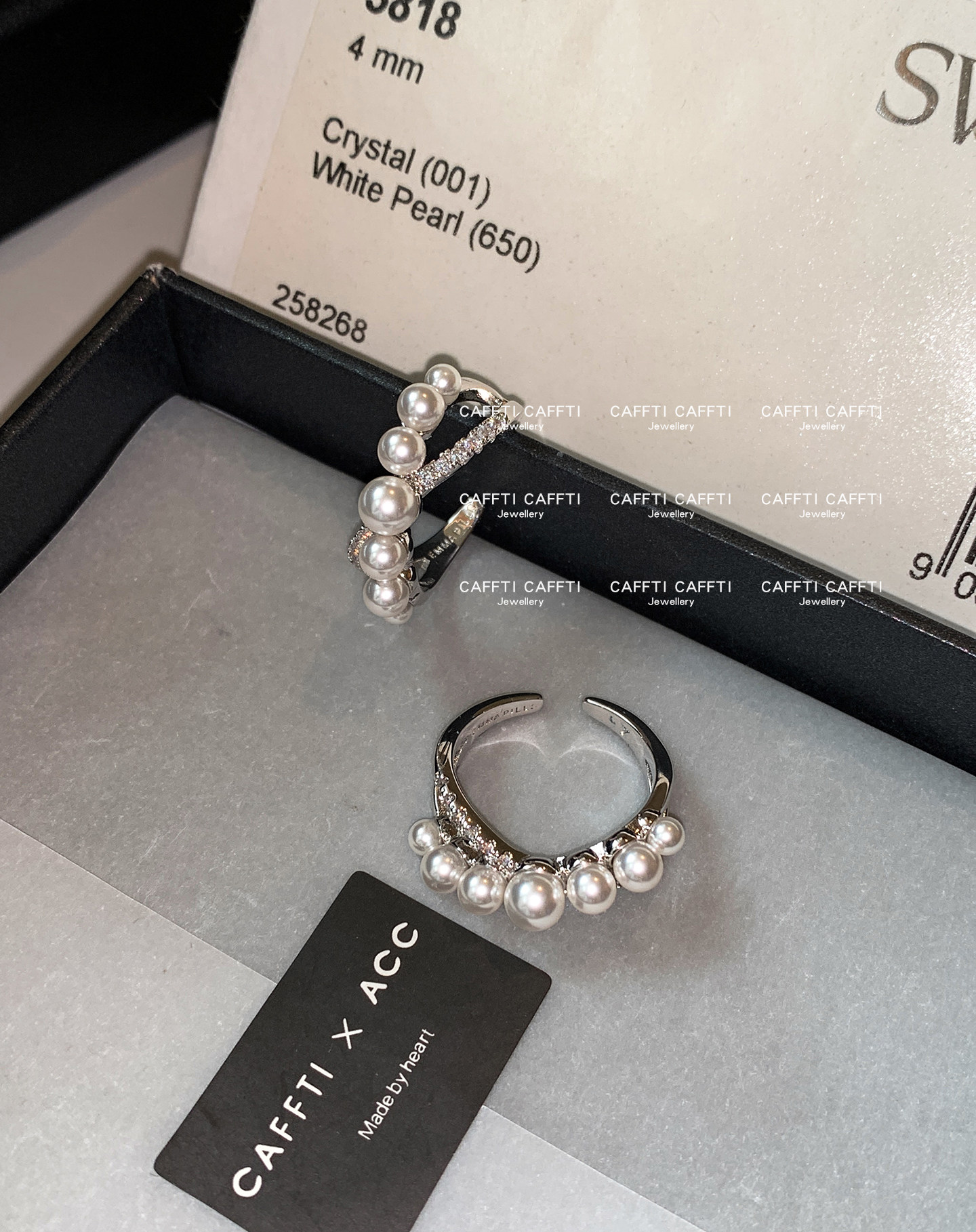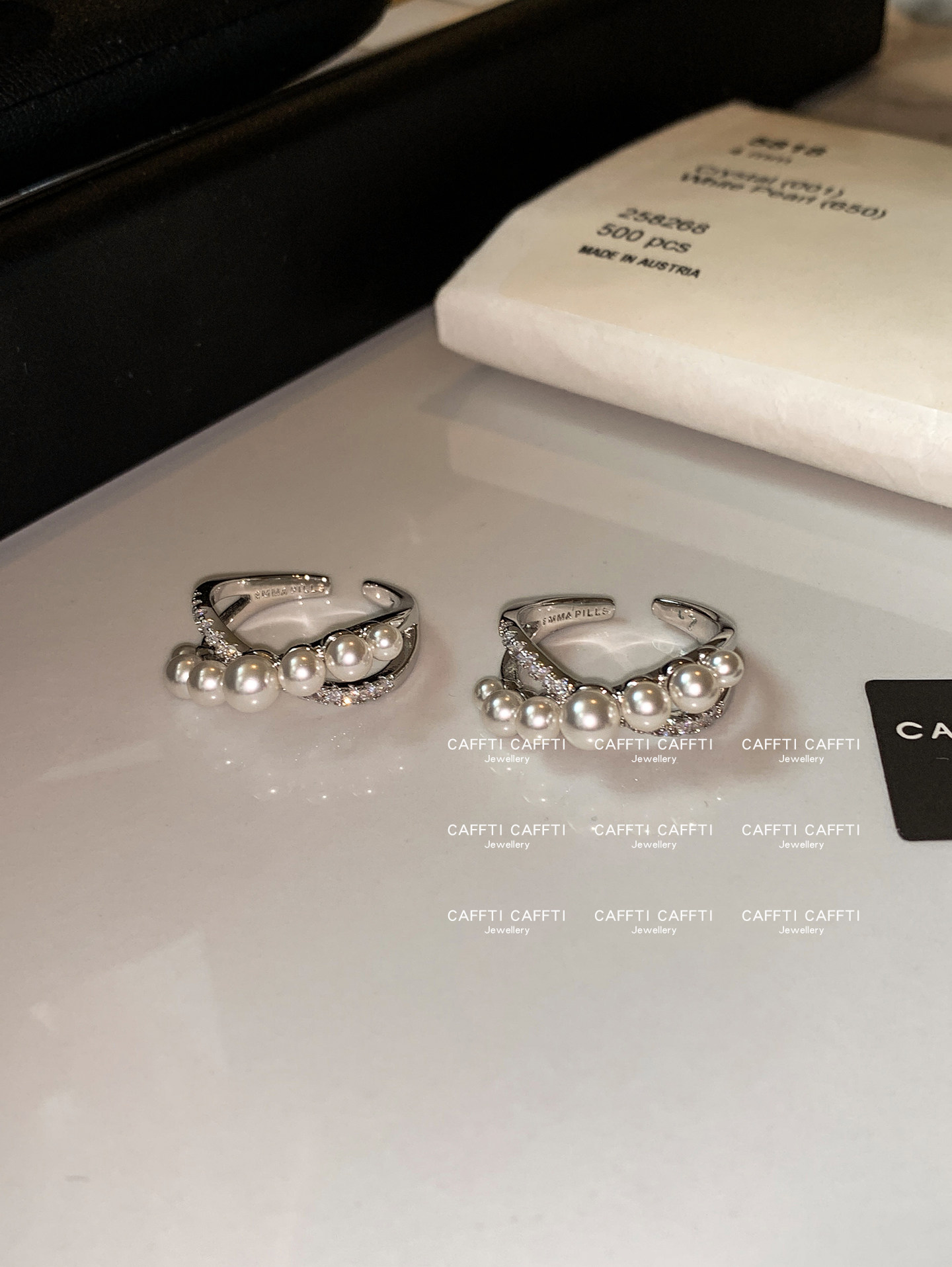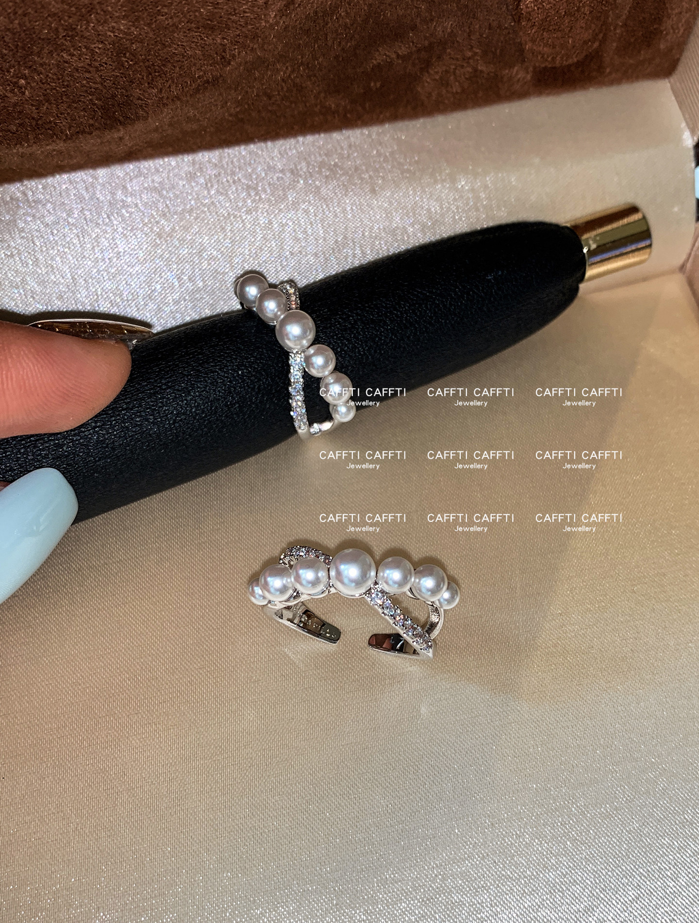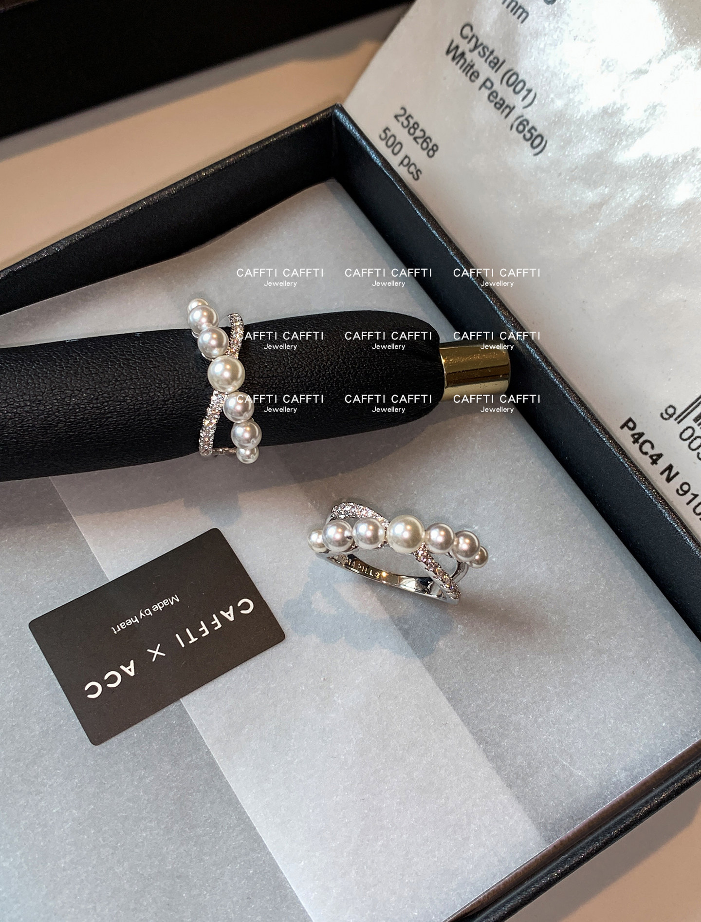 S Brand Australian White Cross Zircon Pearl Ring for Women, Niche Design, Light Luxury, Exquisite and High-End Index Finger Ring