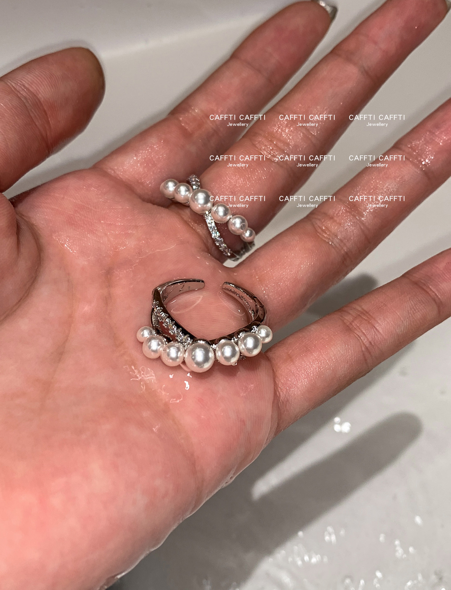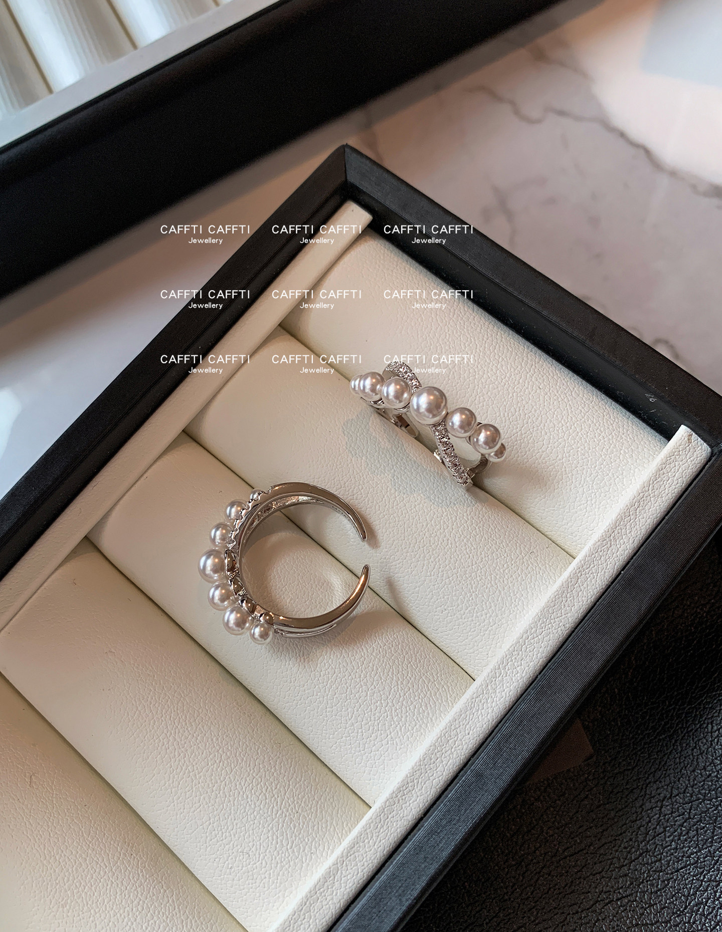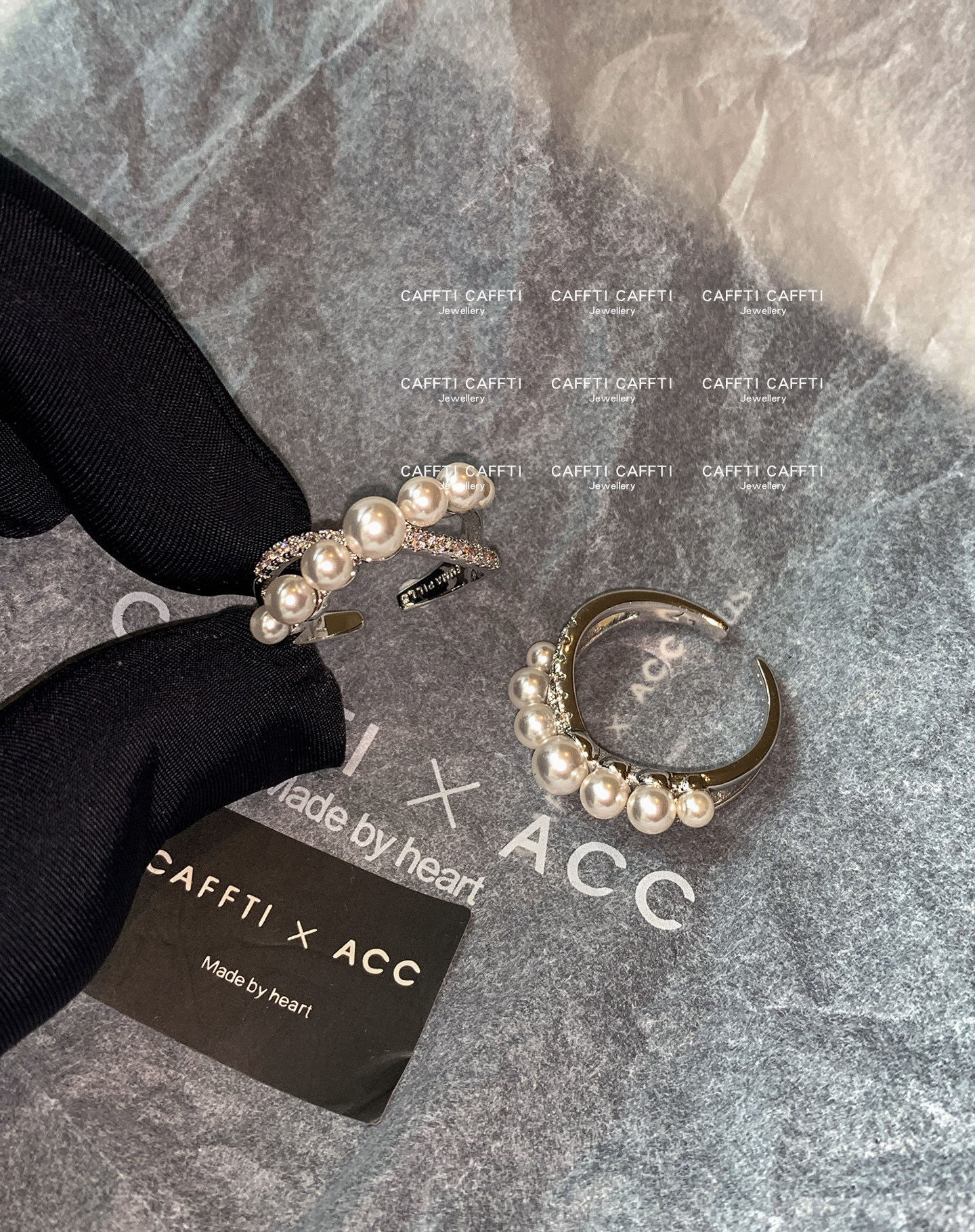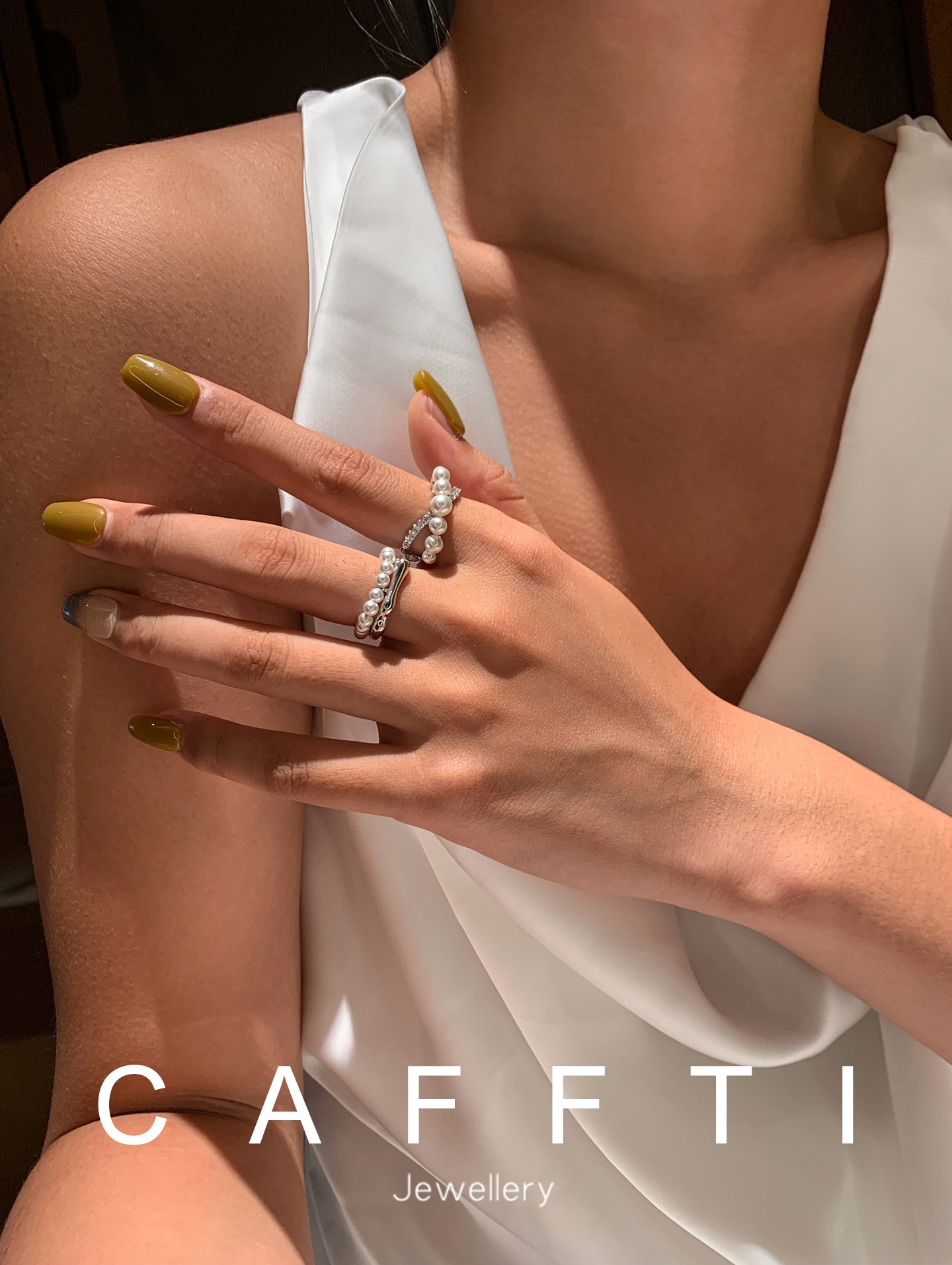 S Brand Australian White Cross Zircon Pearl Ring for Women, Niche Design, Light Luxury, Exquisite and High-End Index Finger Ring