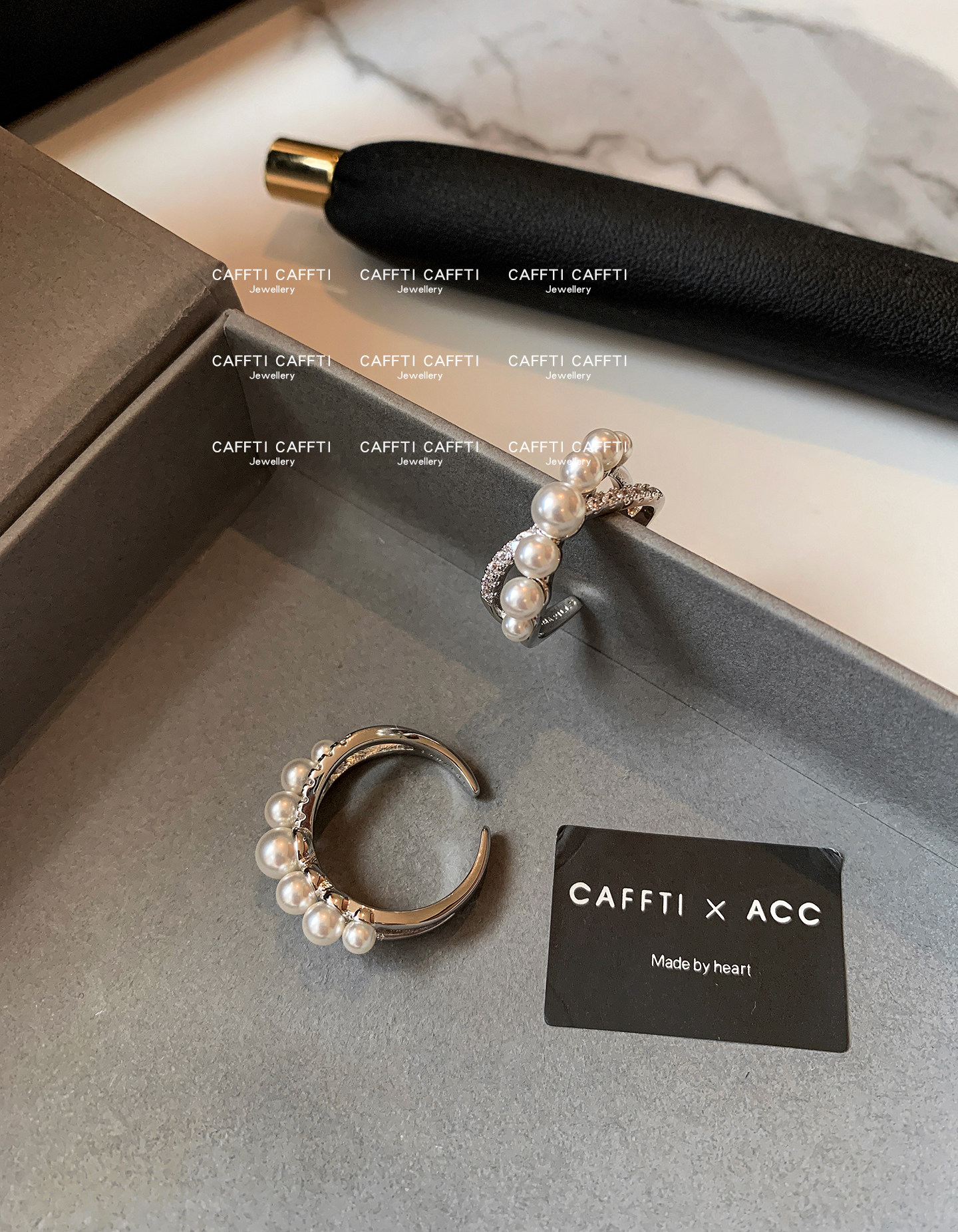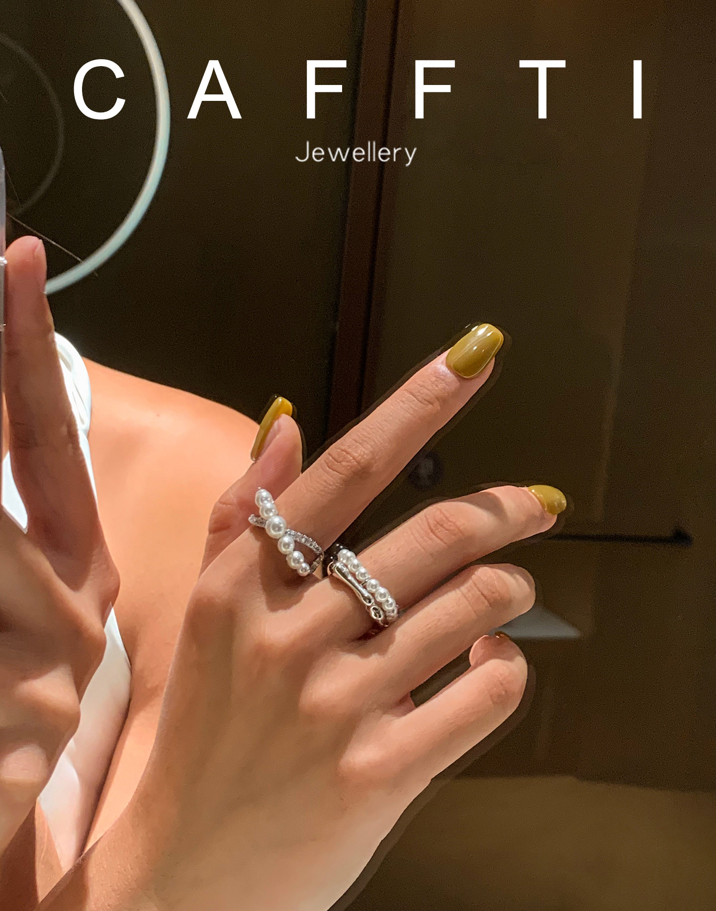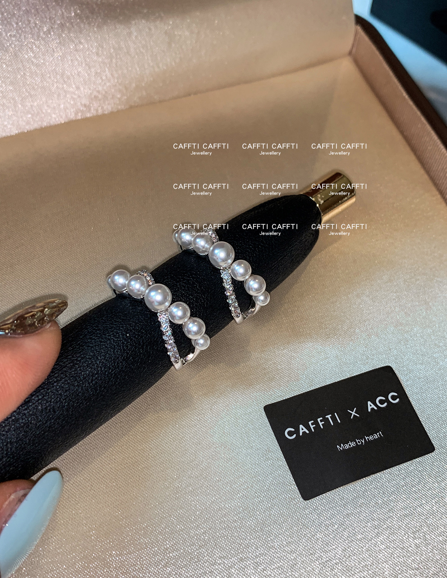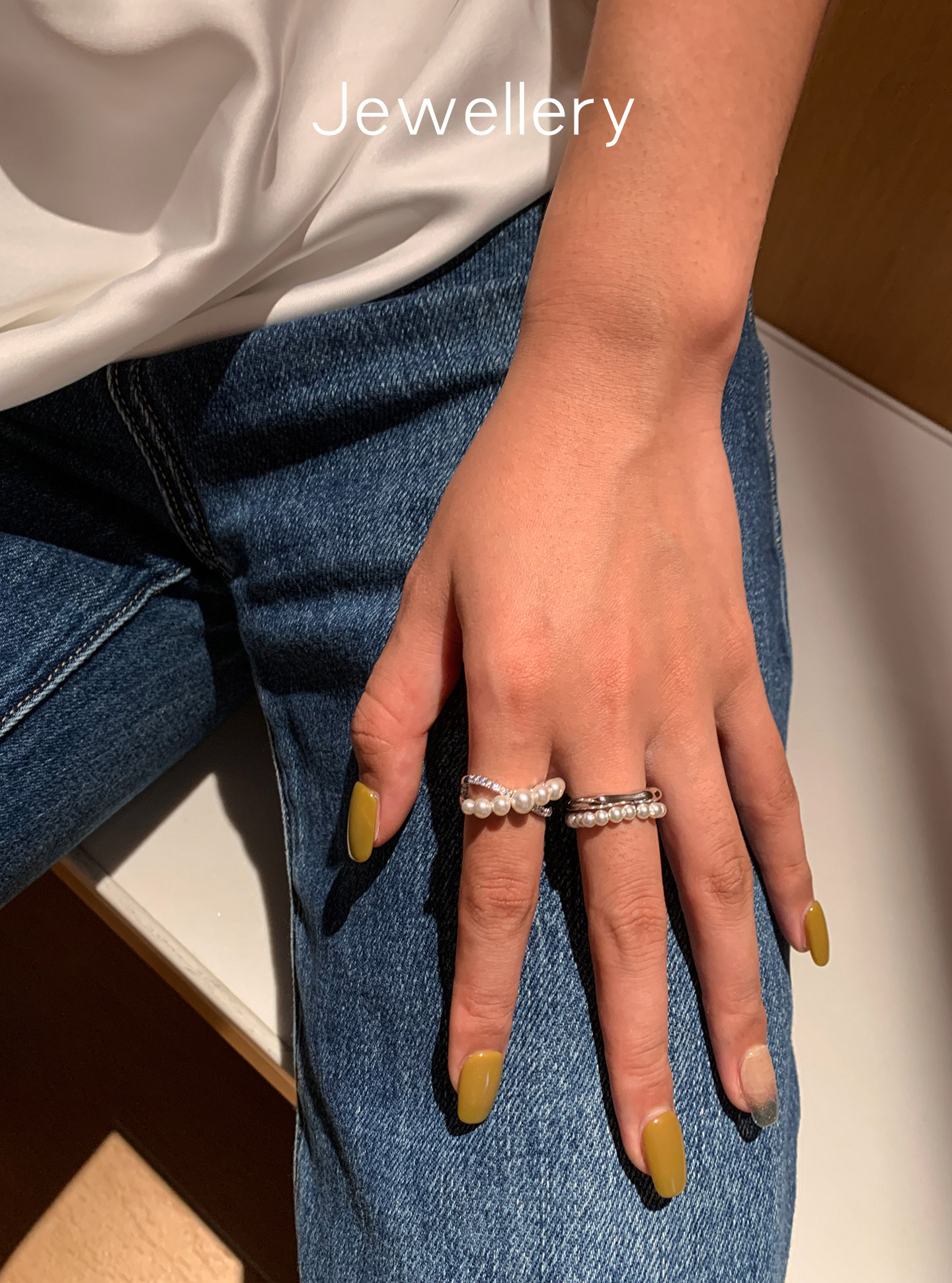 S Brand Australian White Cross Zircon Pearl Ring for Women, Niche Design, Light Luxury, Exquisite and High-End Index Finger Ring