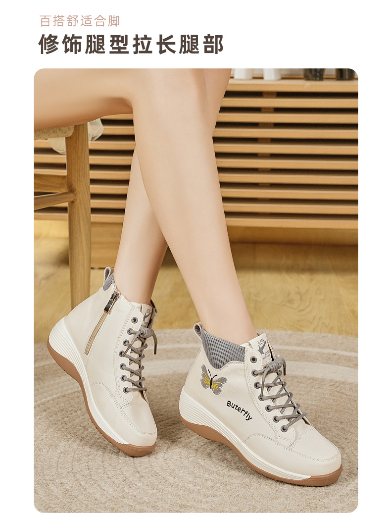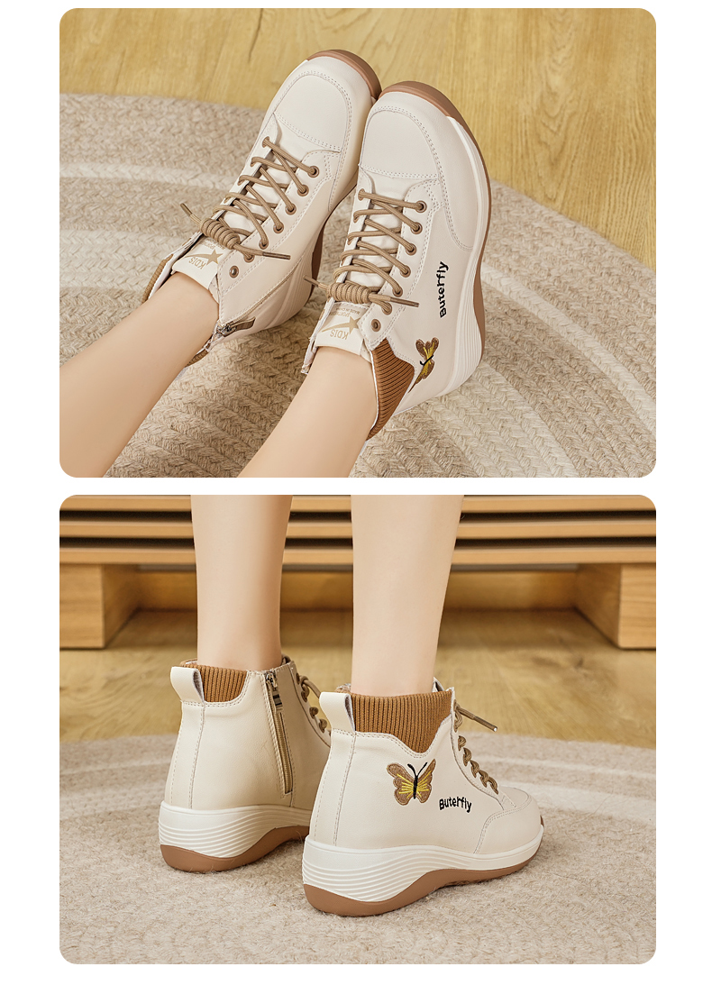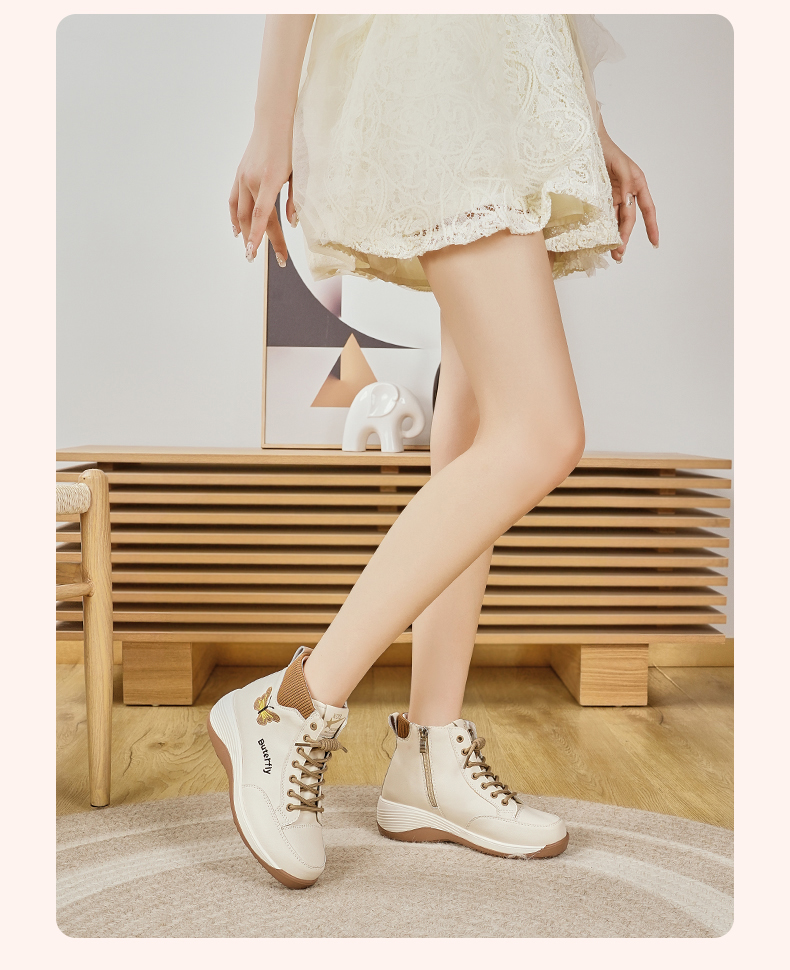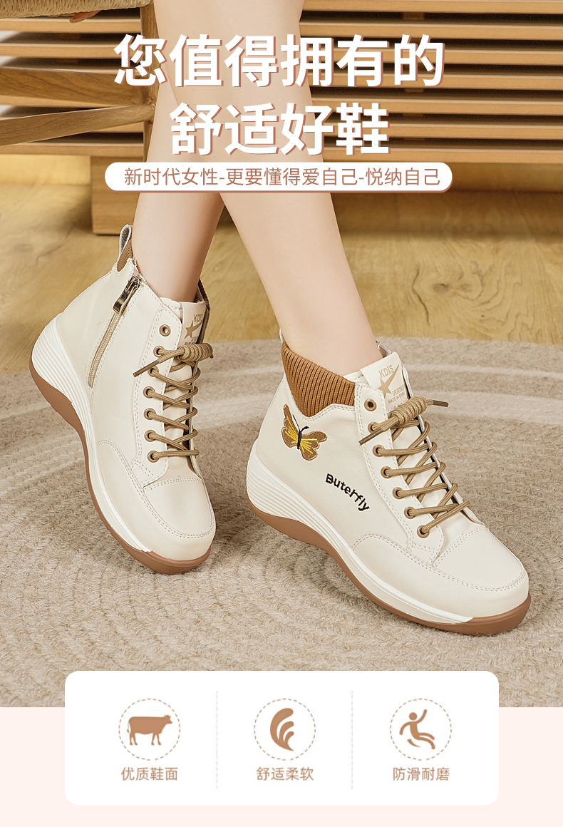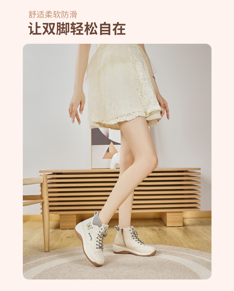 Genuine Leather High-Top White Shoes for Women 2025 Spring and Autumn Popular Versatile Travel Boots Comfortable Soft-Soled Women's Shoes Non-Slip Short Boots