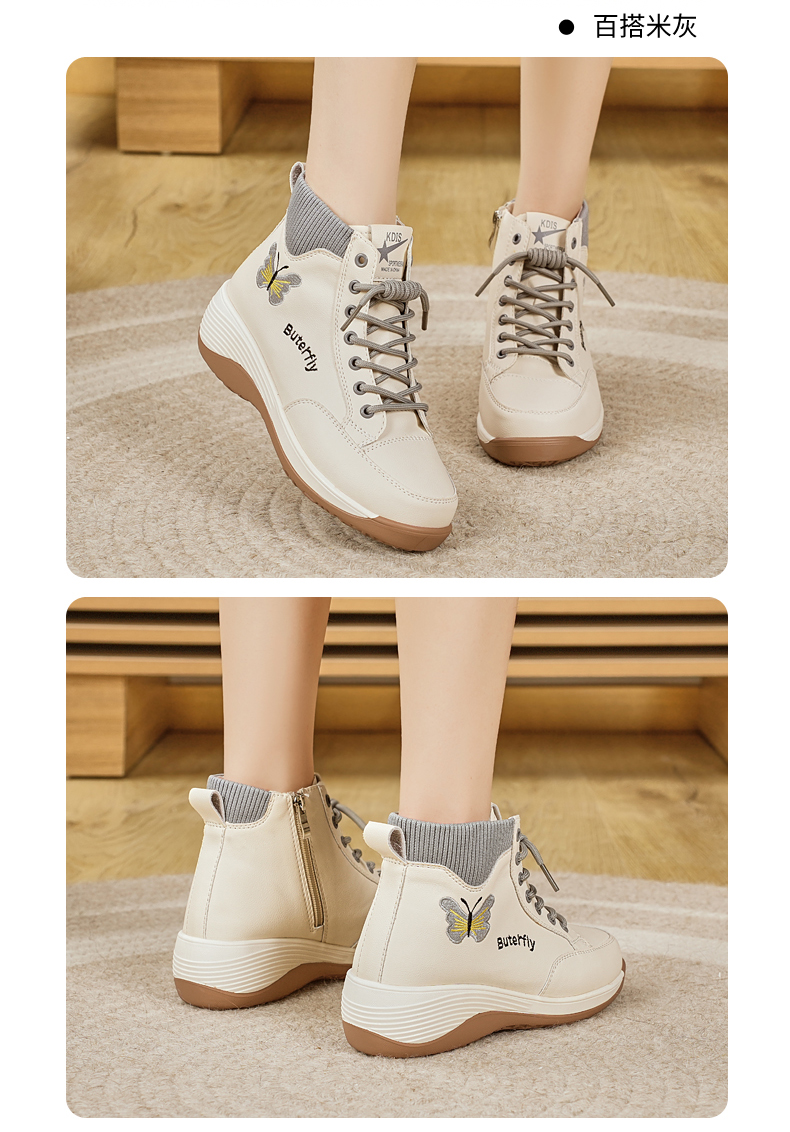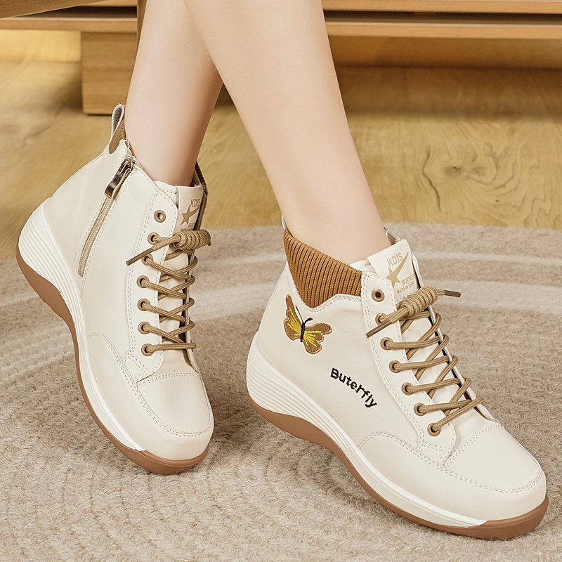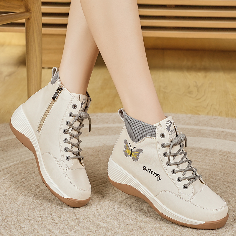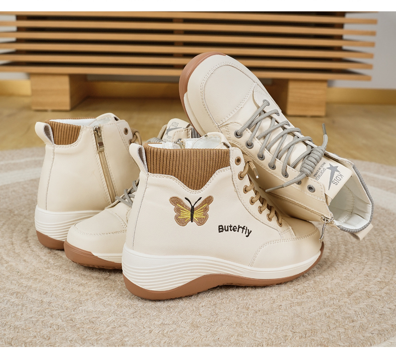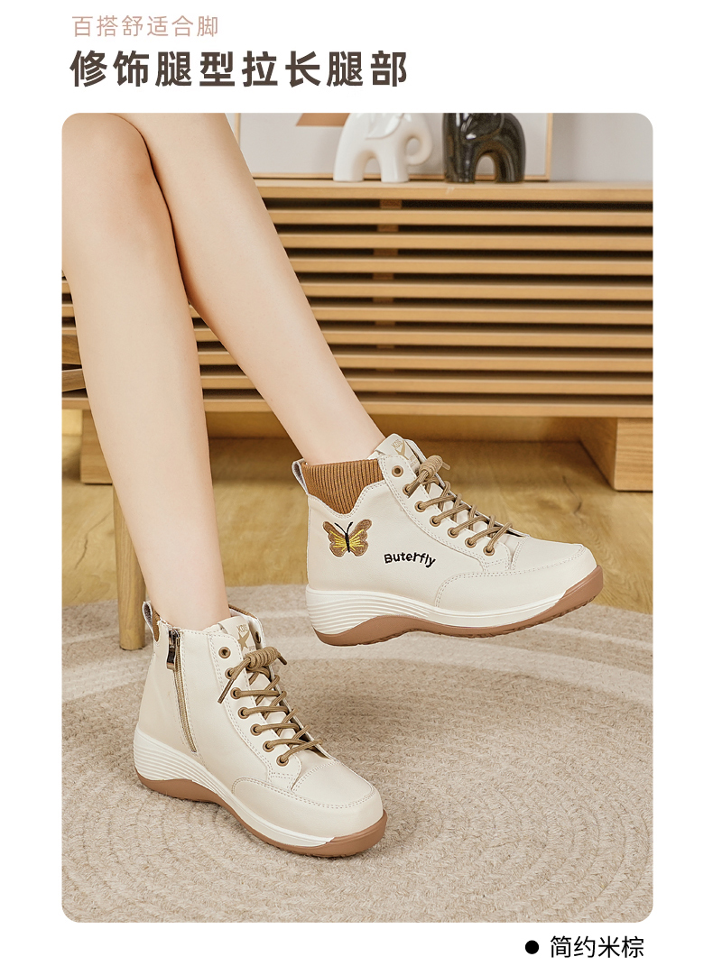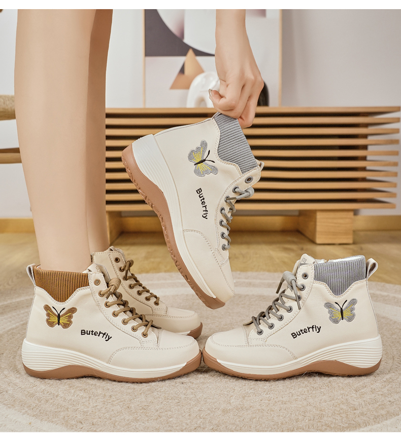Genuine Leather High-Top White Shoes for Women 2025 Spring and Autumn Popular Versatile Travel Boots Comfortable Soft-Soled Women's Shoes Non-Slip Short Boots