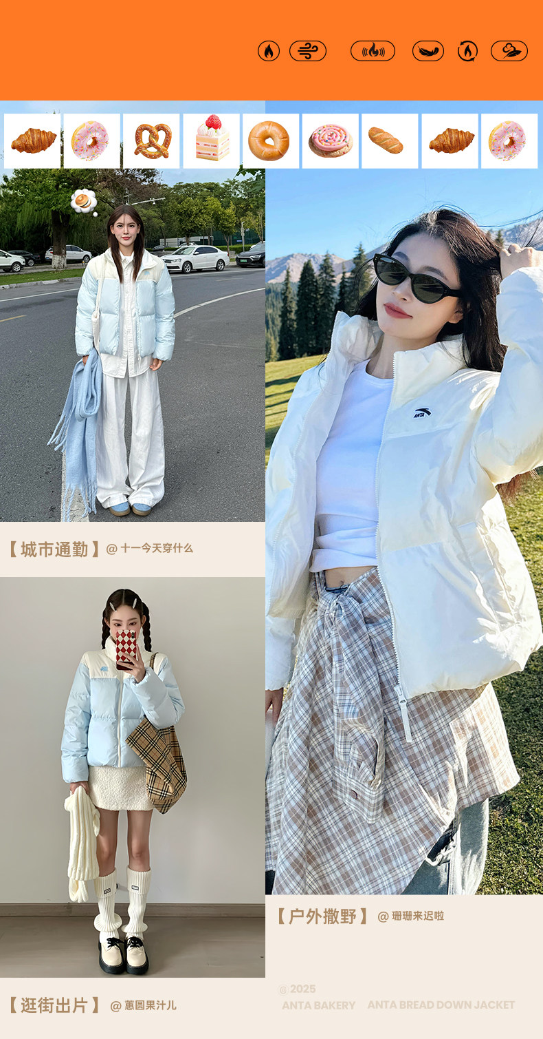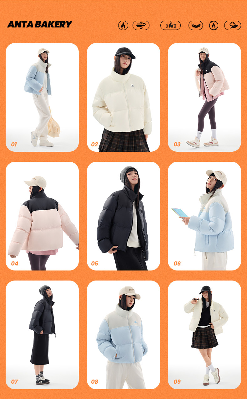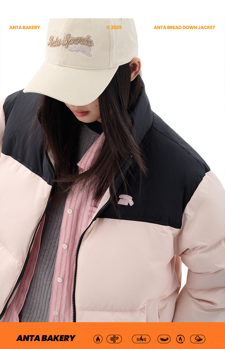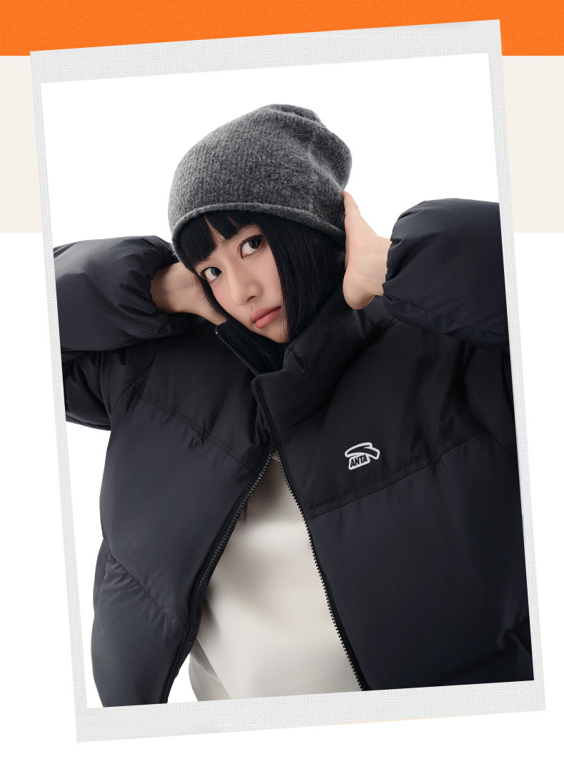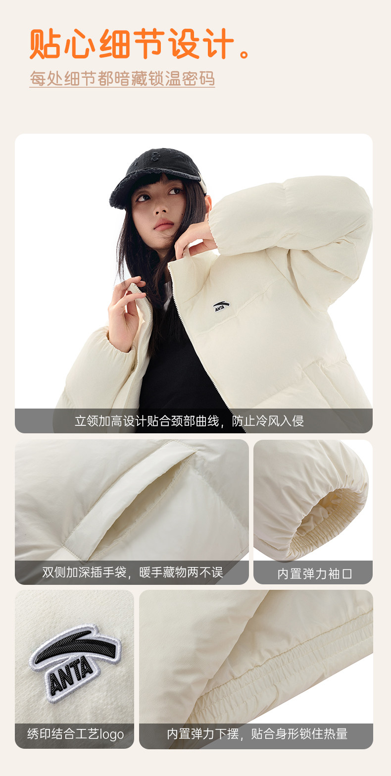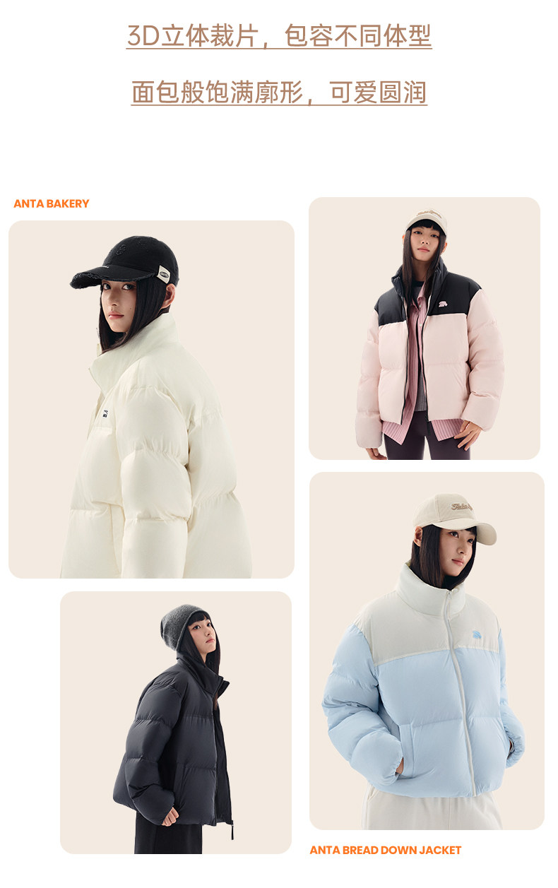 Anta Bread down | Dopamine Short down Jacket for Women Winter Loose Fit Cotton Padded Jacket Warm Coat