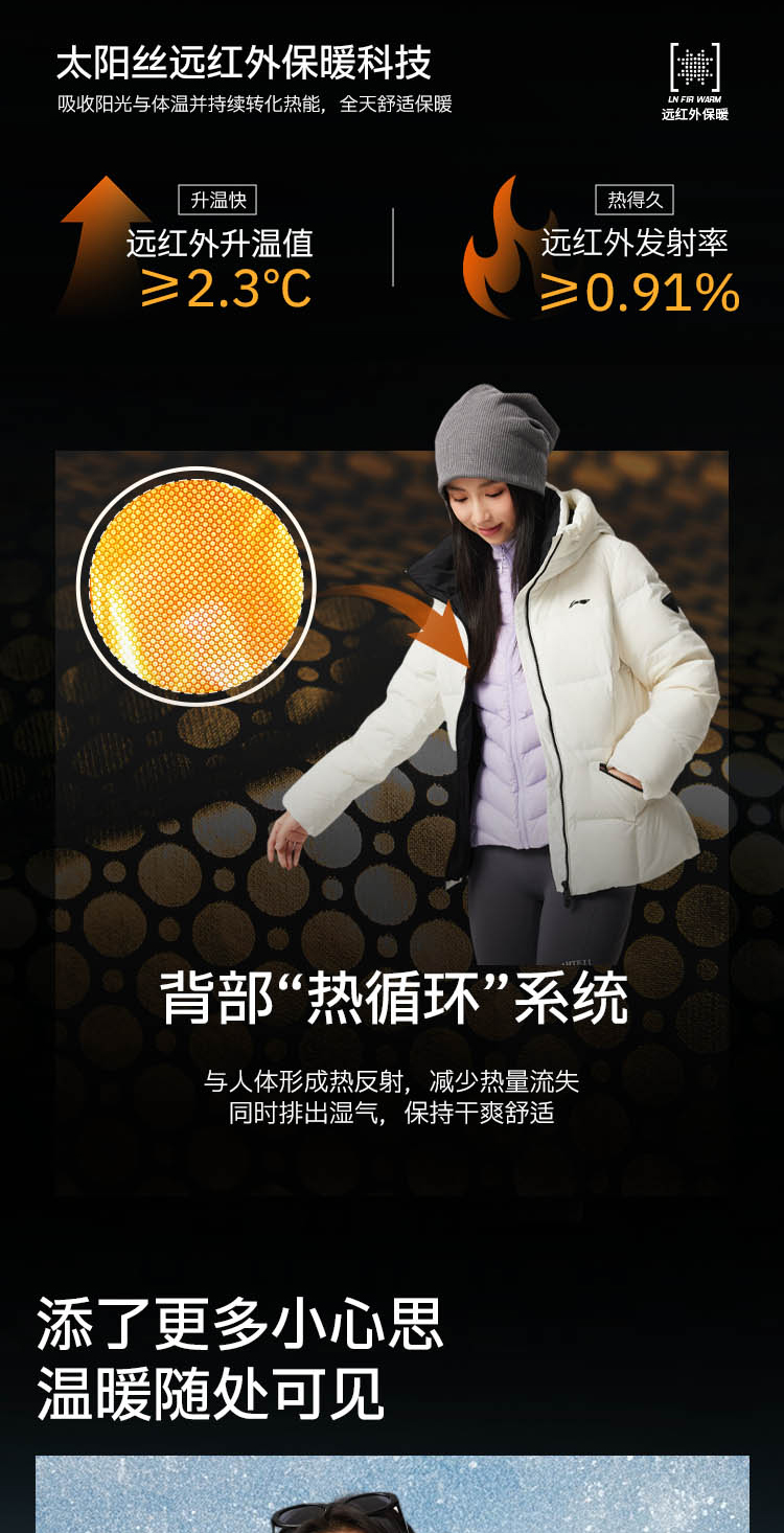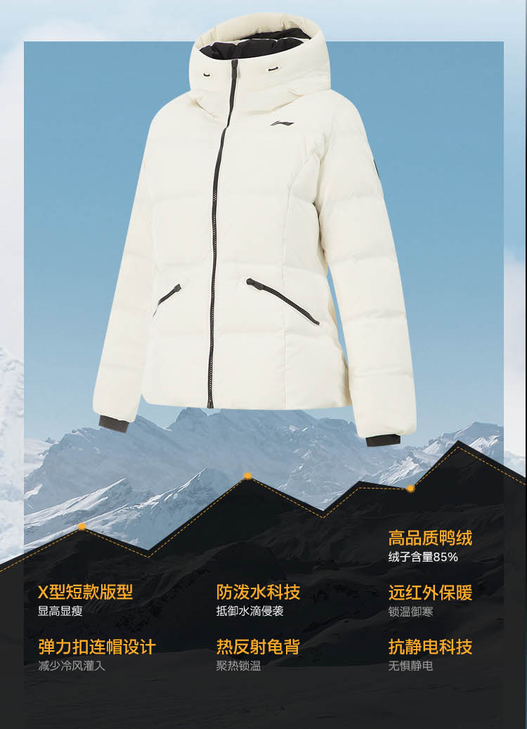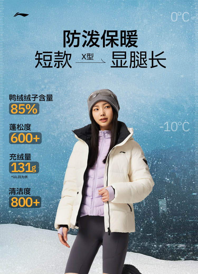 Li-Ning Hot Pot down Jacket | Women's Winter 2025 New Short Hooded Waist-Tightening Top Duck down Sports Coat