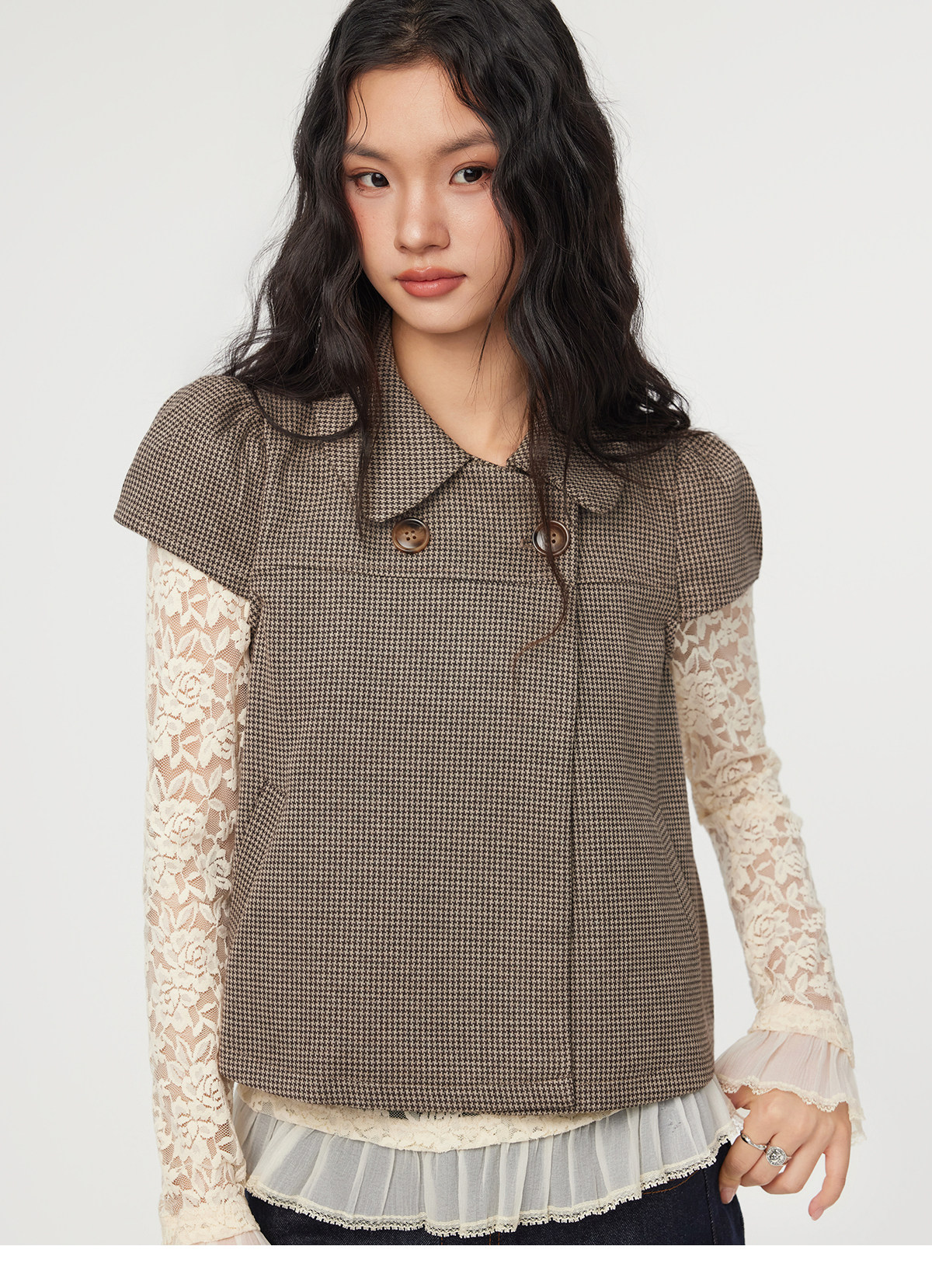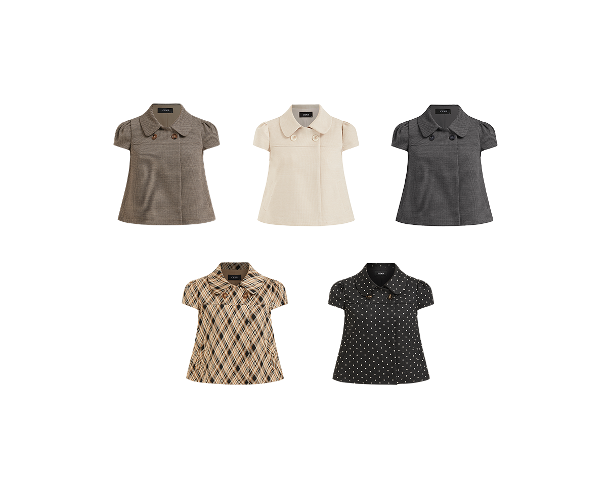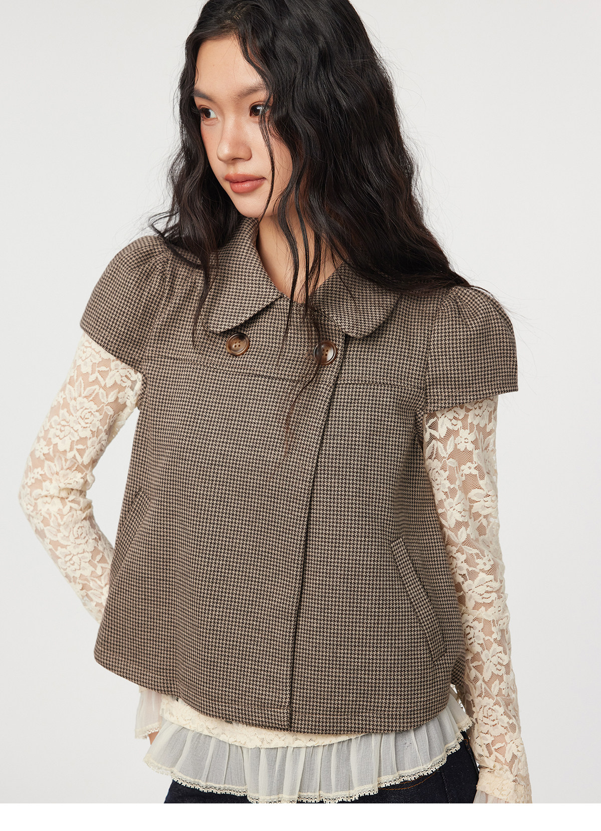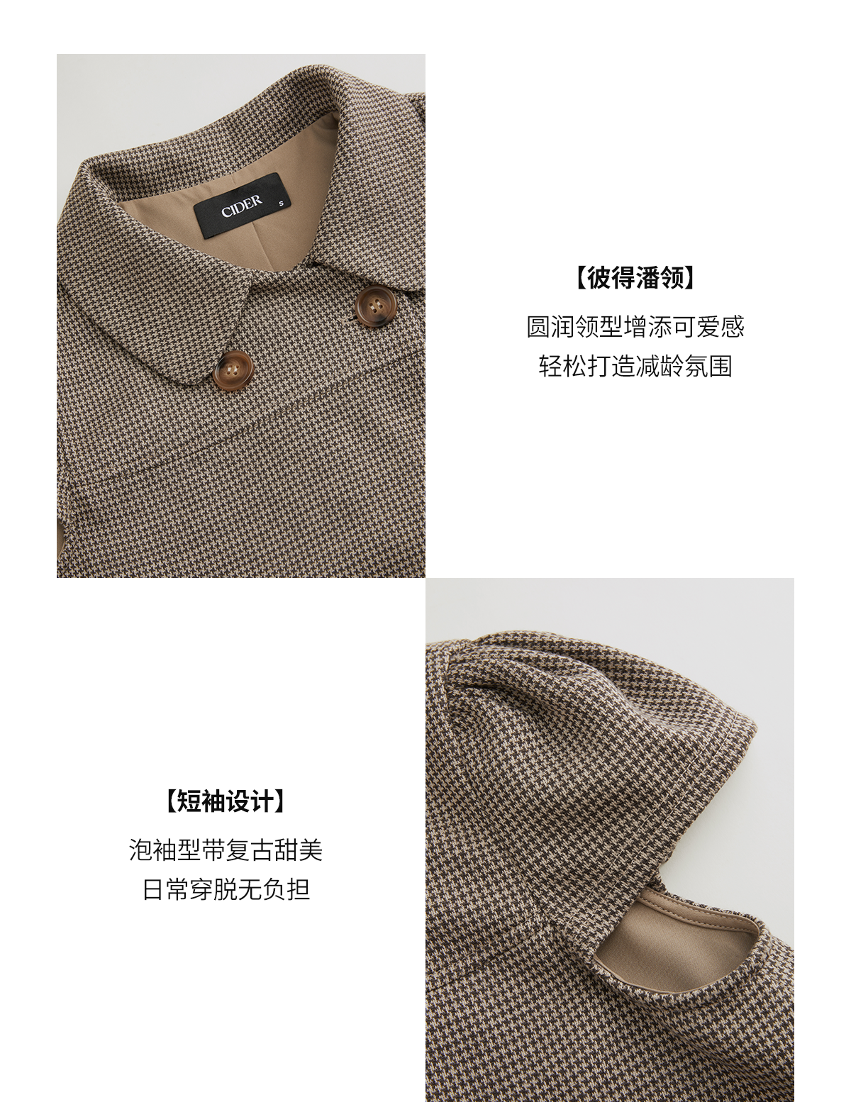 Cider Peter Pan Collar Jacket Plaid Shirt Retro Lapel Plaid Casual Short-Sleeved Top 114740919