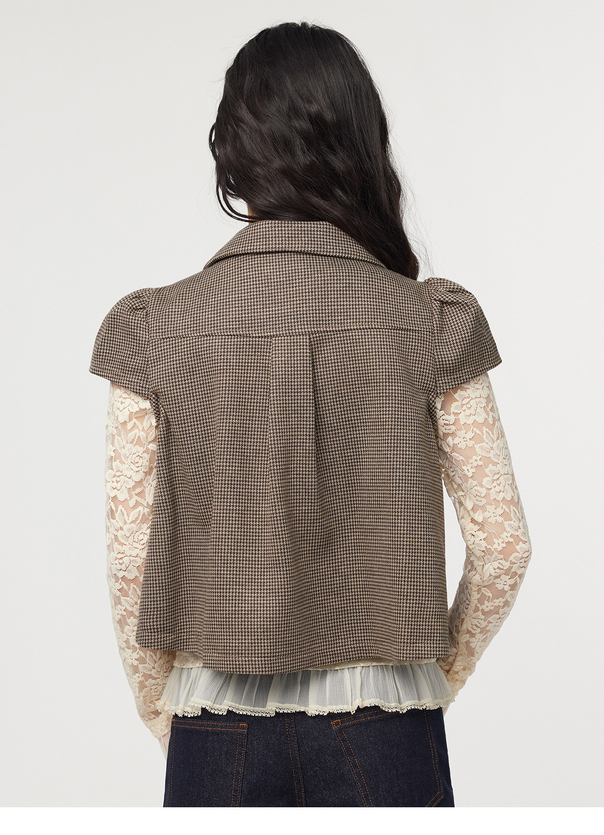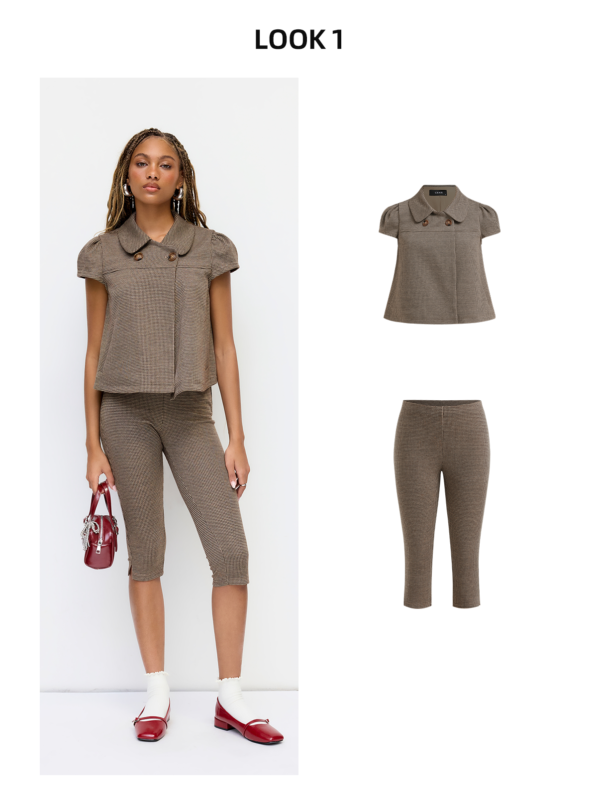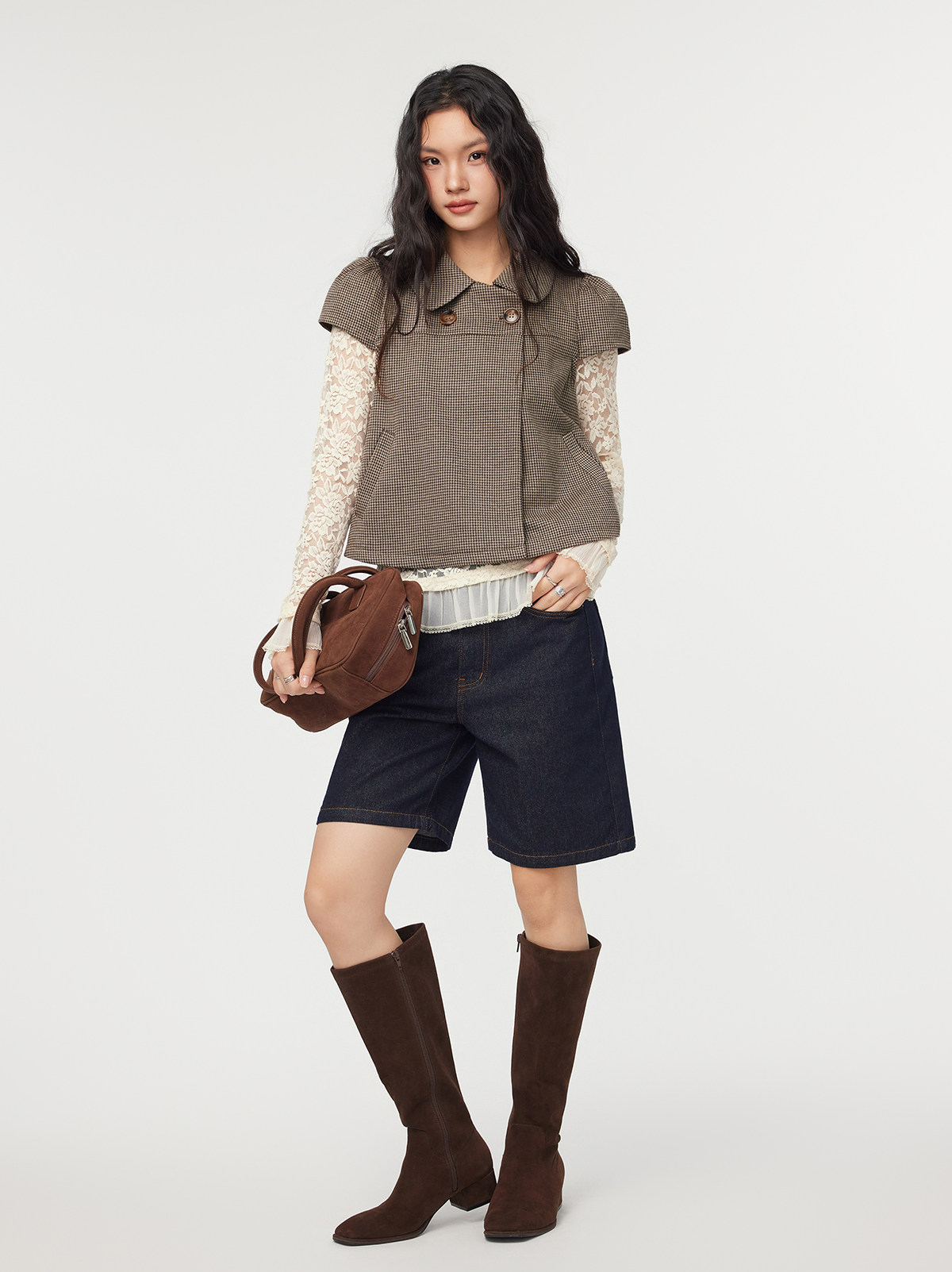 Cider Peter Pan Collar Jacket Plaid Shirt Retro Lapel Plaid Casual Short-Sleeved Top 114740919