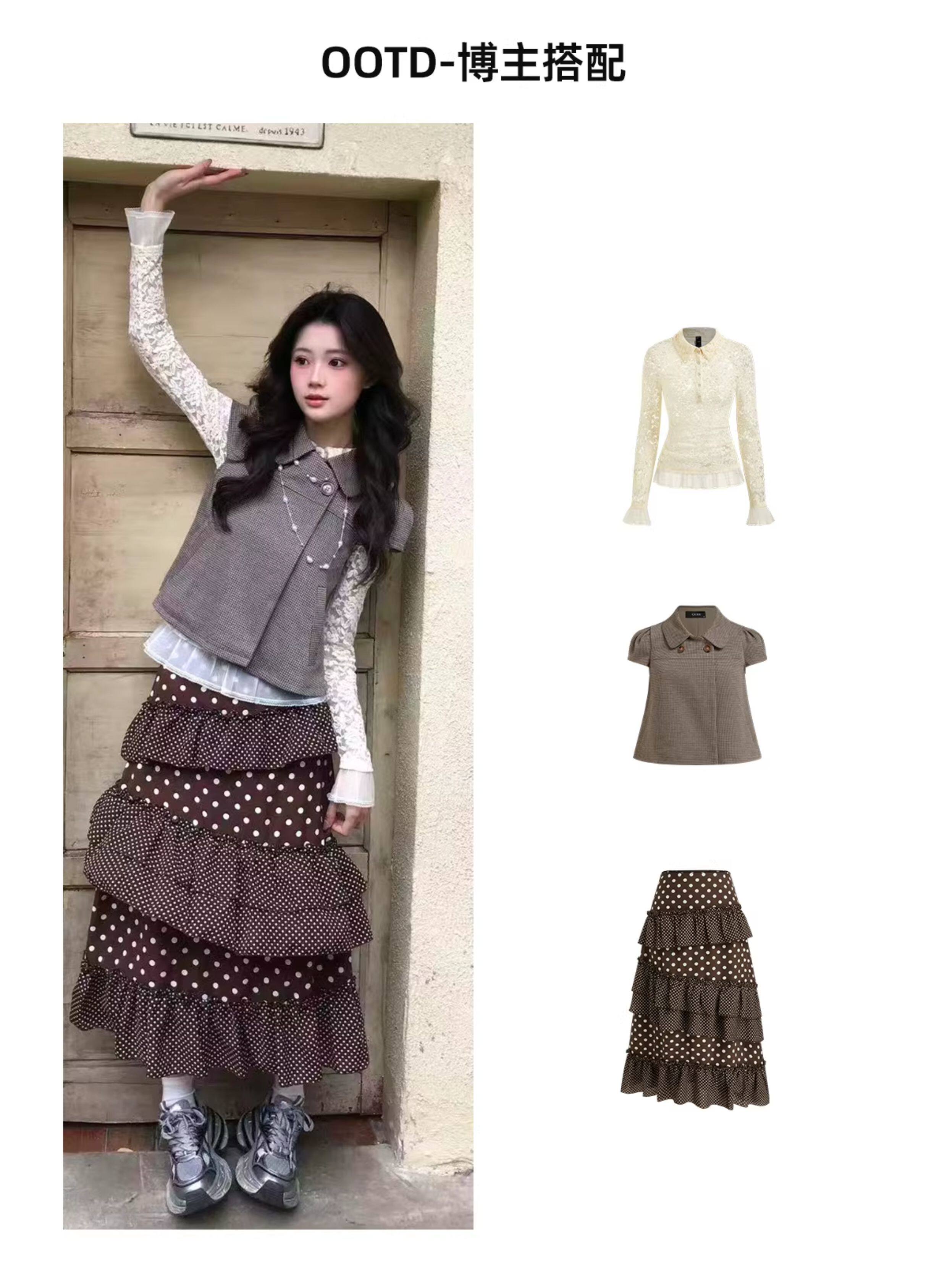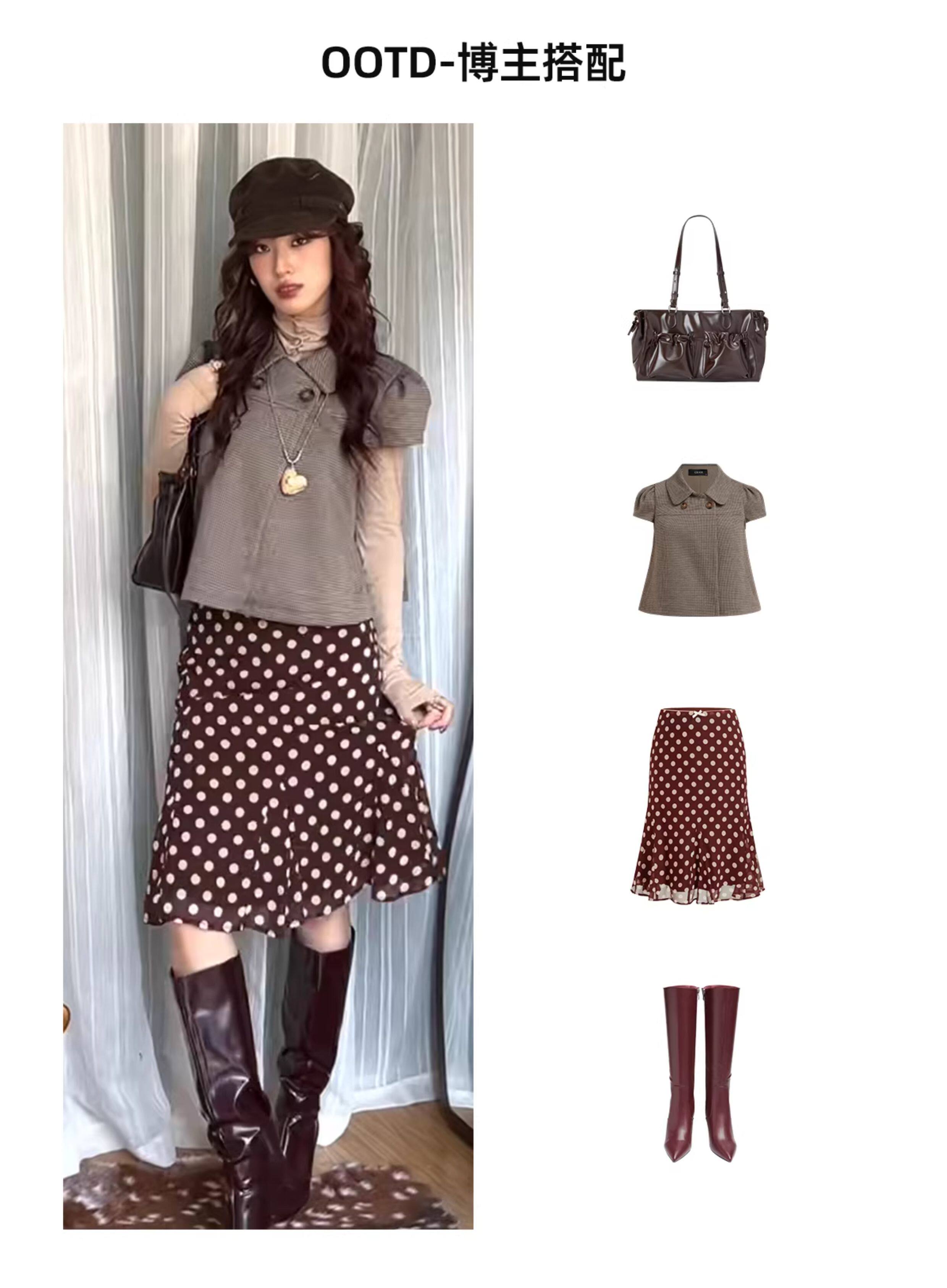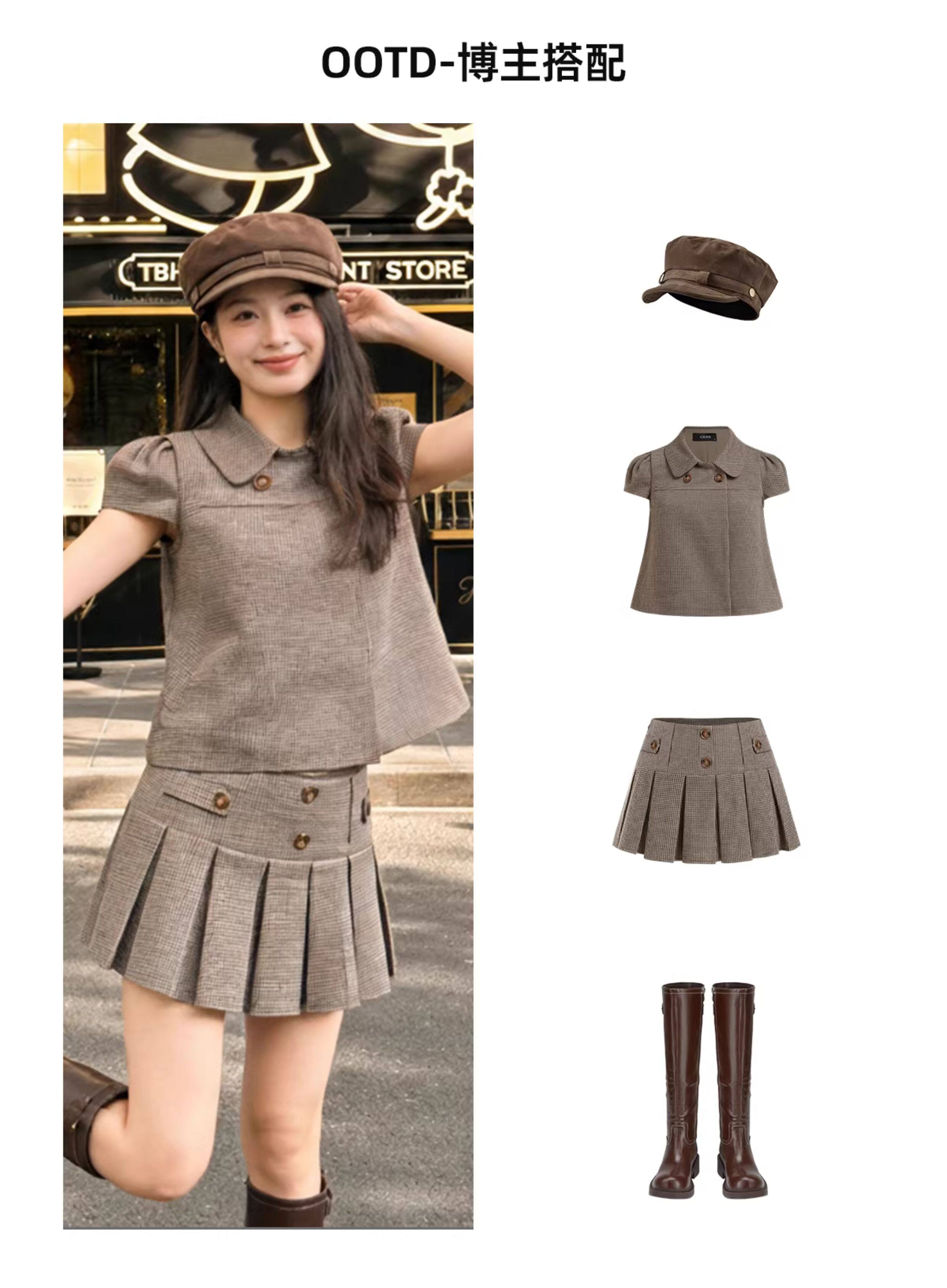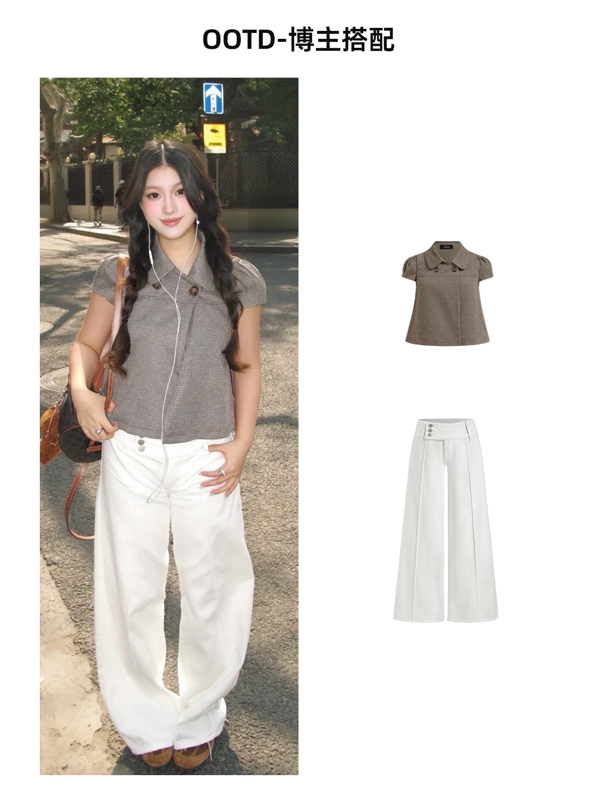 Cider Peter Pan Collar Jacket Plaid Shirt Retro Polka Dot Lapel Plaid Short-Sleeved Top 114740919