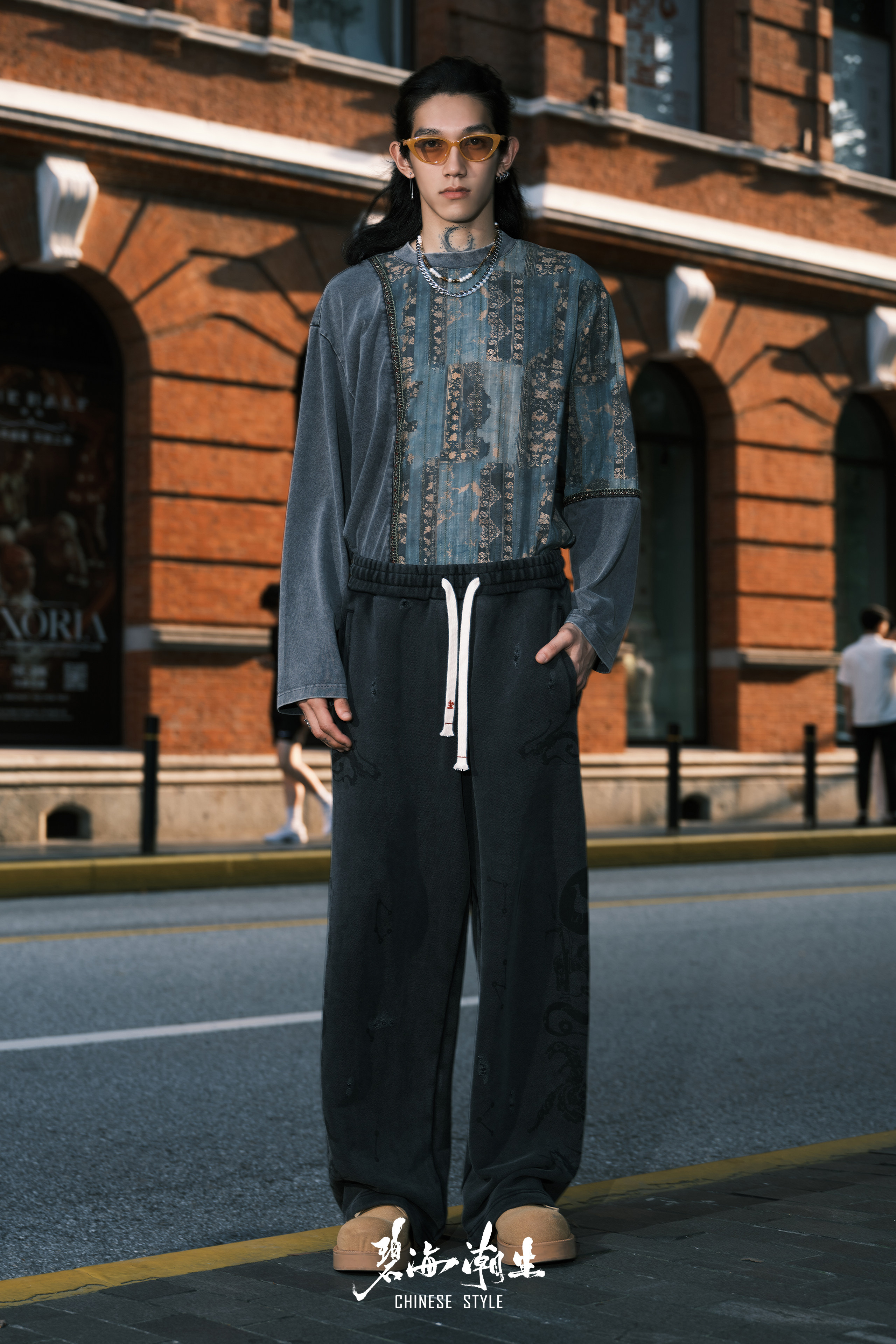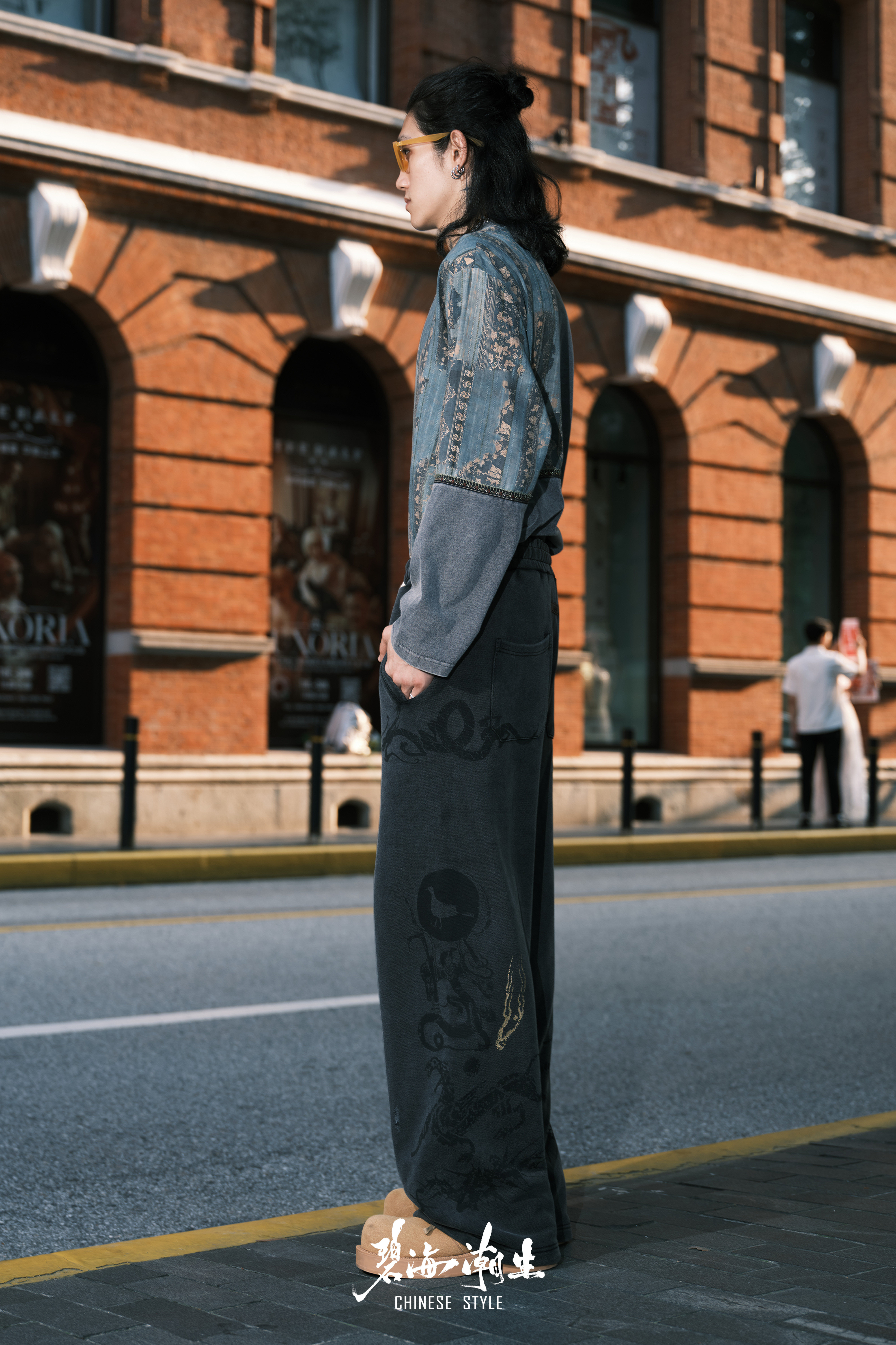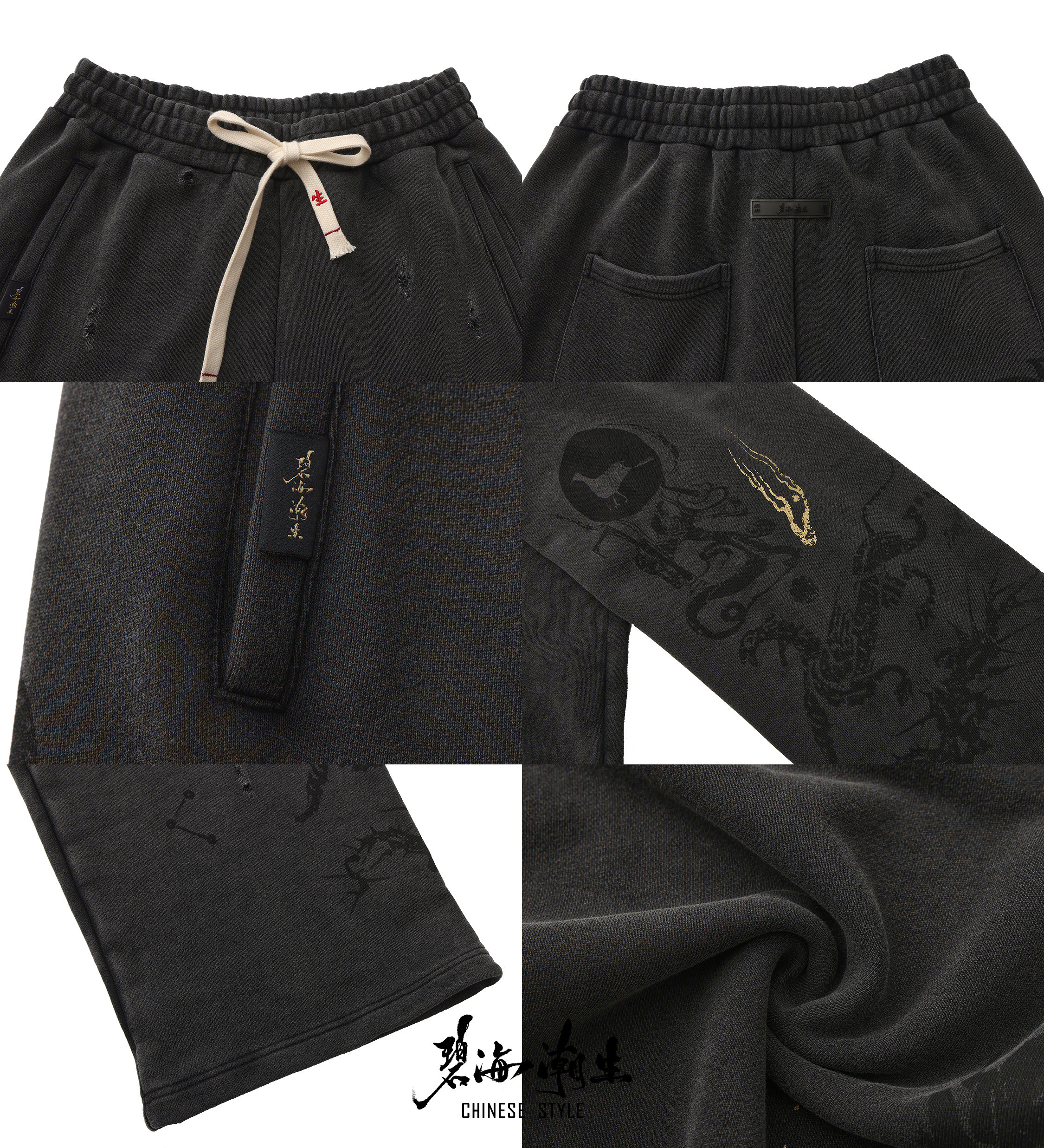 Bihai Chaosheng【Fuxi】New Autumn and Winter Chinese Style Heavy Wash Embroidered Casual Long Pants and Sweatpants