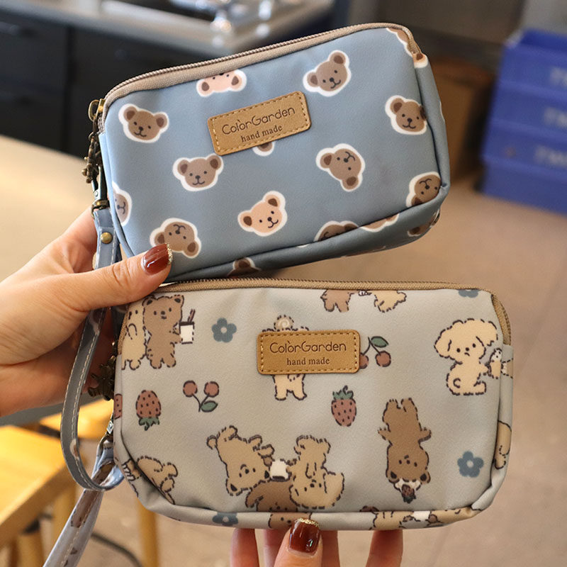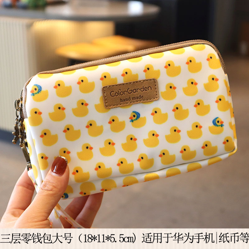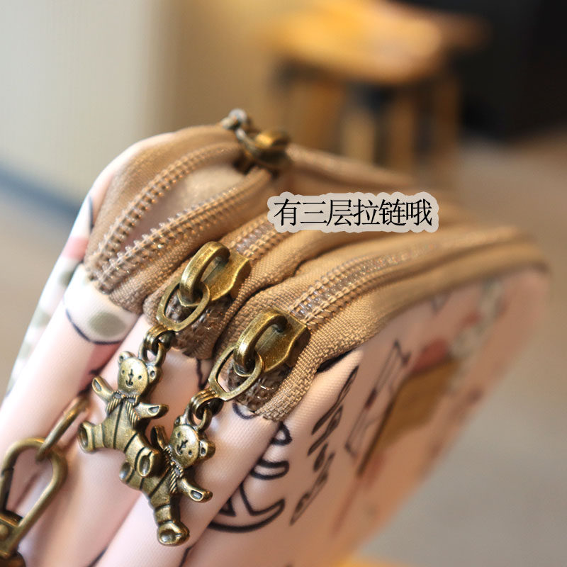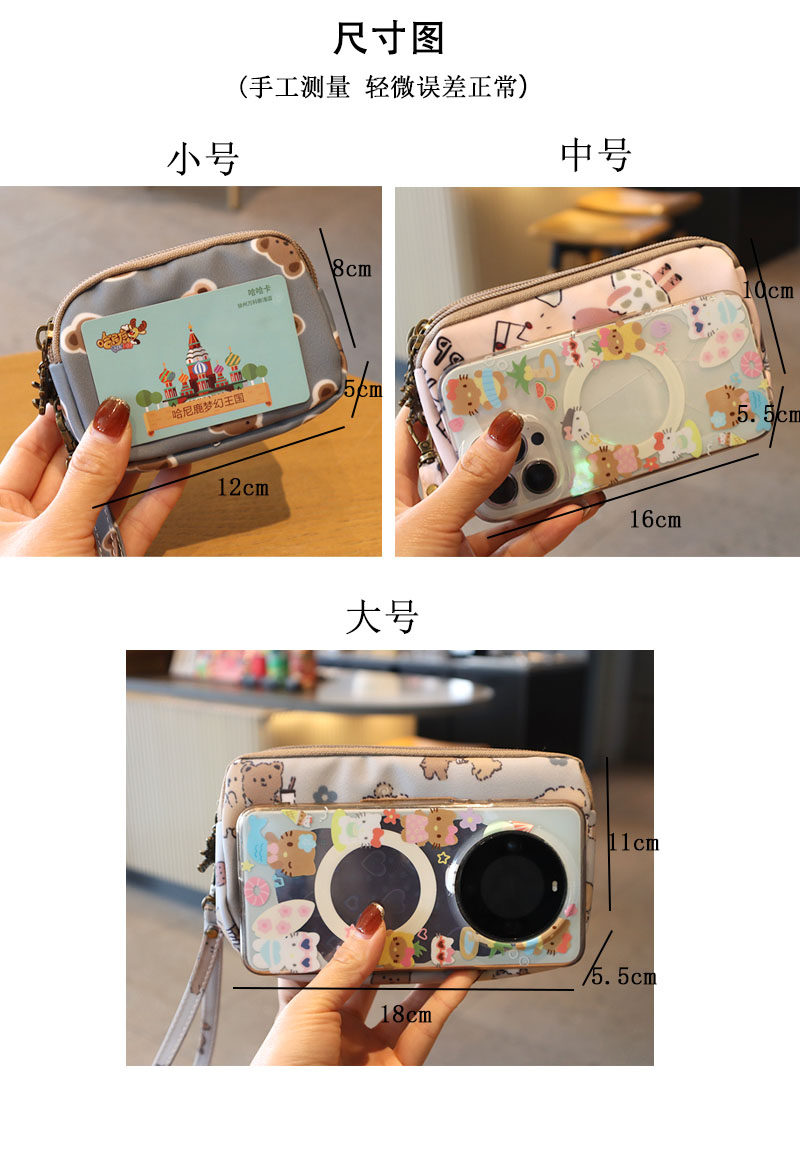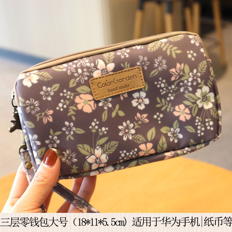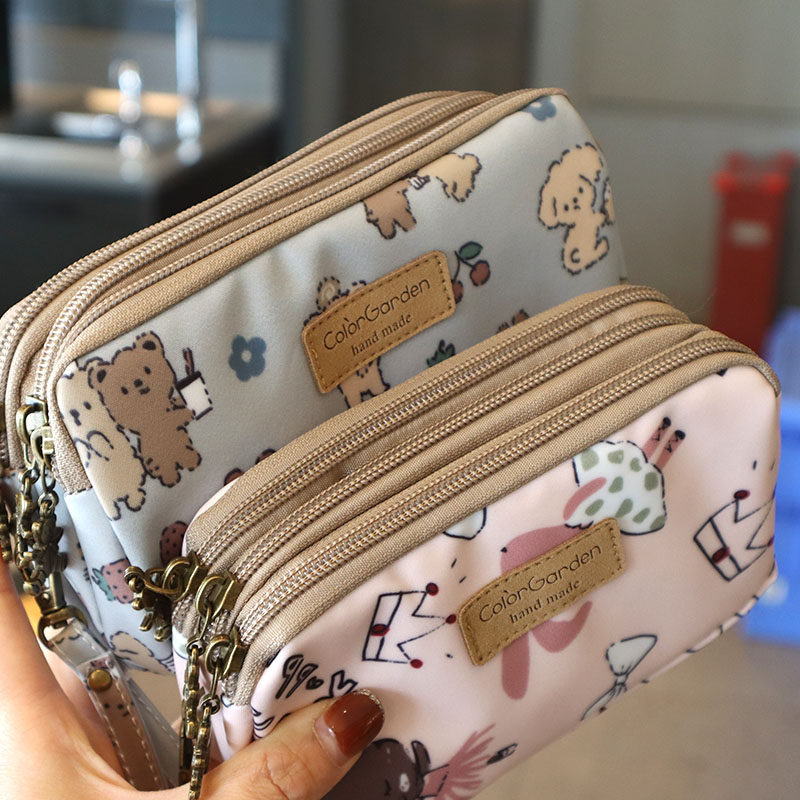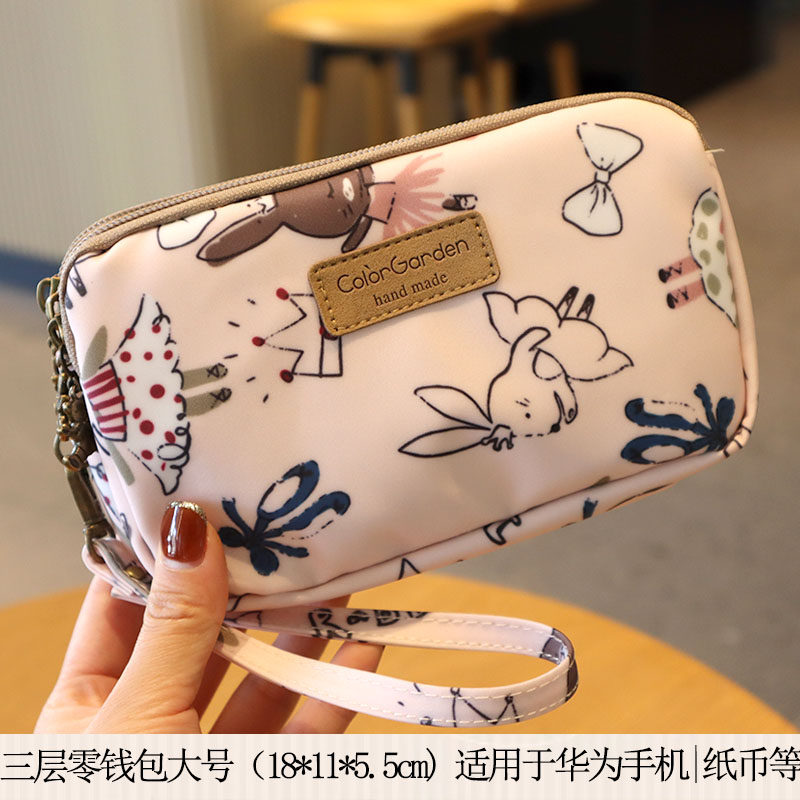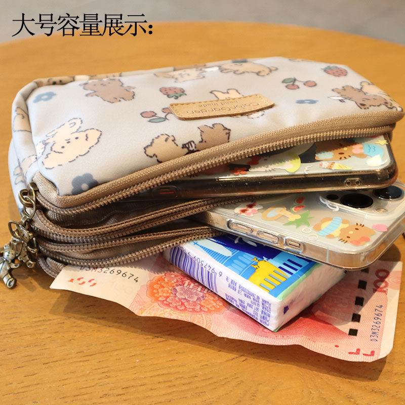 Korean Cute Waterproof Oxford Cloth Three-Layer Zipper Phone Bag Storage Bag Cosmetic Bag Hand-Held Storage Bag Coin Purse