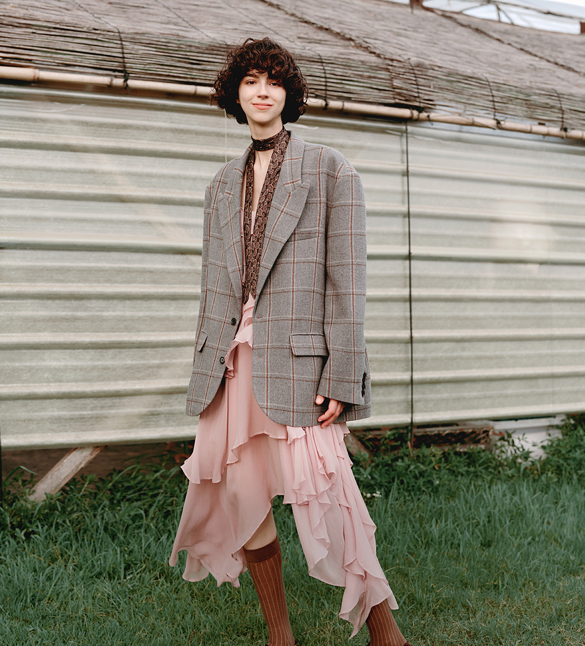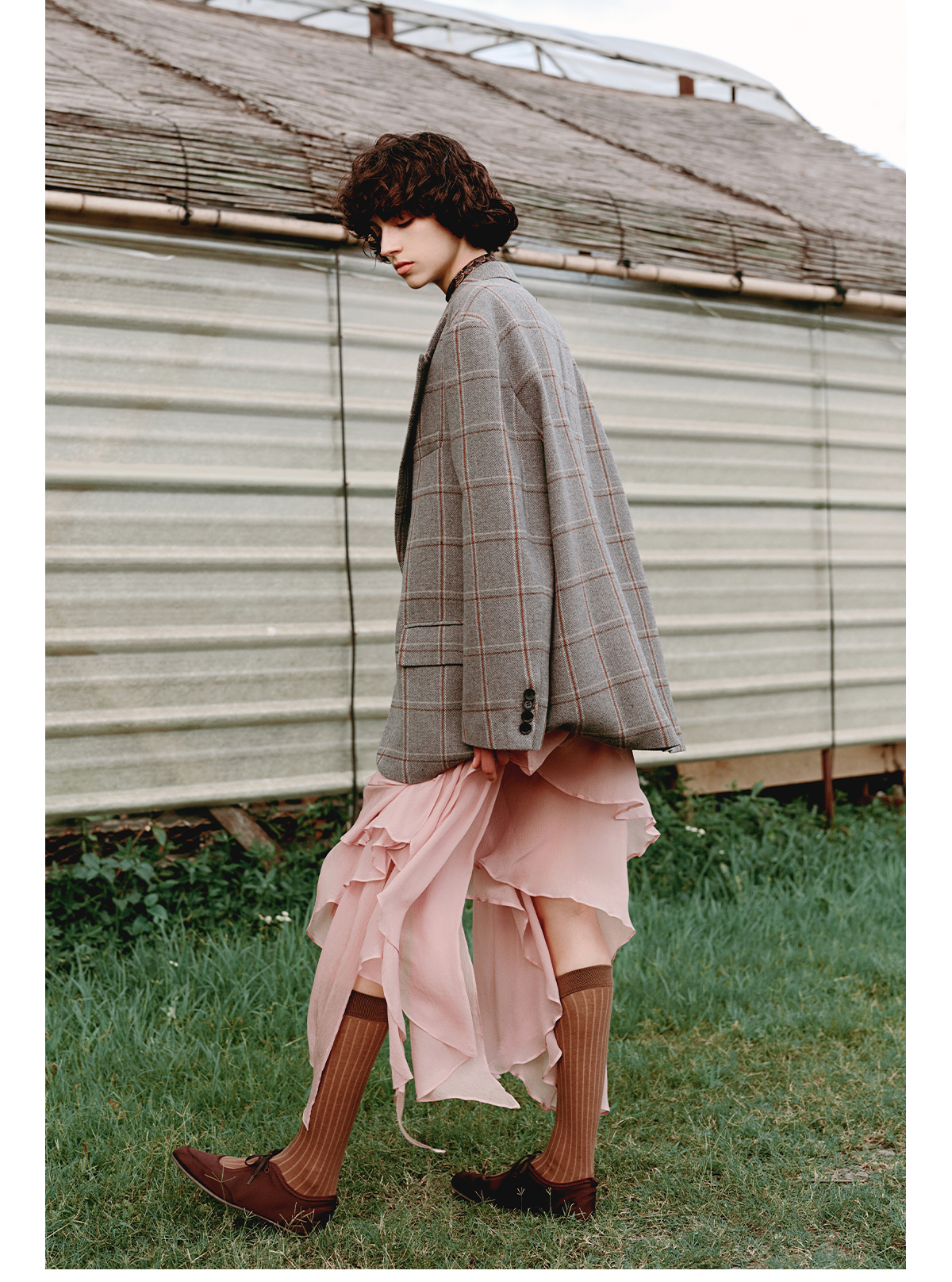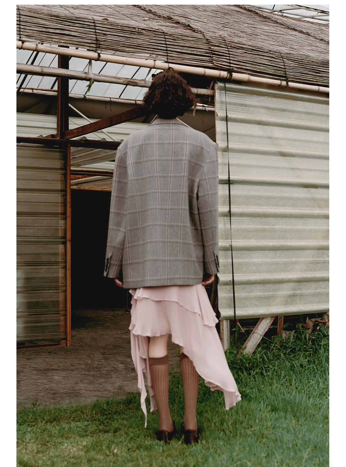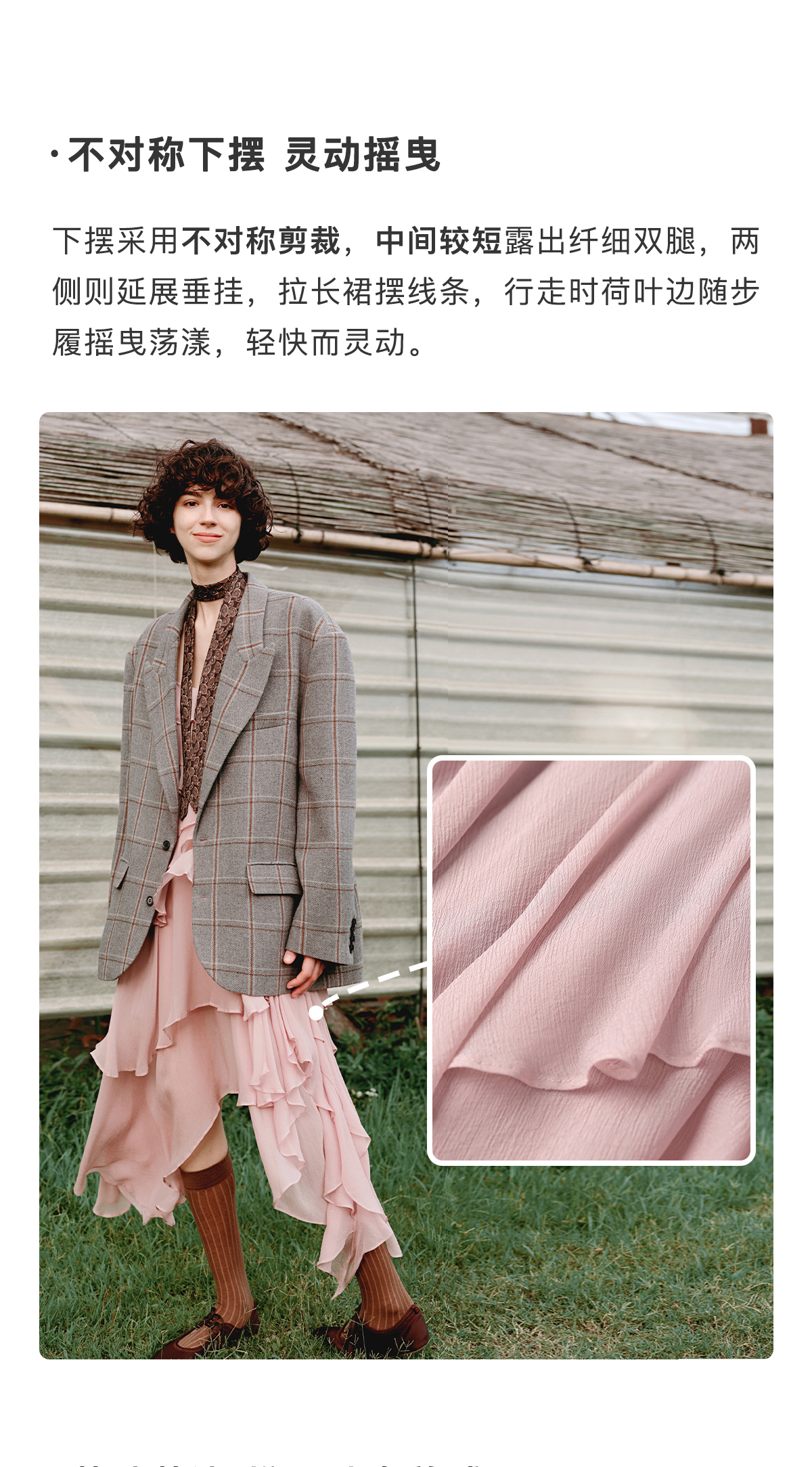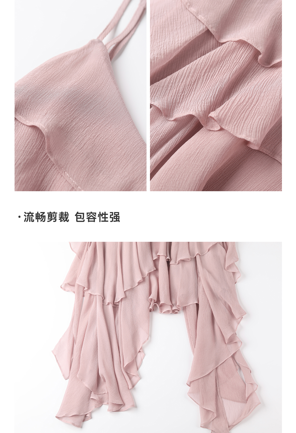 [Star Same Model] wana try Ruffles Layered Asymmetric Slip Skirt 25 New Grey Powder Dress