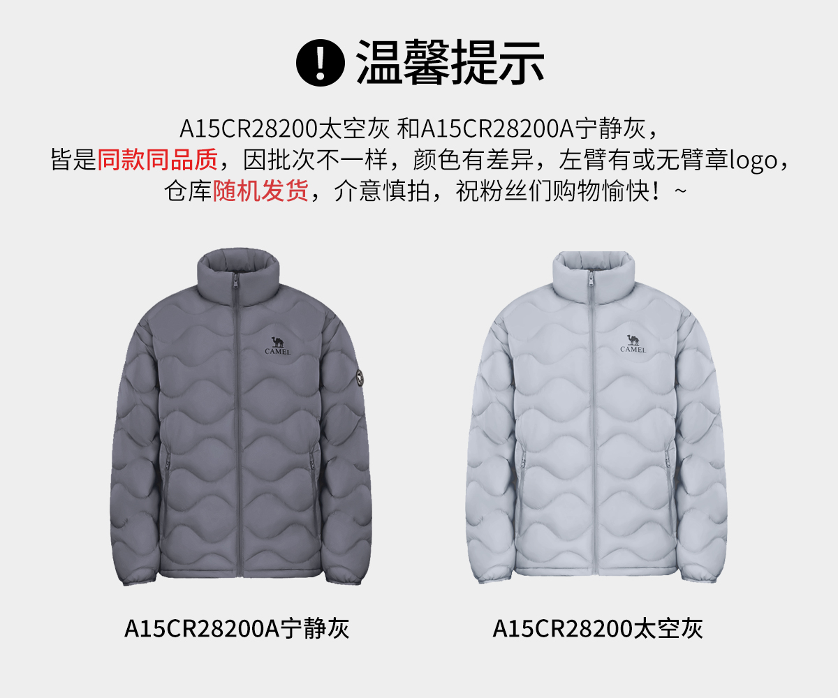 A13CATR157A8200/A13CATR157A8200A是组合套装,是由外壳A13CATR157A,羽绒内胆A15CR28200/A15CR28200A组合。其套装是无三点式链接,无拉链链接,仅组合套装穿搭。发货方式可能会分仓库或同一个仓库发货,骆驼粉丝们,请注意查收!介意者慎拍,祝粉丝们购物愉快!!!