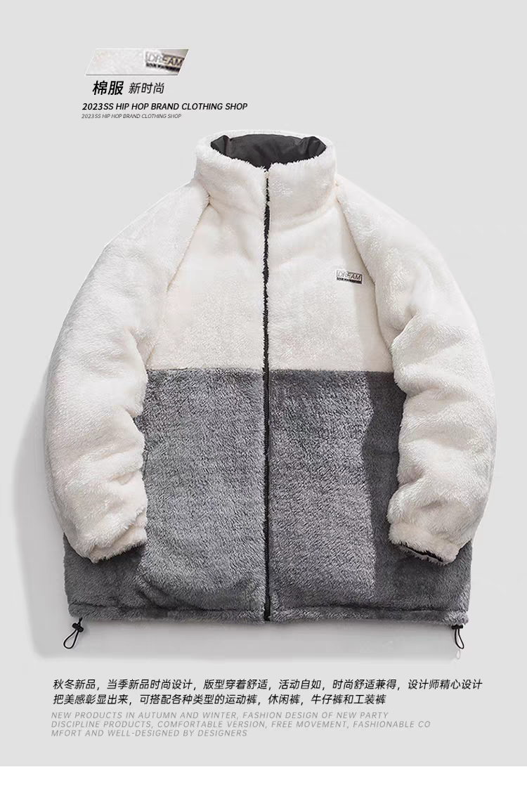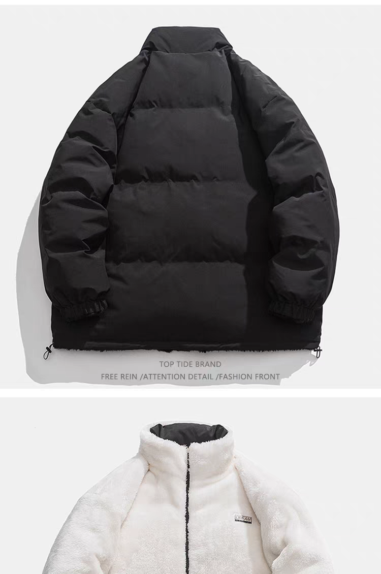 Nasan Reversible Cotton Jacket for Men and Women, Winter Thickened Warm Lamb Fleece Cotton Coat, Couple's Puffer Jacket