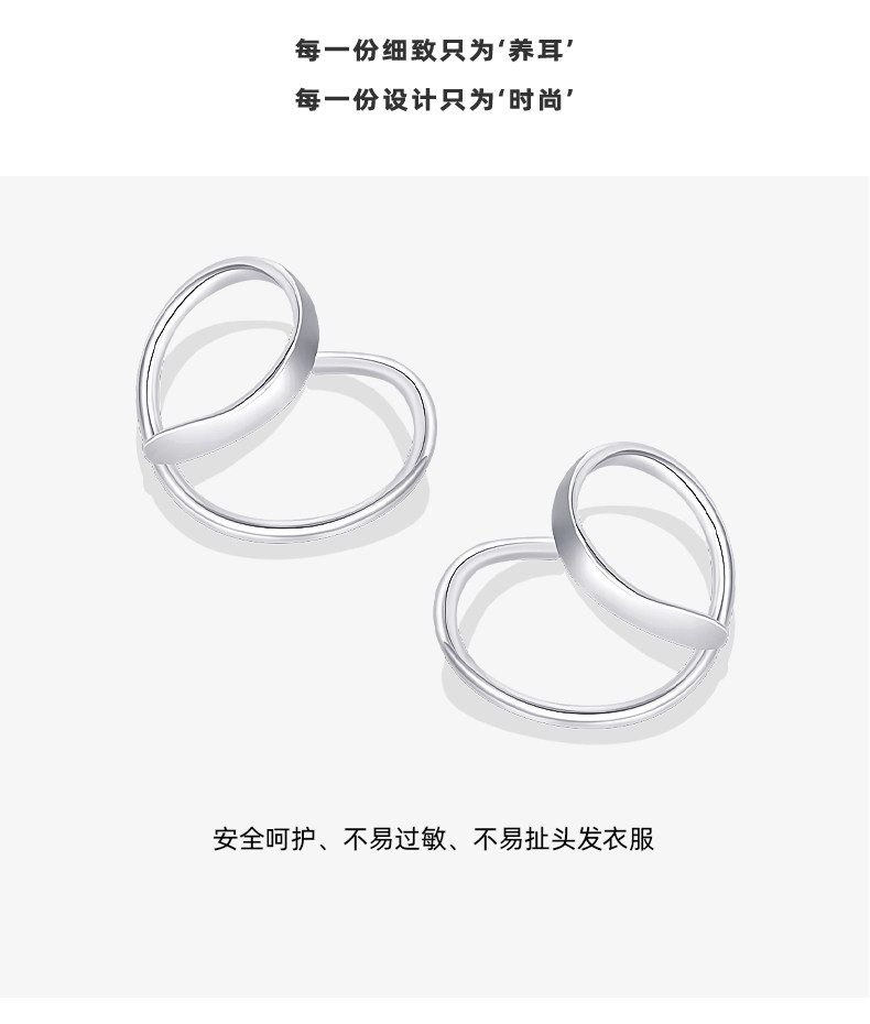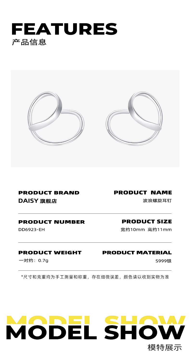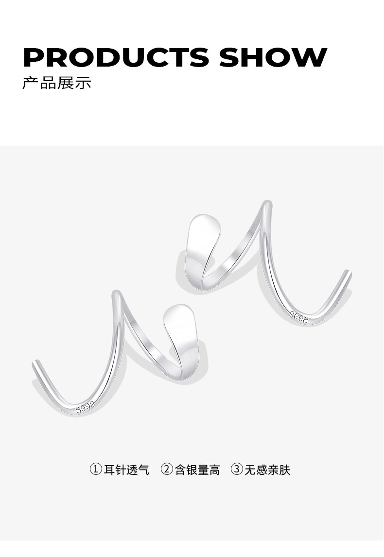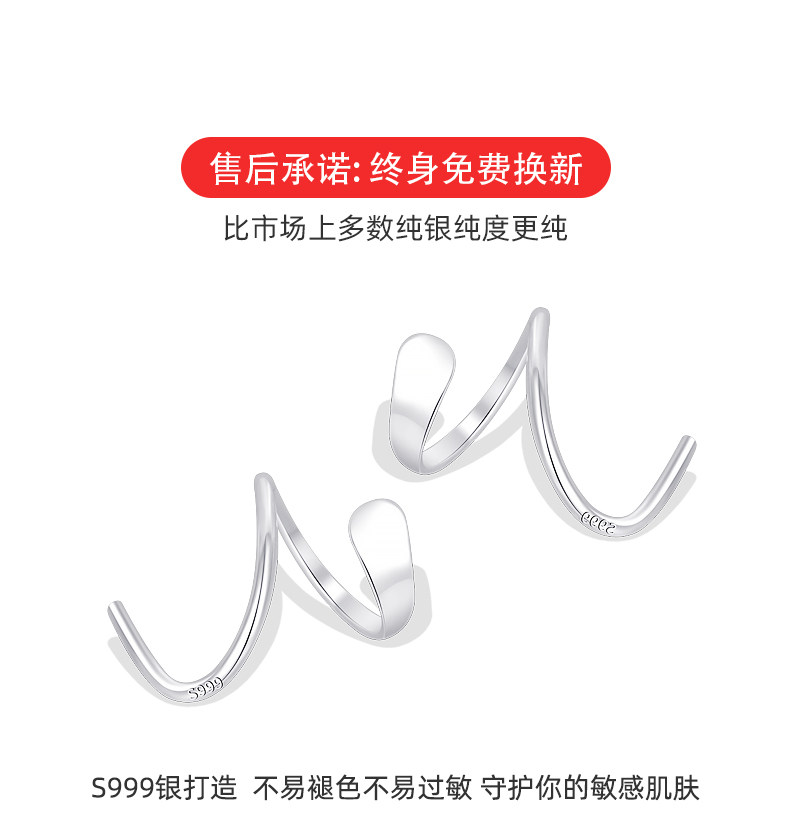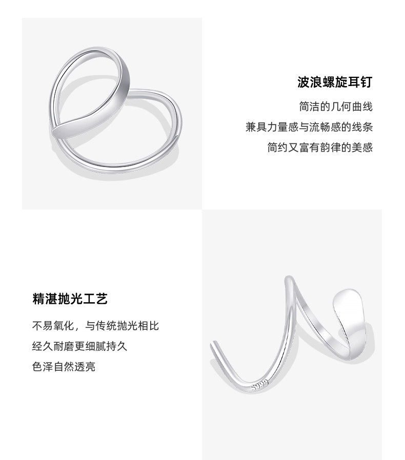 999 Pure Silver Wave Spiral Earrings for Women, Ear-Friendly, Niche Design, High-End Earrings, No Need to Remove When Sleeping, Pure Silver Jewelry