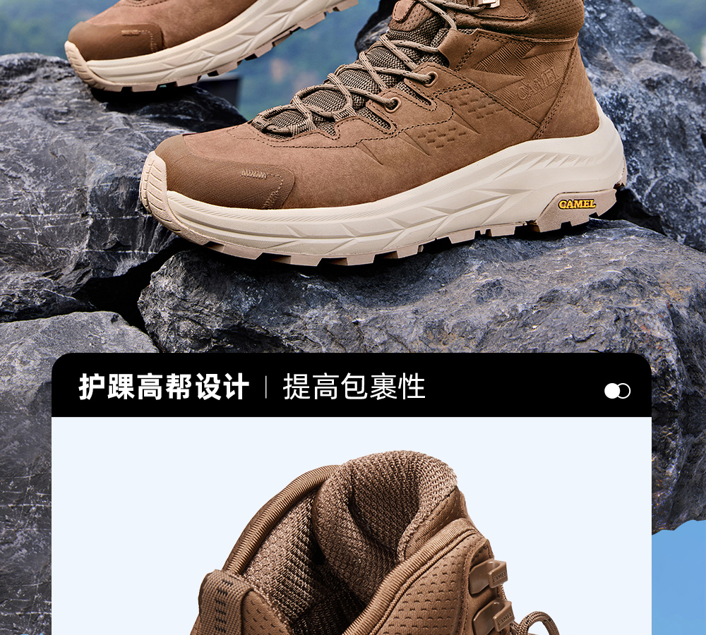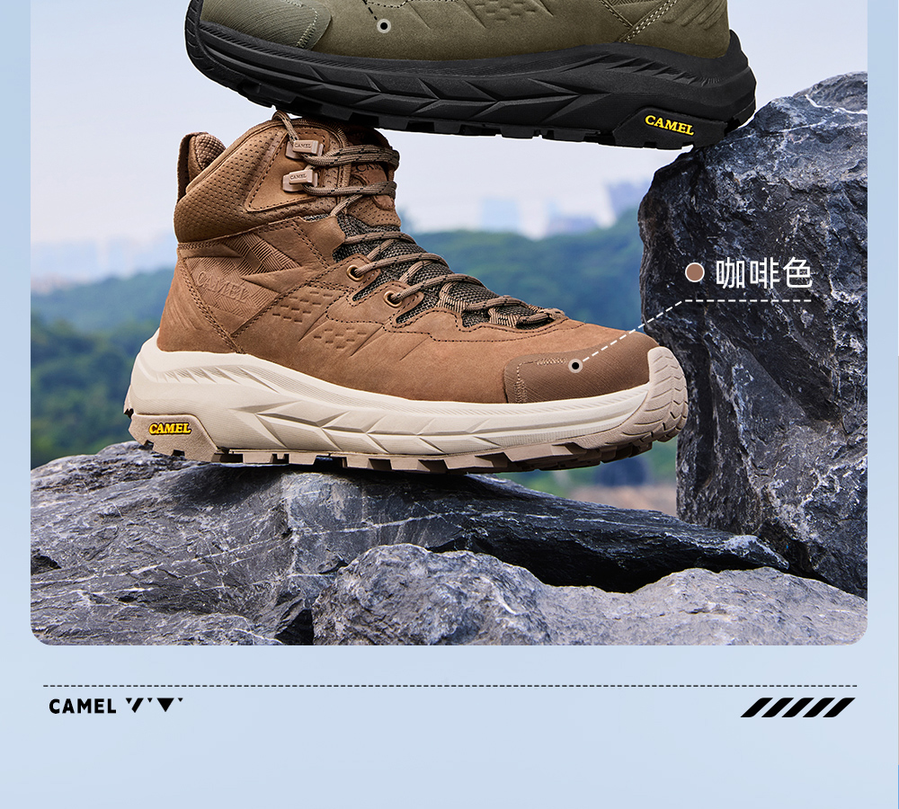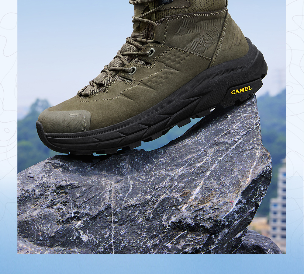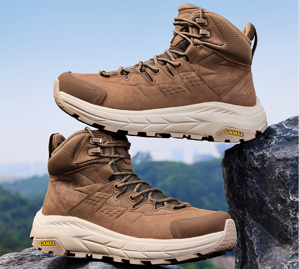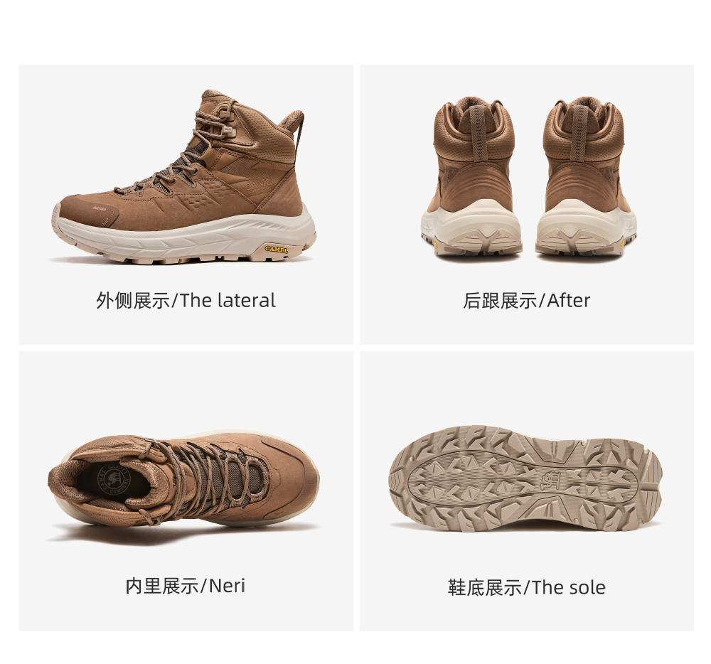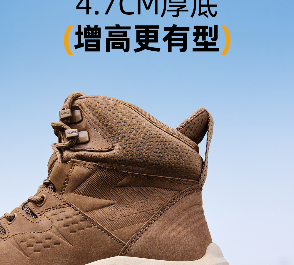 Camel Men's High-Top Shoes 2025 Autumn New Style Spliced Wear-Resistant Non-Slip Hiking Shoes Thick-Soled Height-Increasing Anti-Collision Trekking Shoes