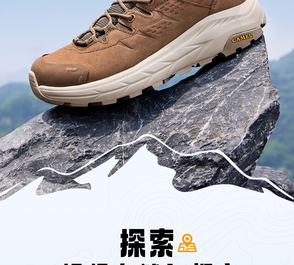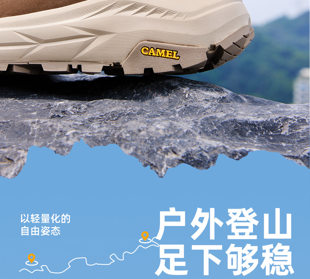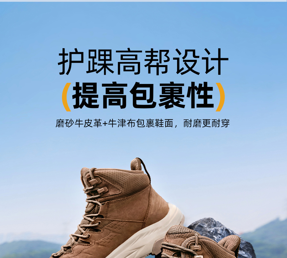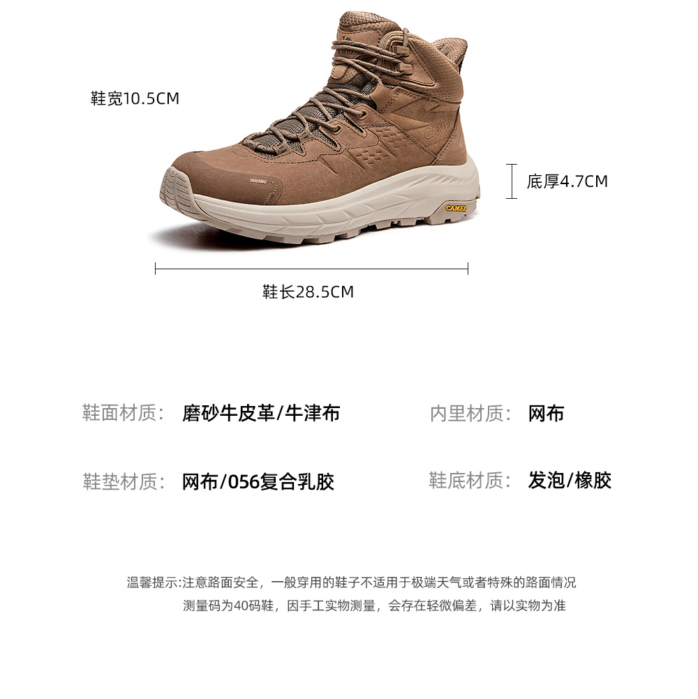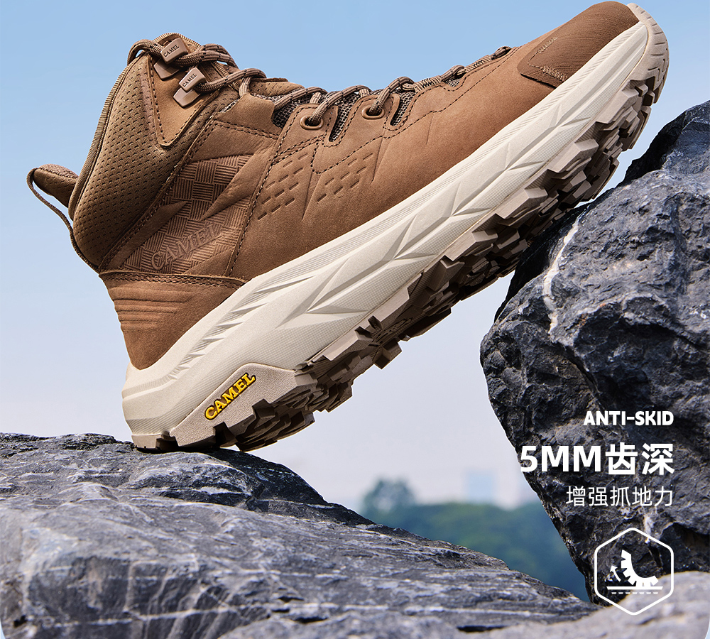 Camel Men's High-Top Shoes 2025 Autumn New Style Spliced Wear-Resistant Non-Slip Hiking Shoes Thick-Soled Height-Increasing Anti-Collision Trekking Shoes