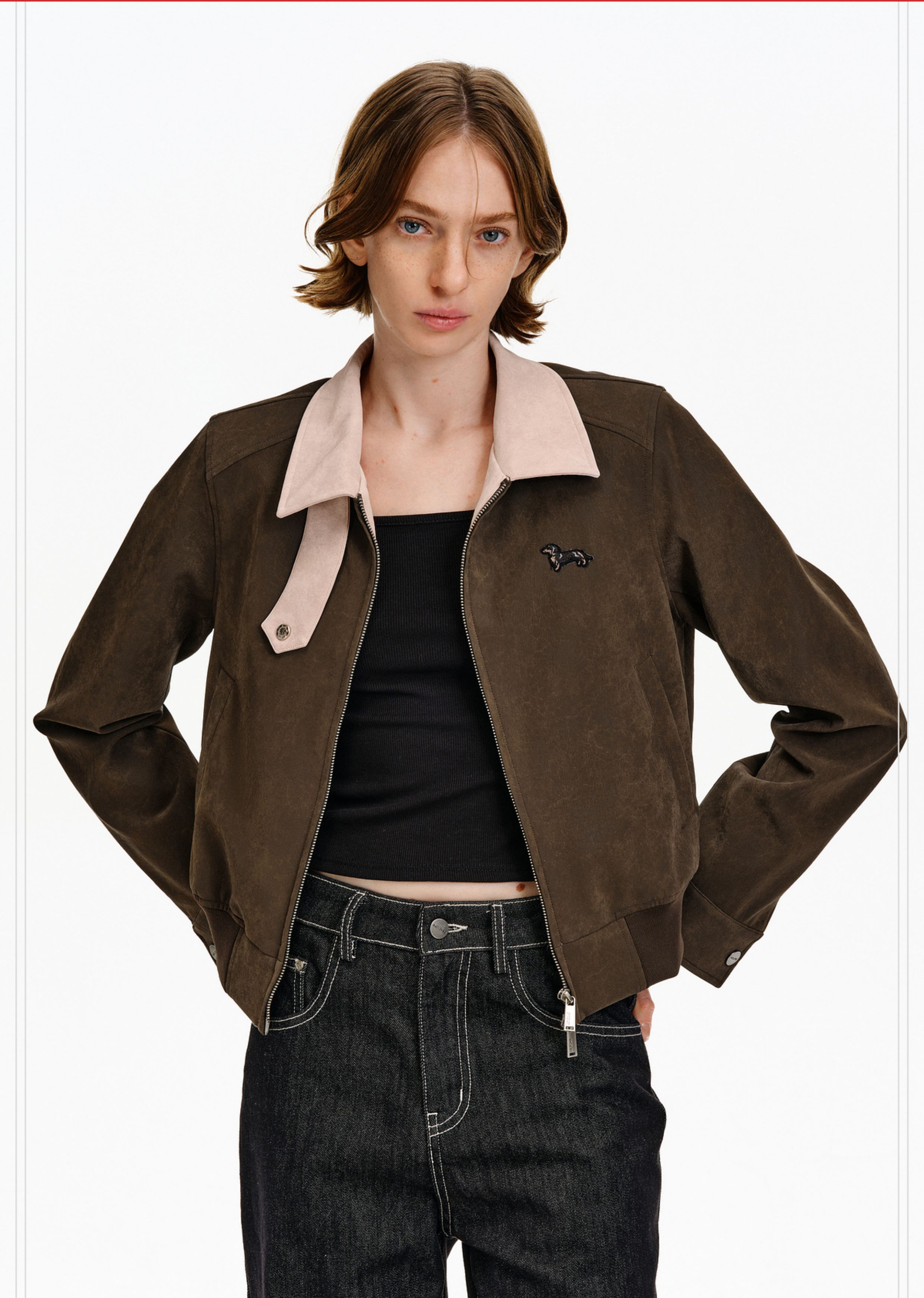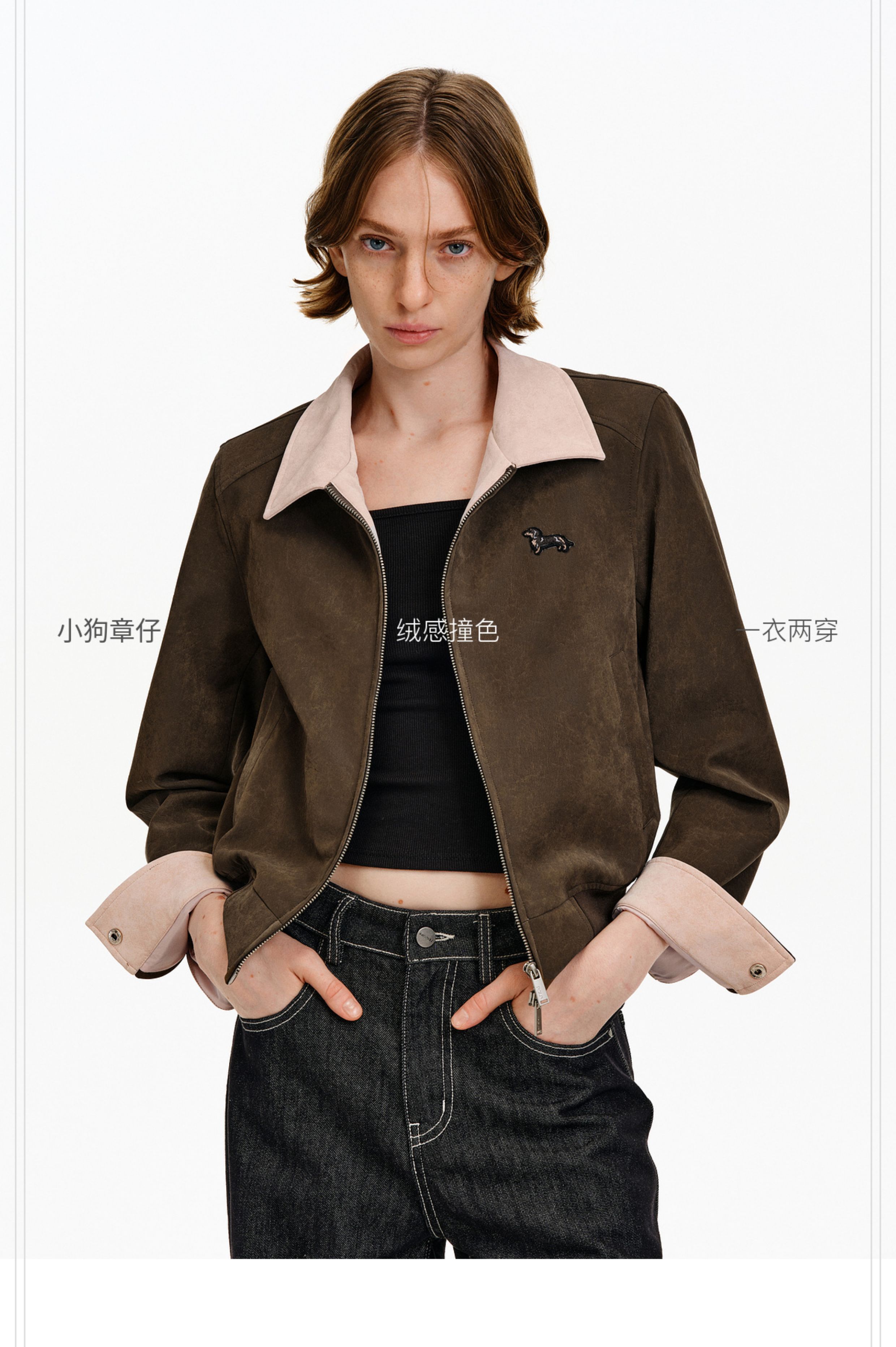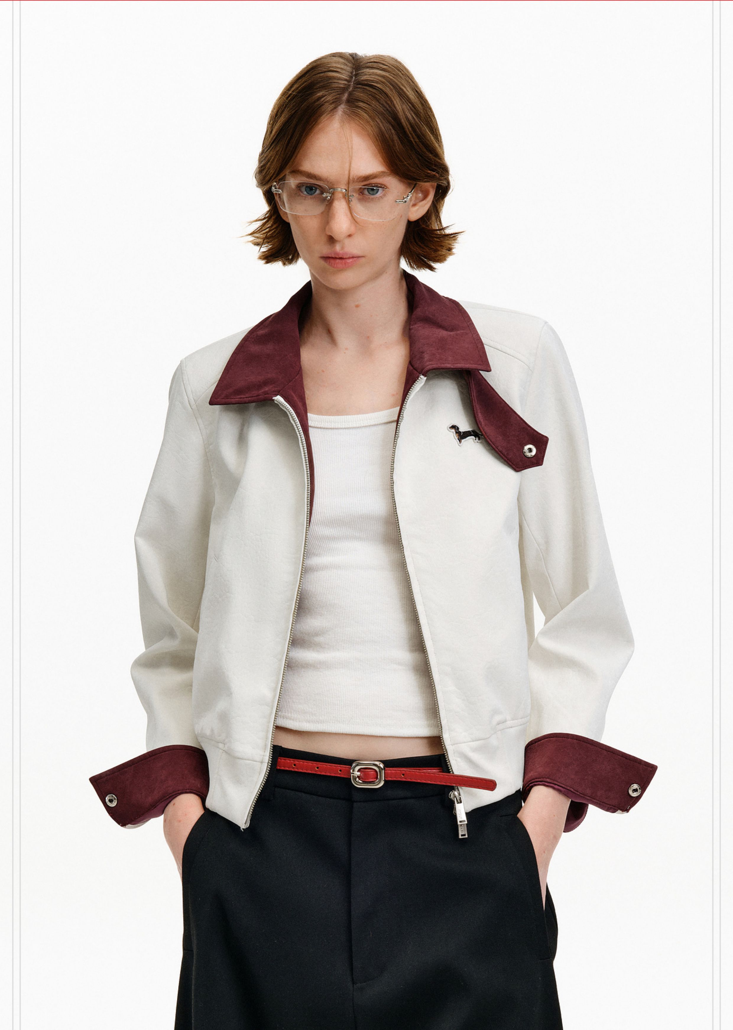 Pclp Color-Blocked Leather Jacket, New Spring and Autumn National Fashion Brand, Patchwork Design, Short Zipper Jacket for Women