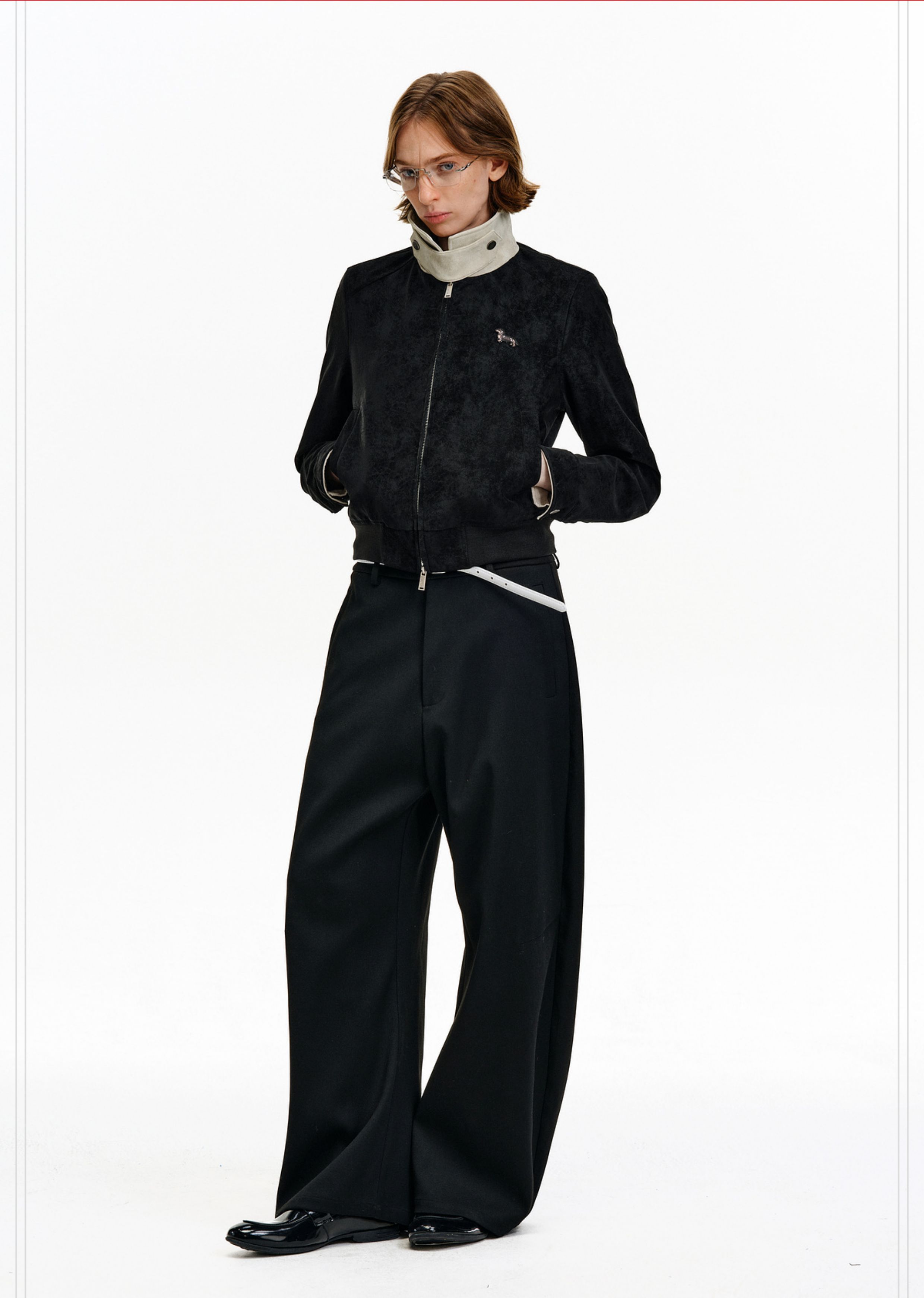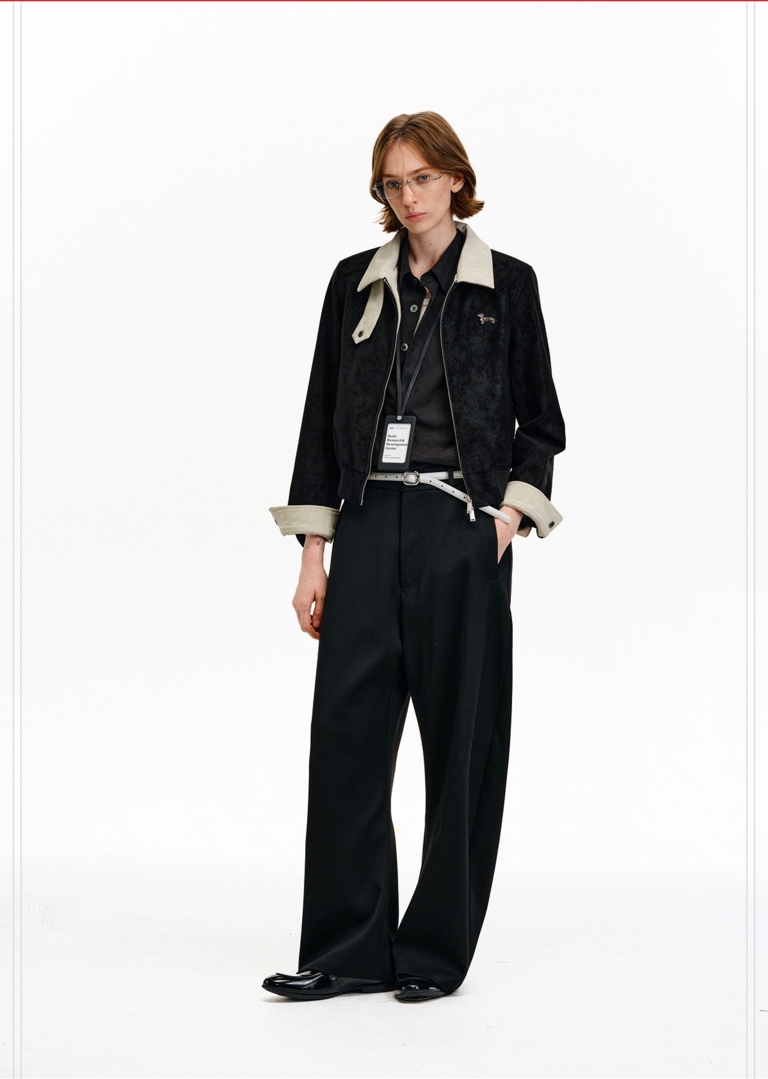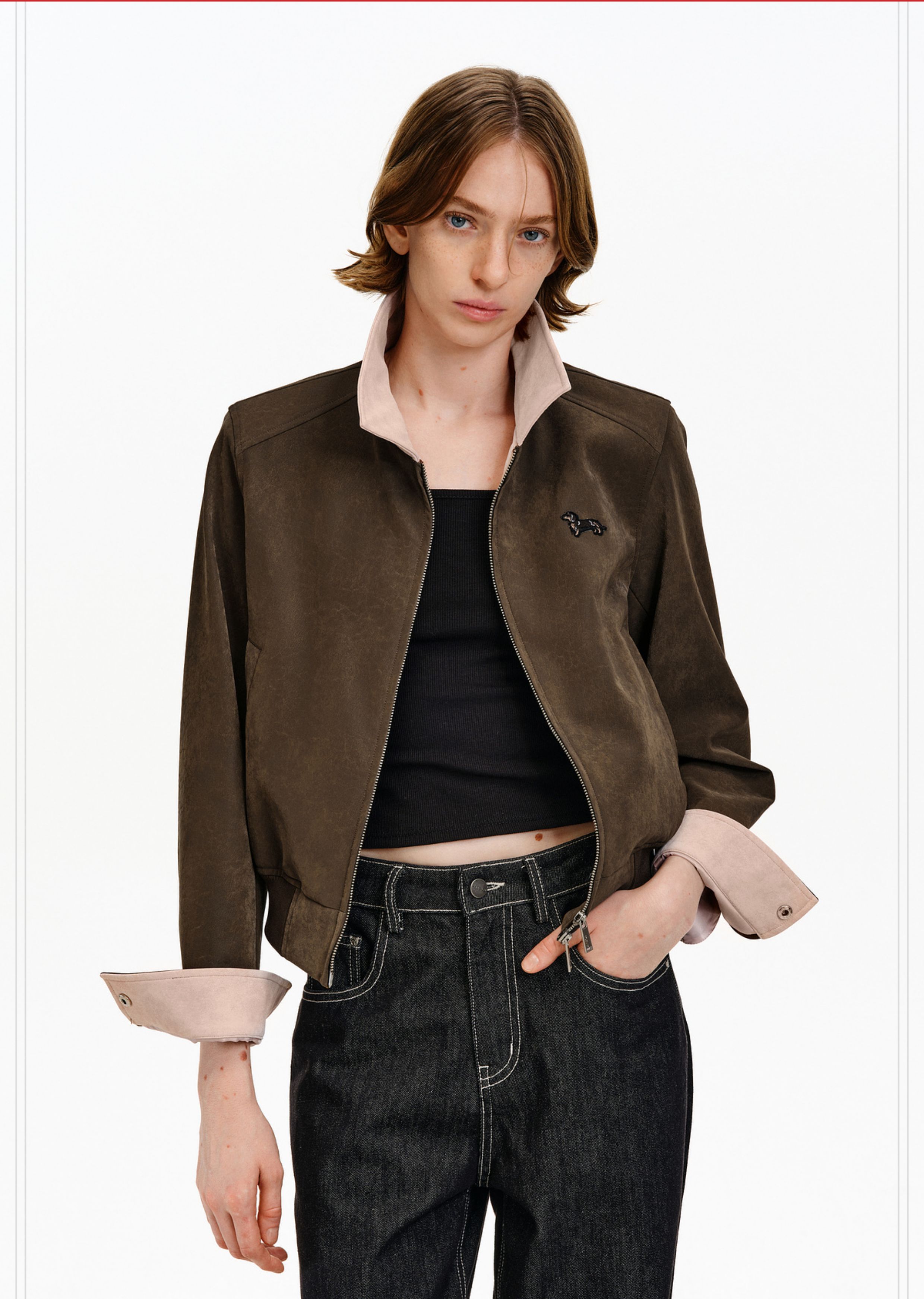 Pclp Color-Blocked Leather Jacket, New Spring and Autumn National Fashion Brand, Patchwork Design, Short Zipper Jacket for Women
