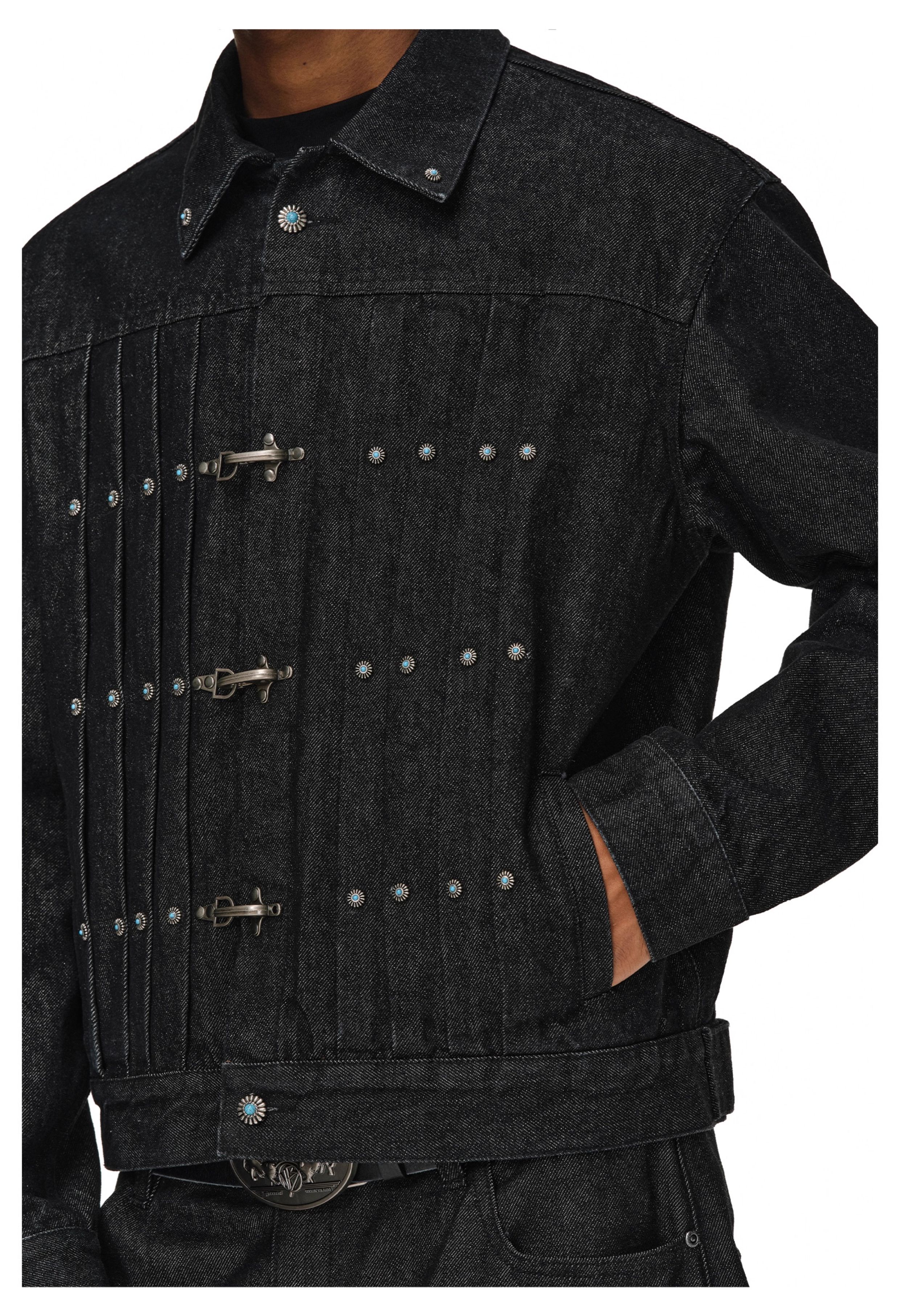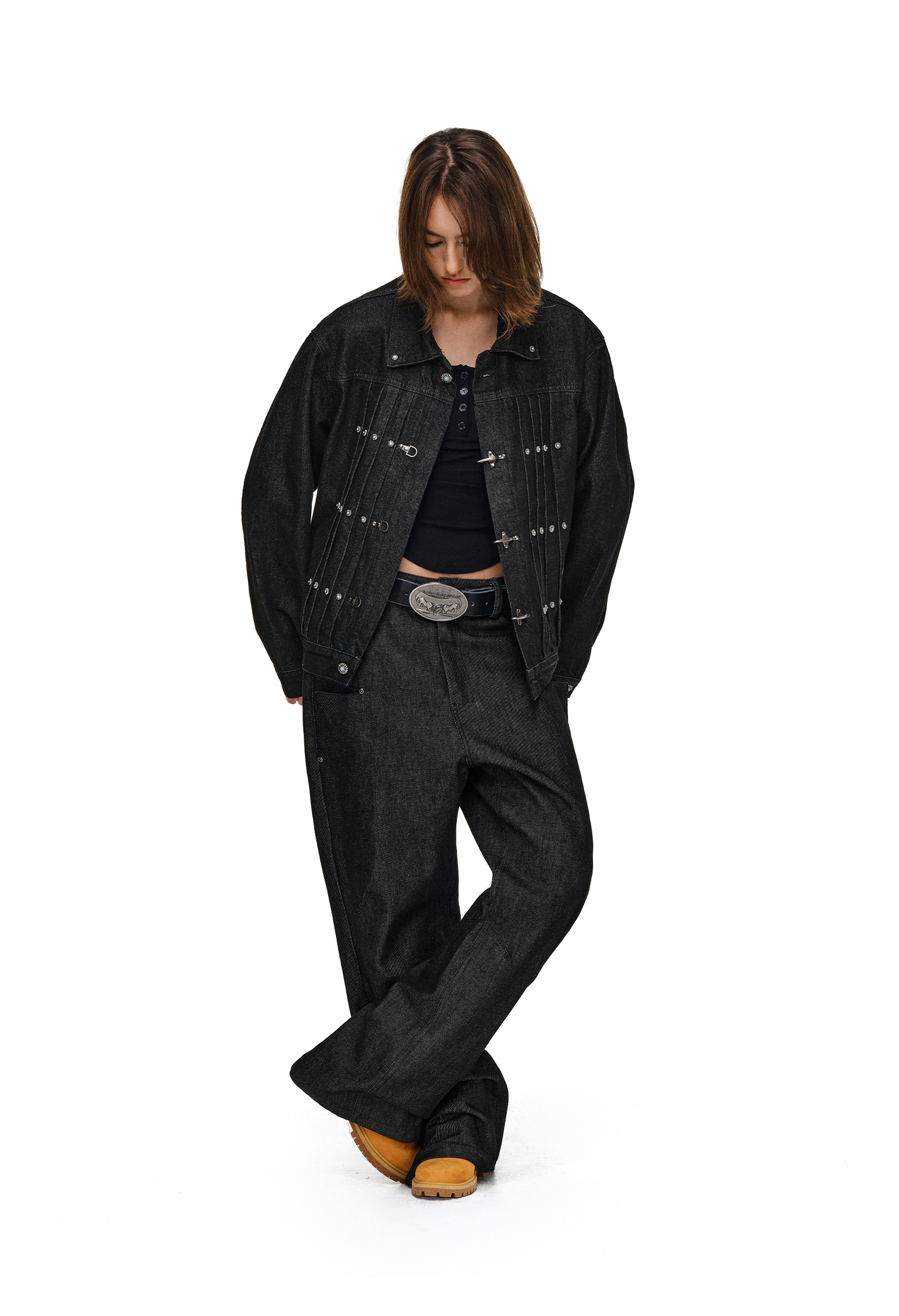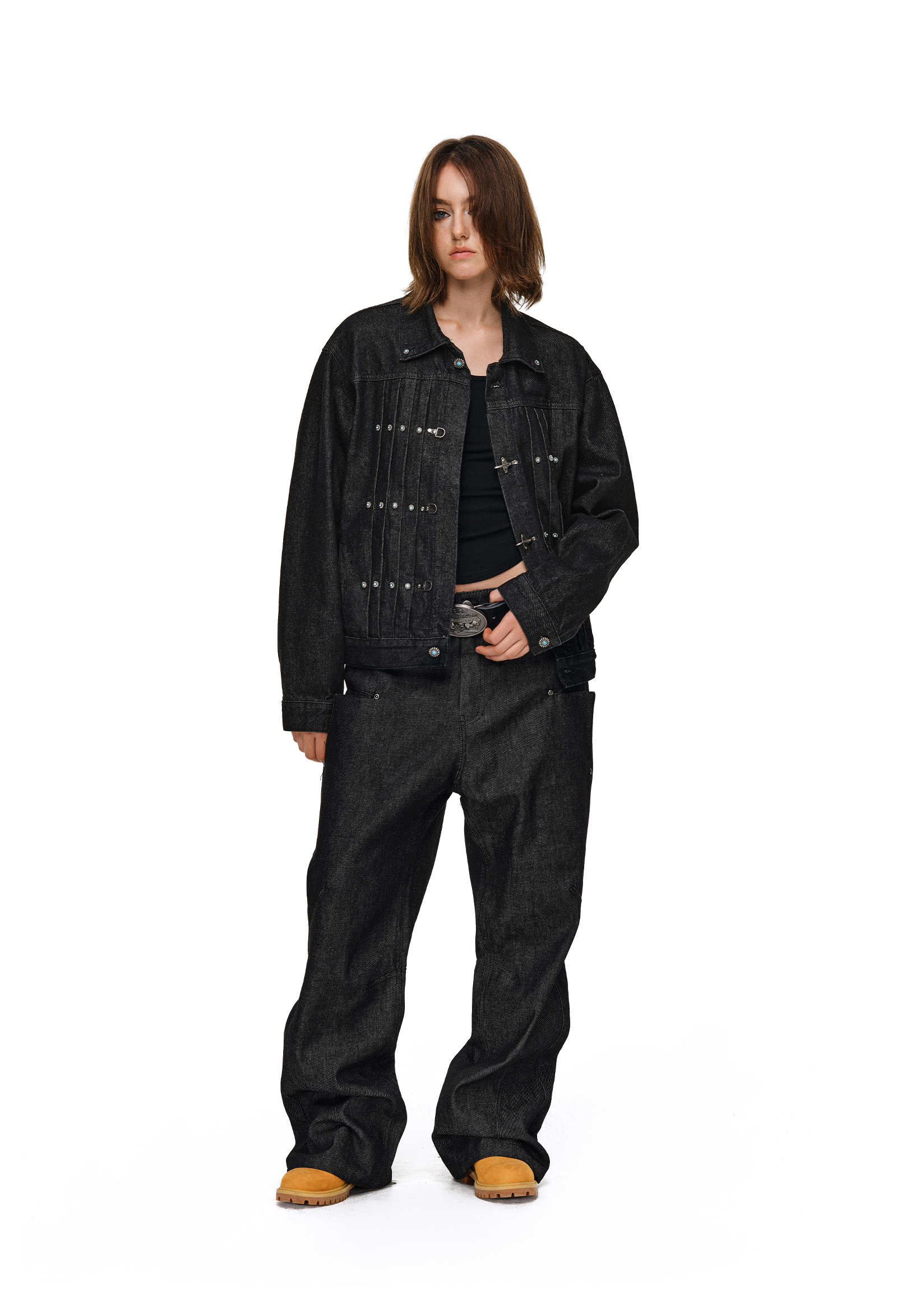 Antidote【Wang Yitai's Style】American-Style Airplane Buckle Workwear Raw Denim Jacket Autumn Top Denim Coat