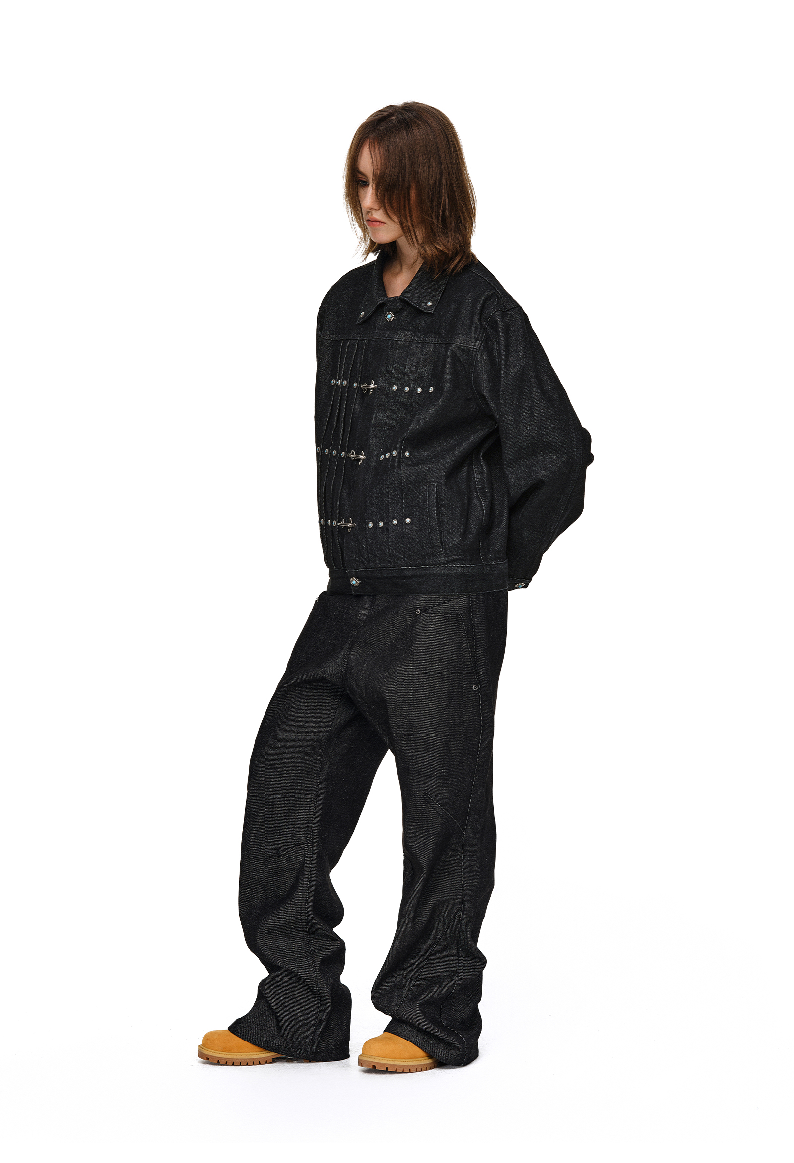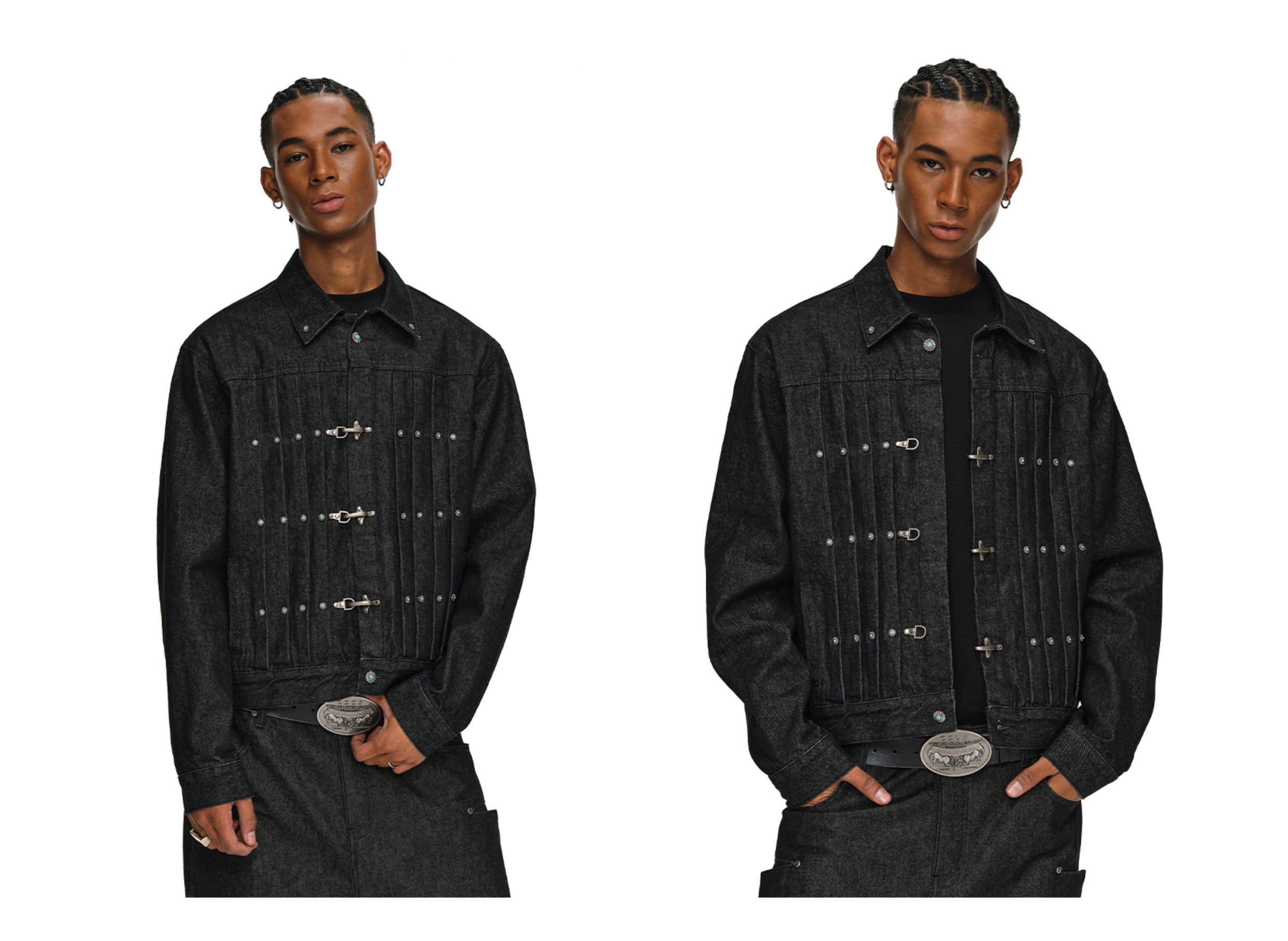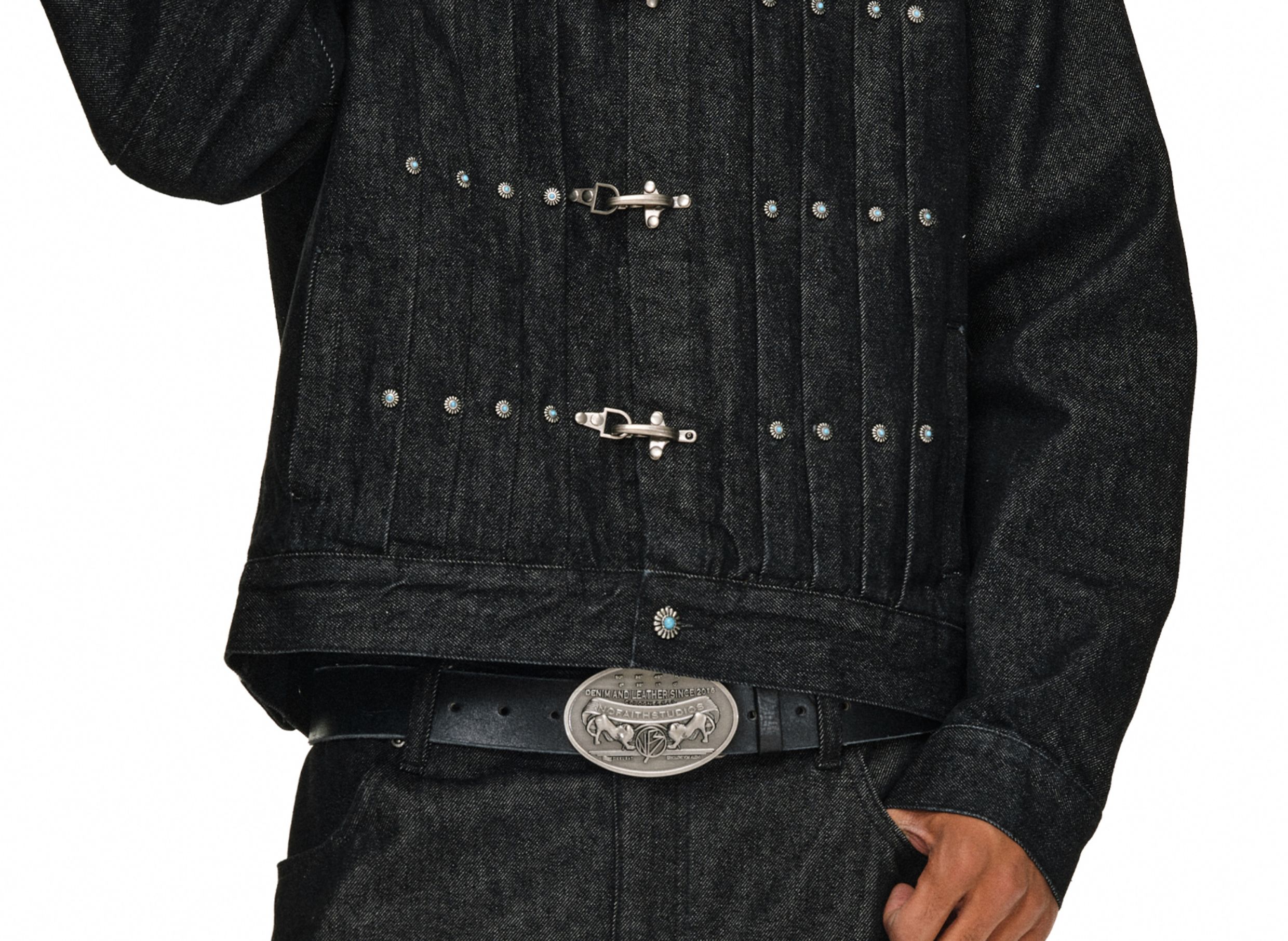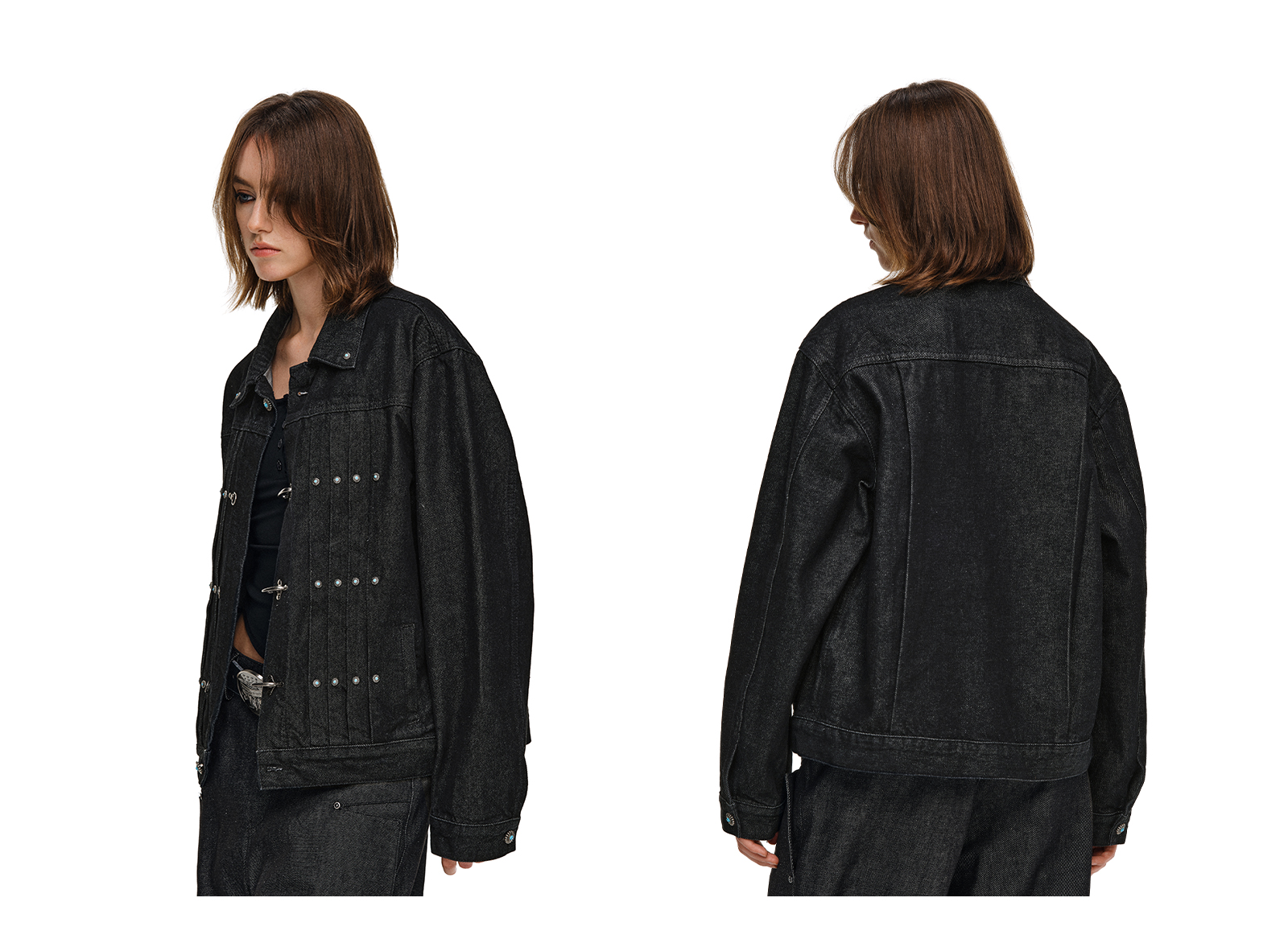 Antidote【Wang Yitai's Style】American-Style Airplane Buckle Workwear Raw Denim Jacket Autumn Top Denim Coat