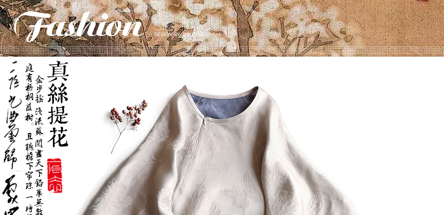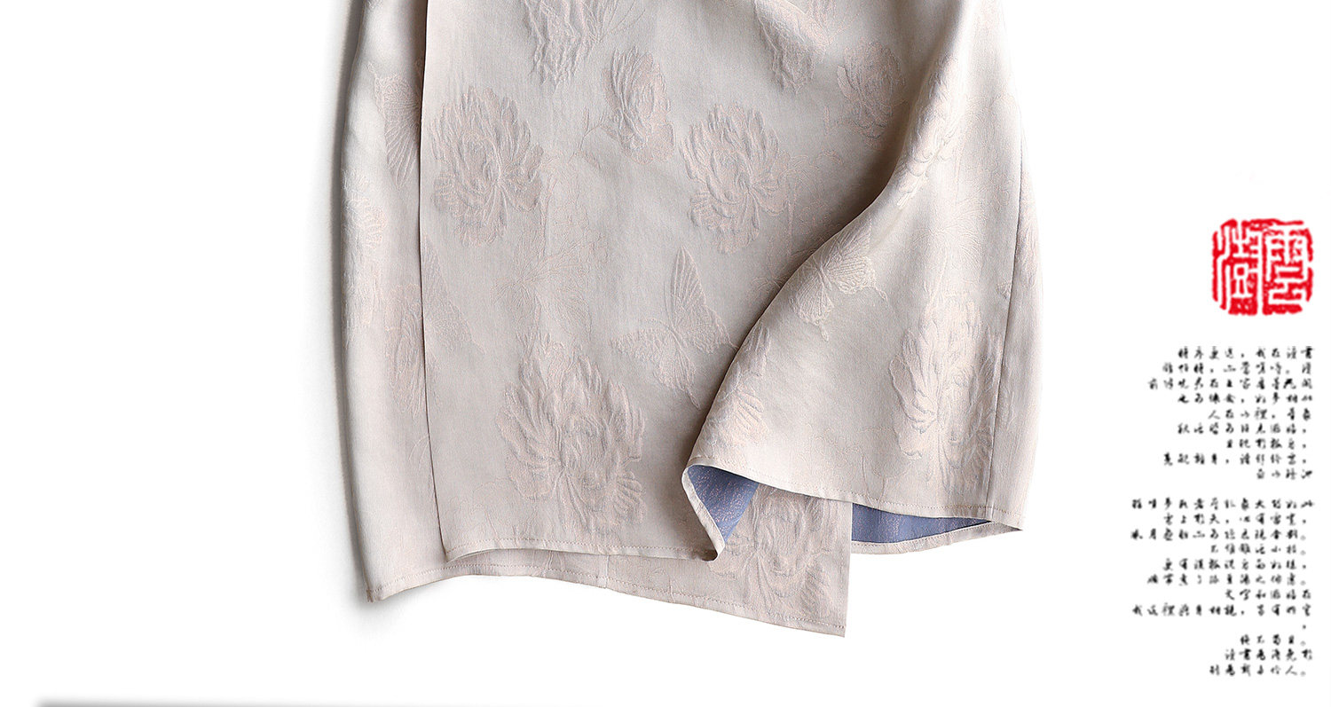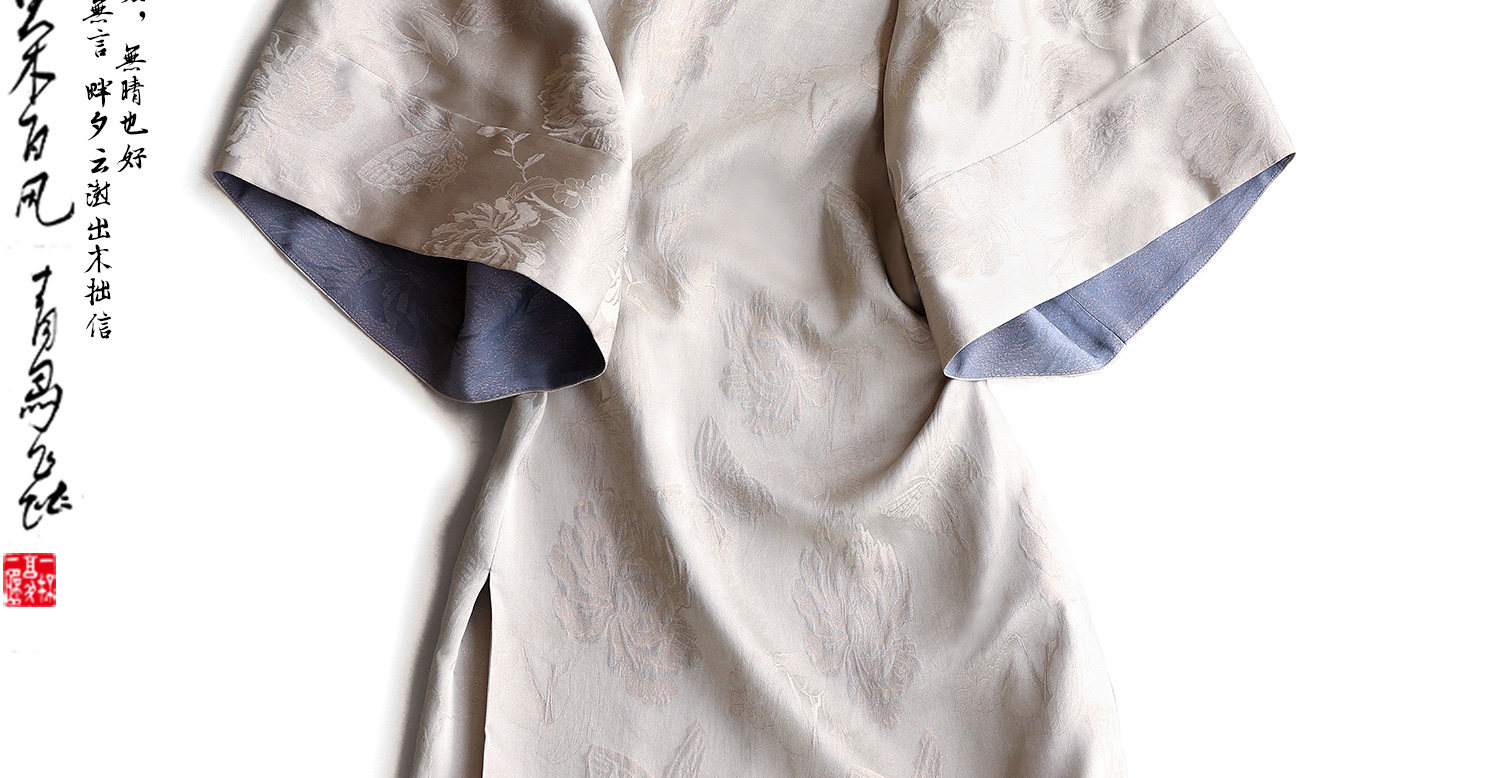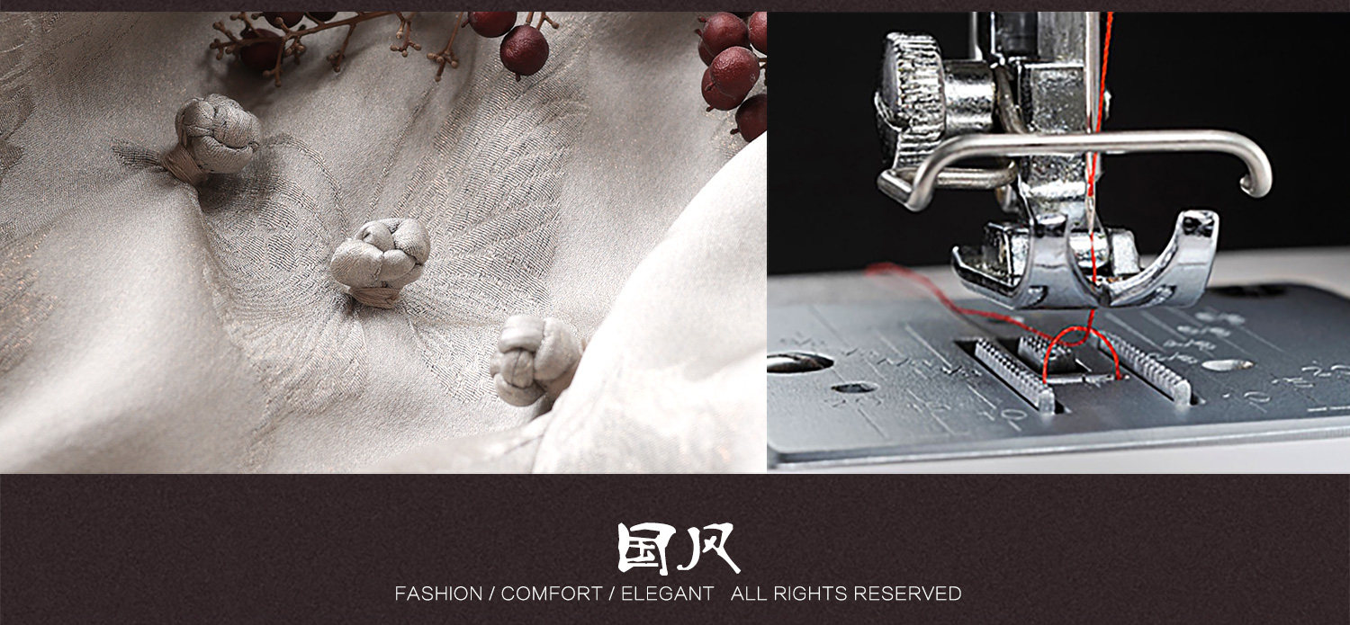 Yunshu Original Silk Jacquard New Chinese Style Fashion Casual Loose Button-Up Waist-Cinching Round-Neck Long Dress for Summer