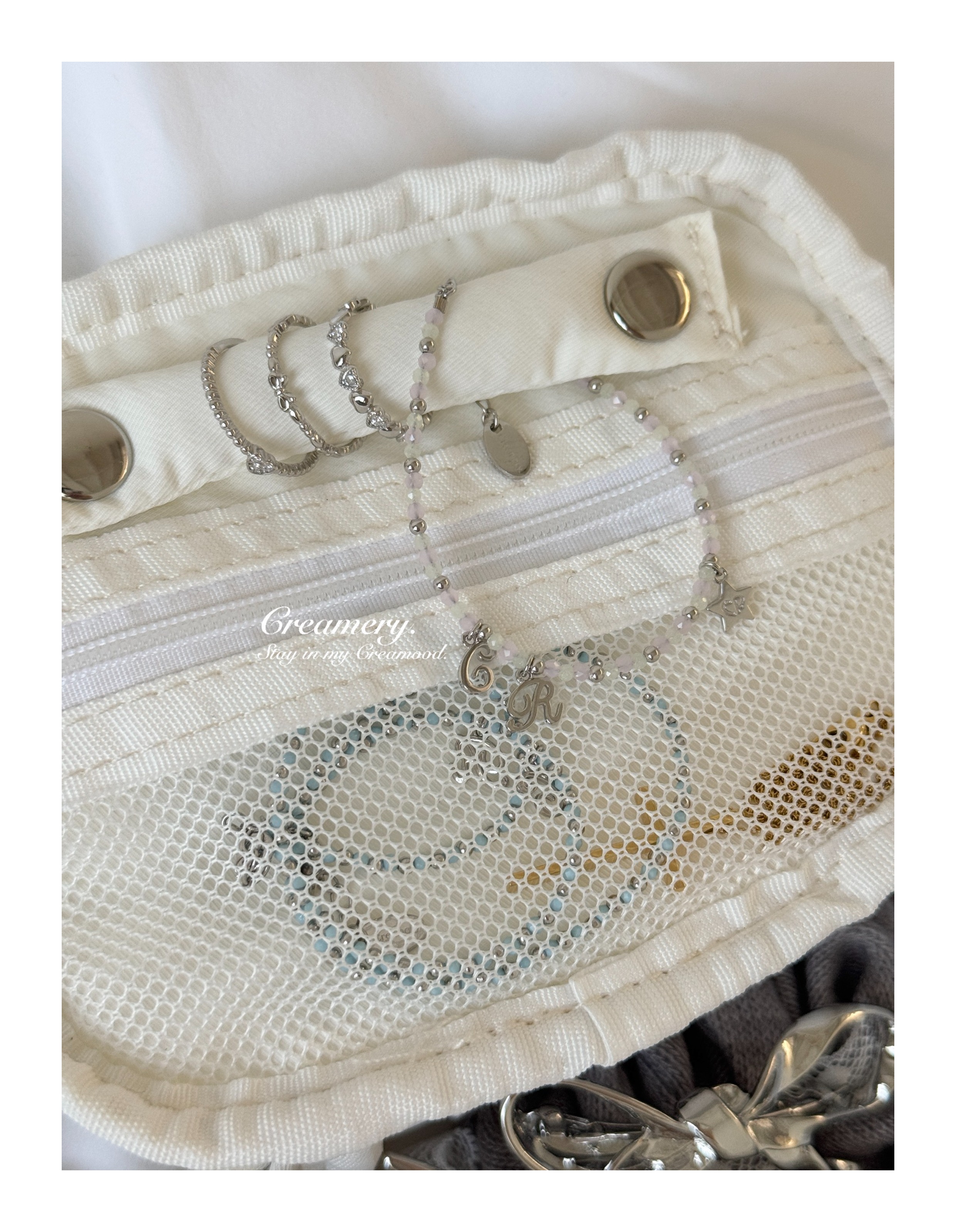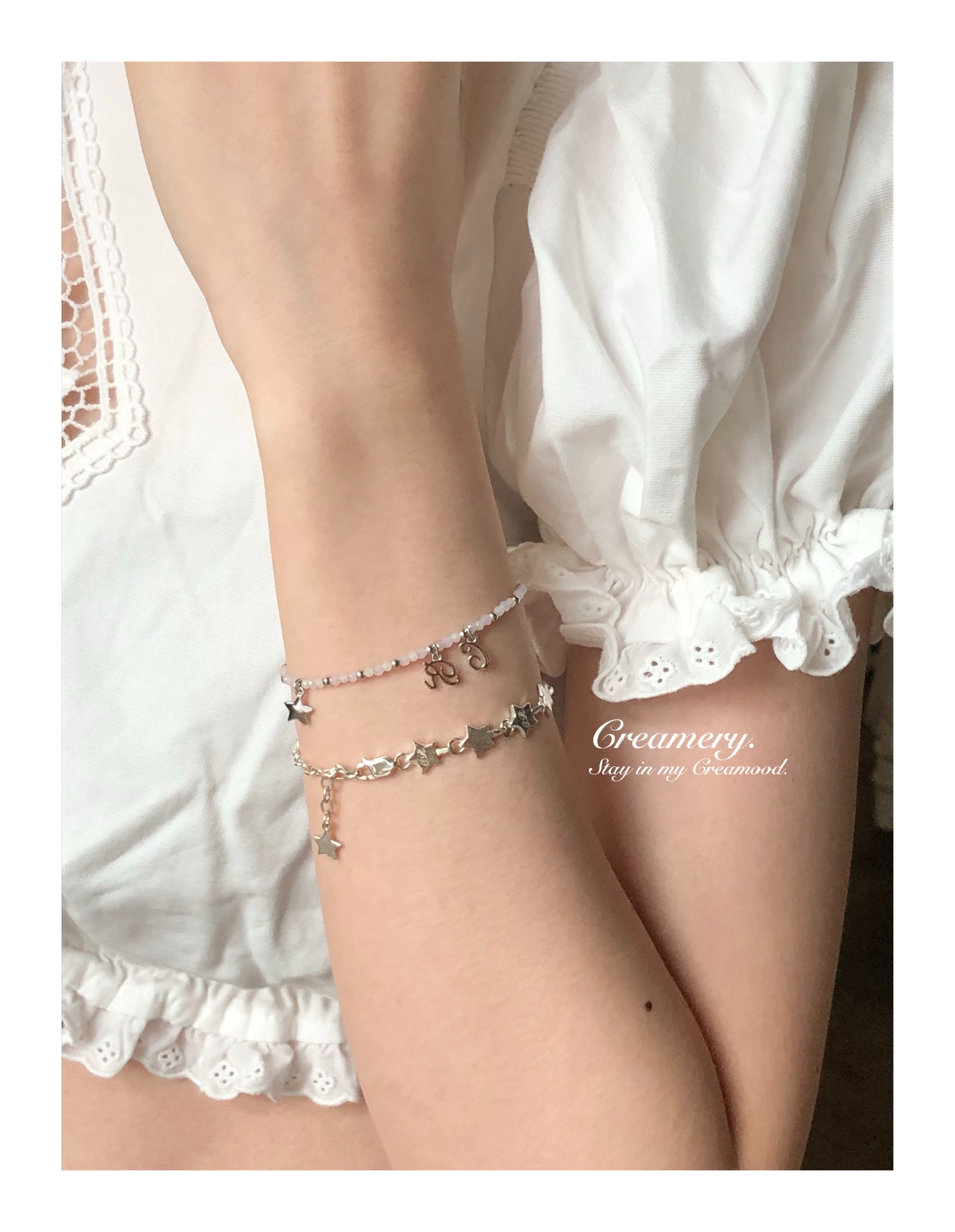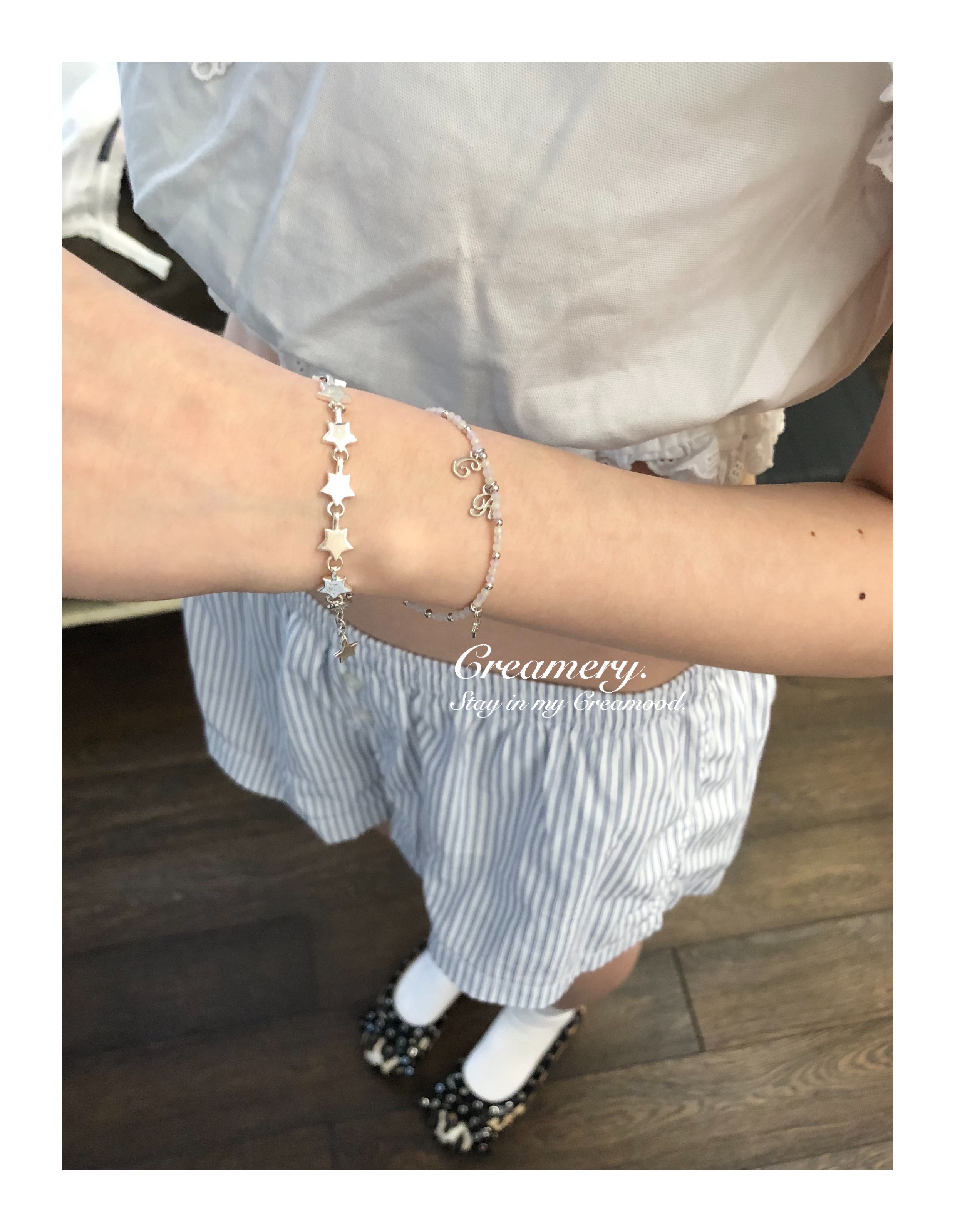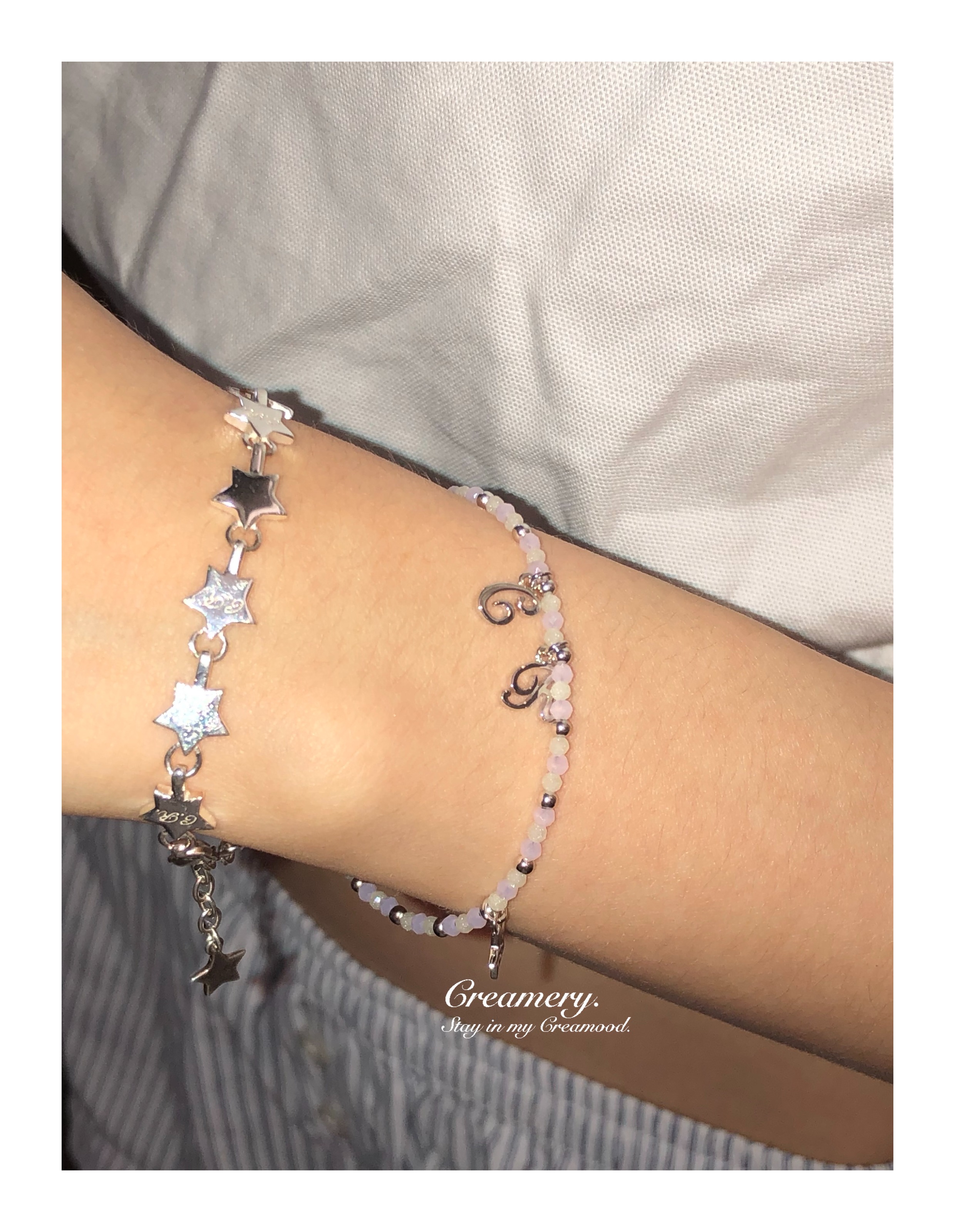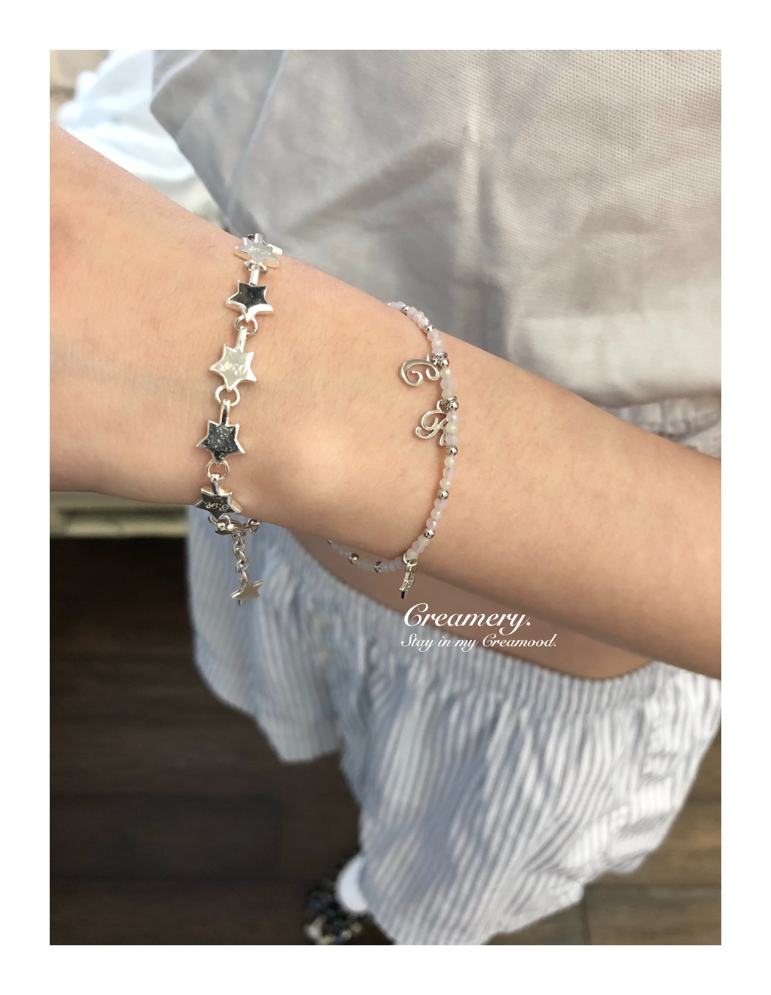 Creamery Original|New Color! Pink and Yellow Beaded Cr Letter Pendant Beaded Sterling Silver Bracelet Necklace in the Same Color