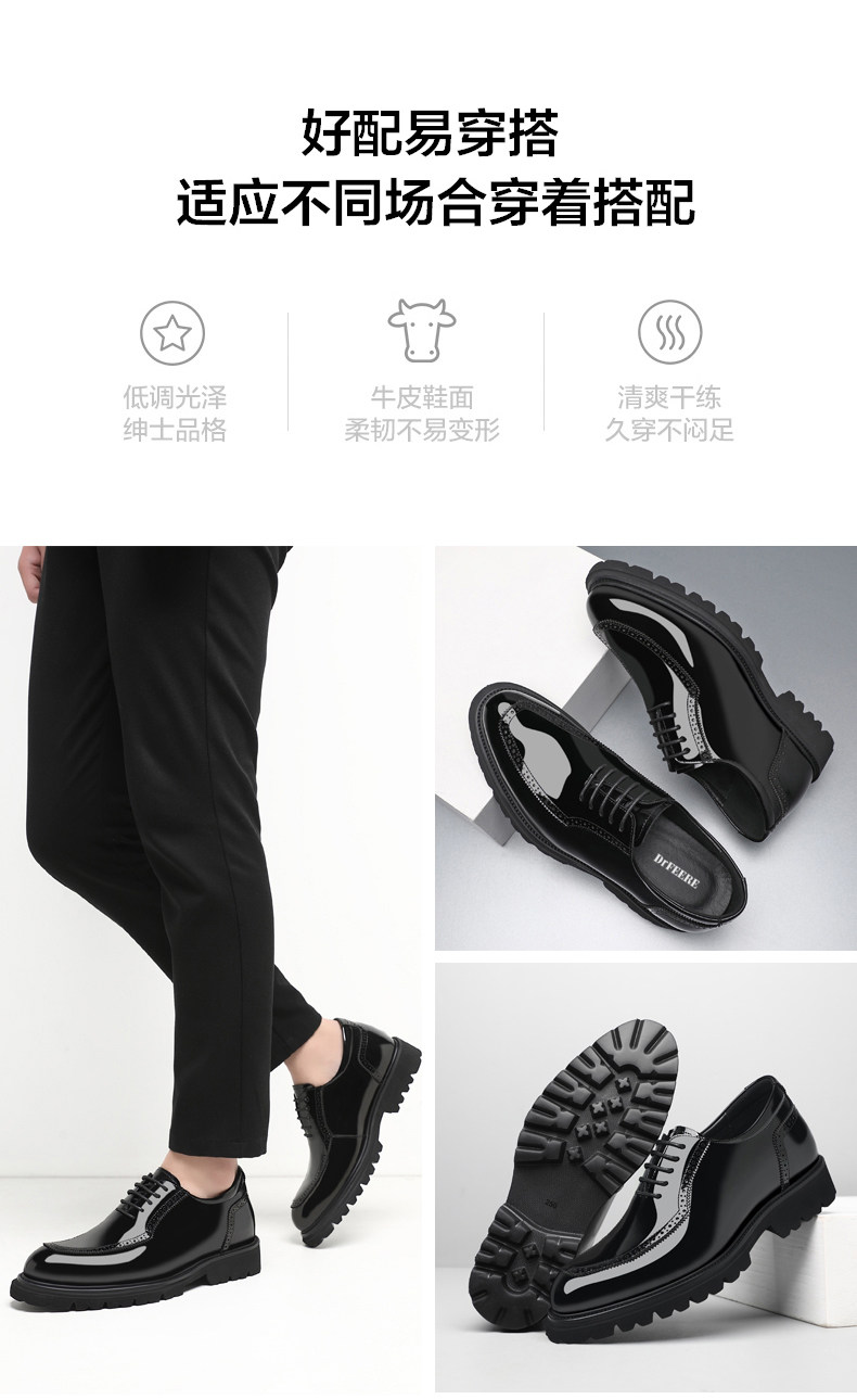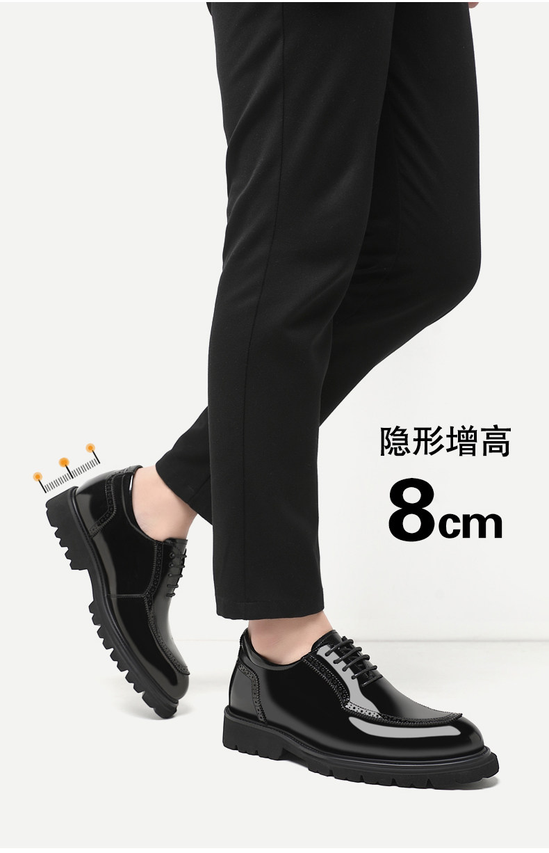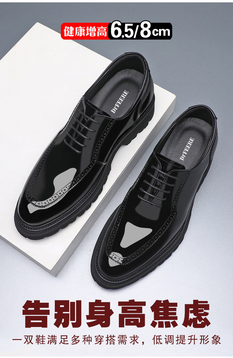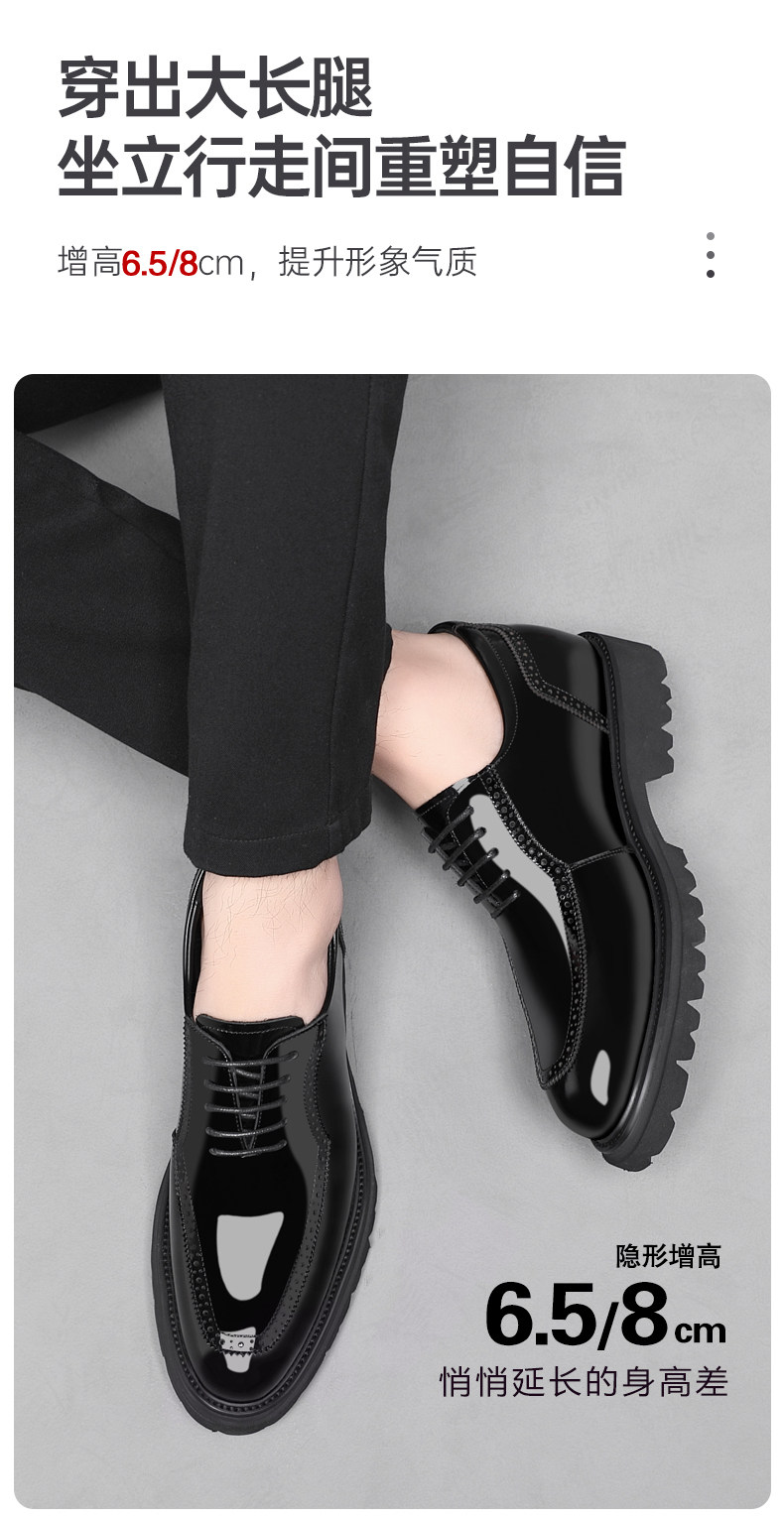 Dai Freni Height-Increasing Leather Shoes for Men, 8cm Business Formal Height-Increasing Shoes, Brogue Top-Layer Cowhide Groomsmen Wedding Shoes for Men