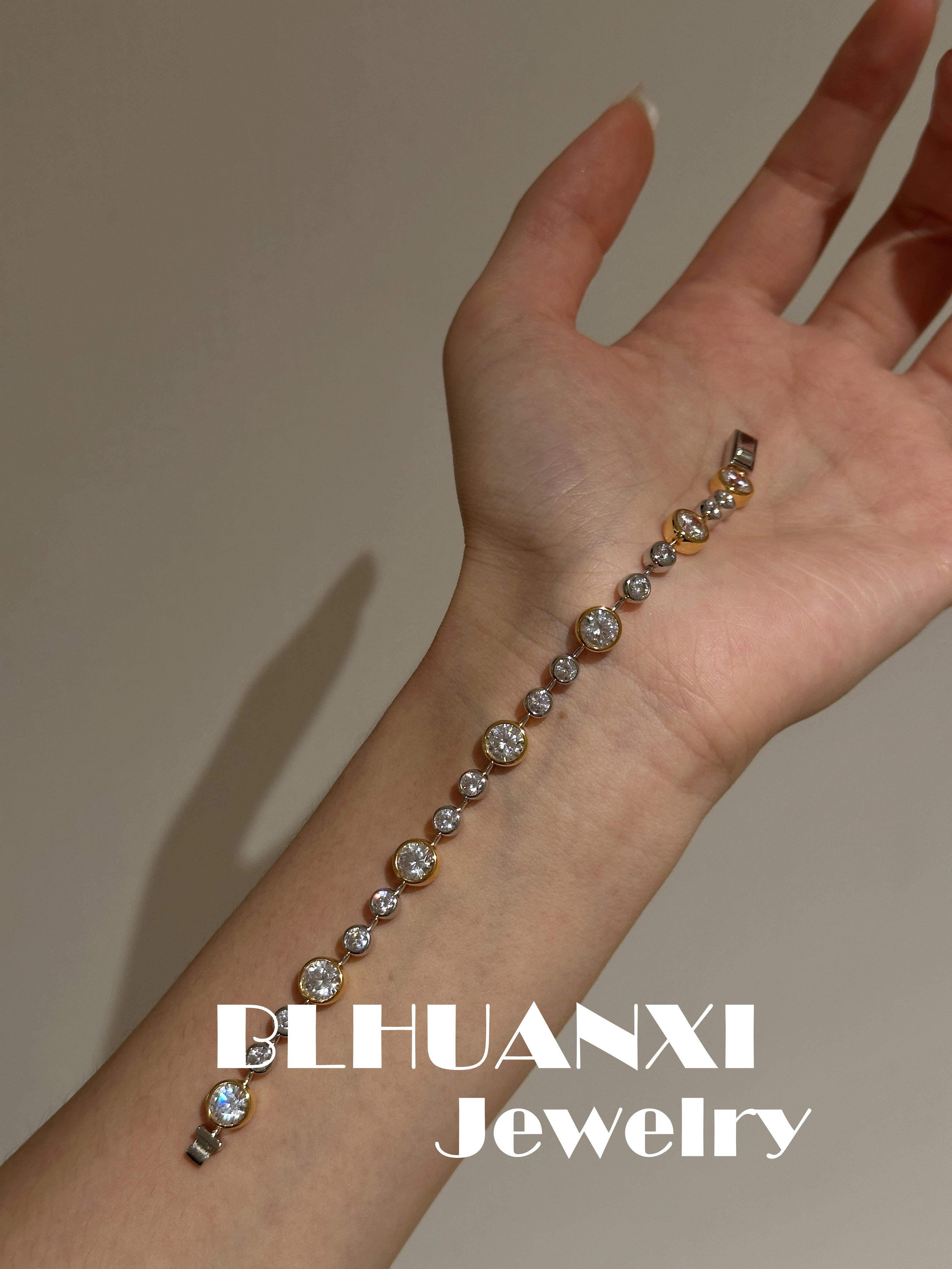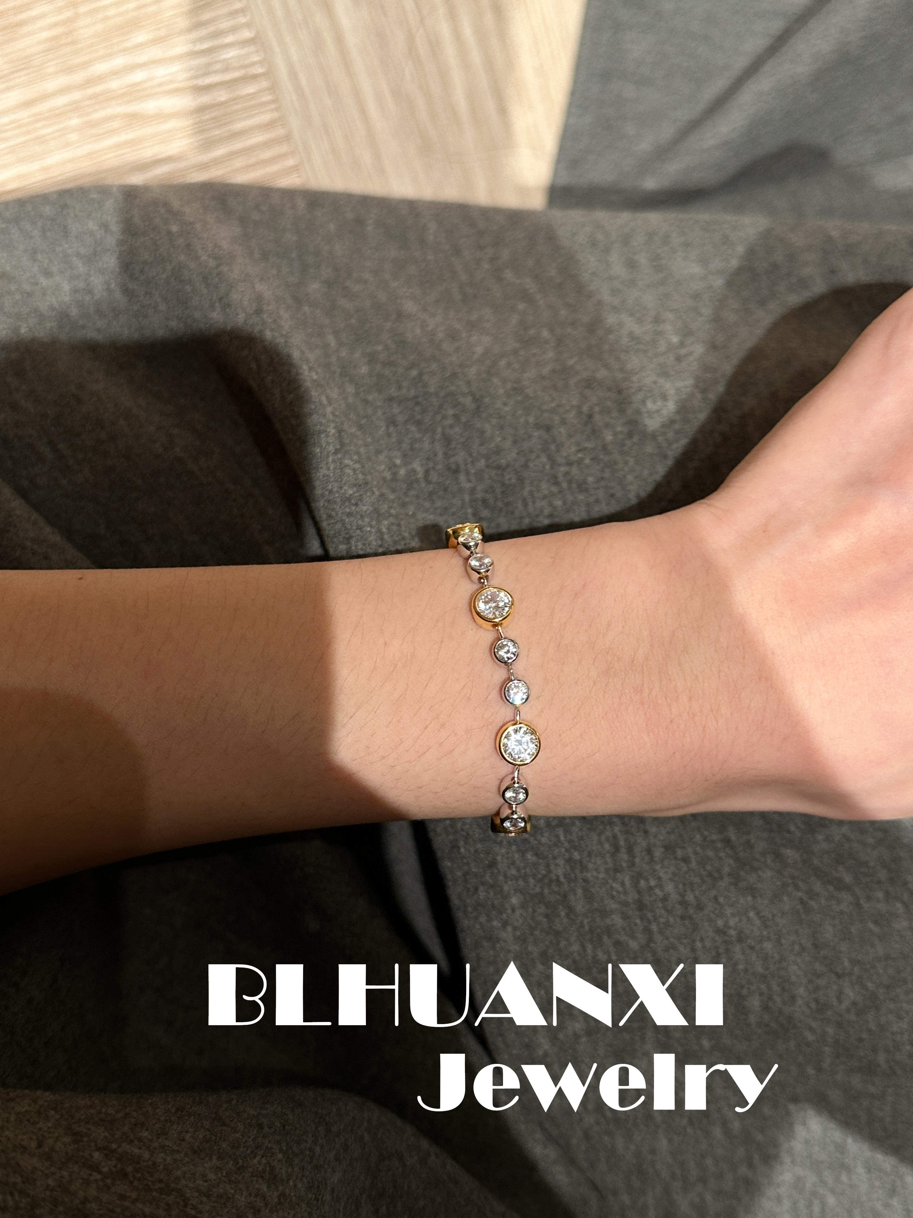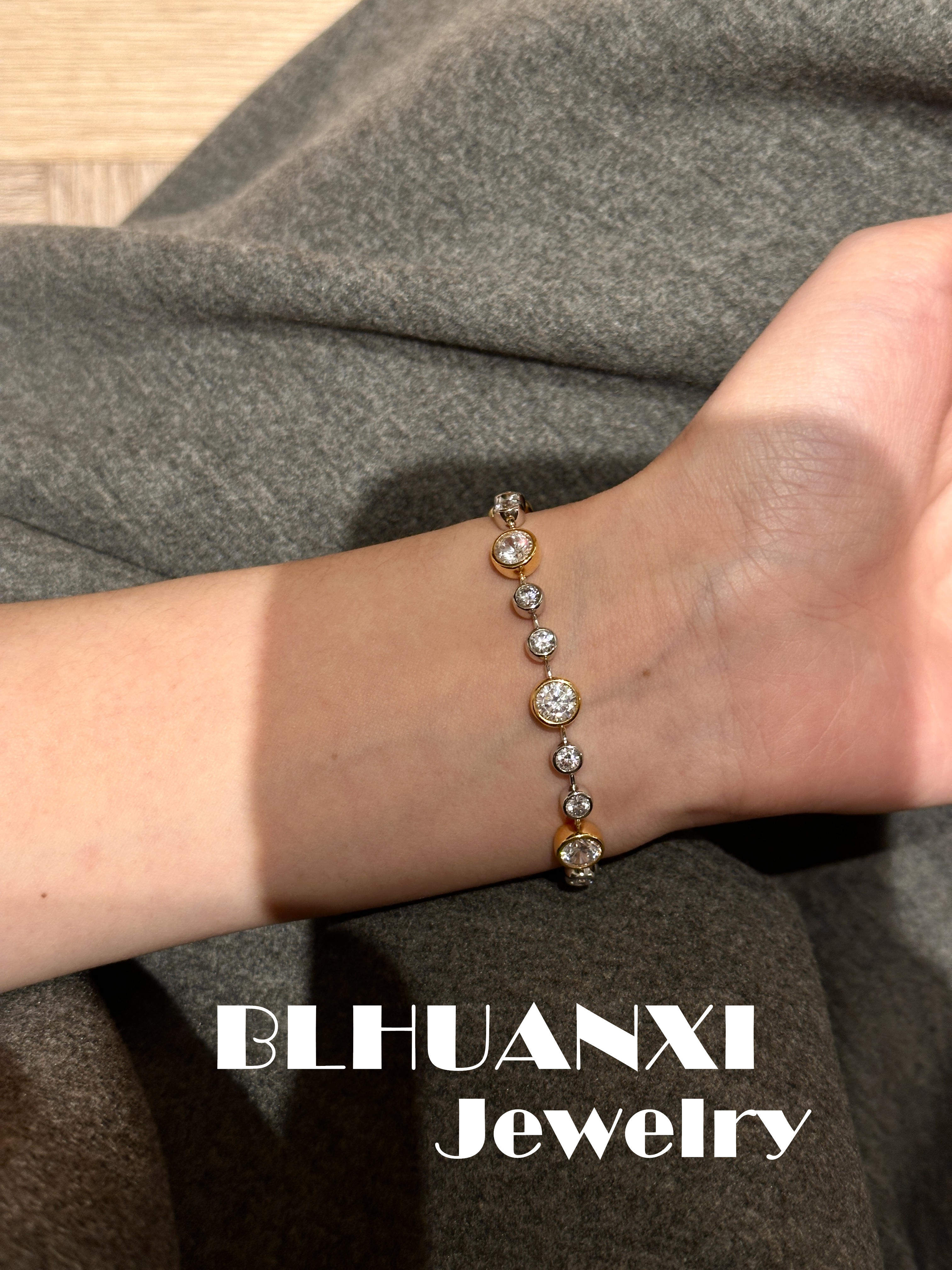 【Look for Joy】925 Silver Gold-Plated 1 Carat High Weight Version Thick Gold Bubble Diamond Gold and Silver Color-Separated Bracelet