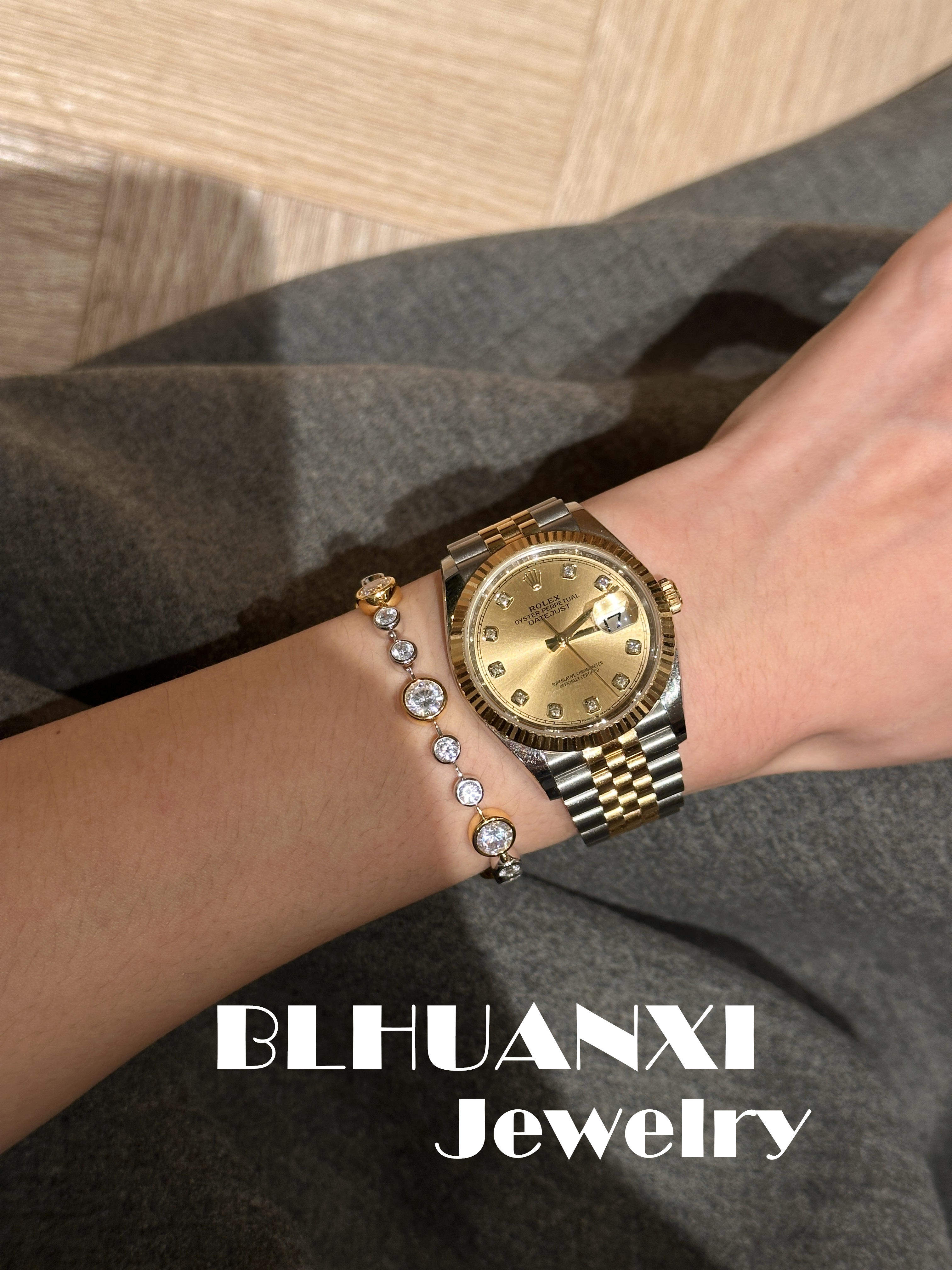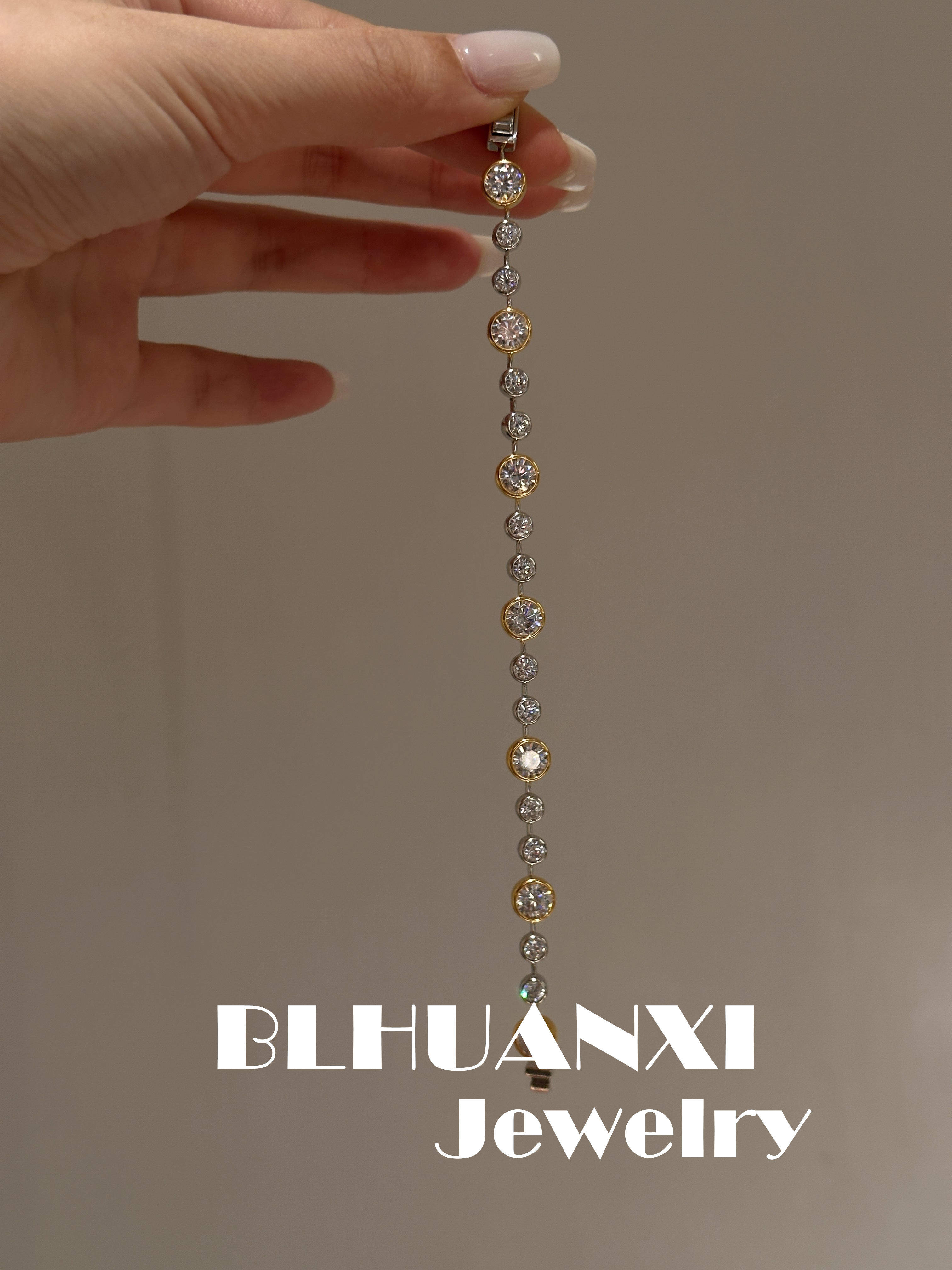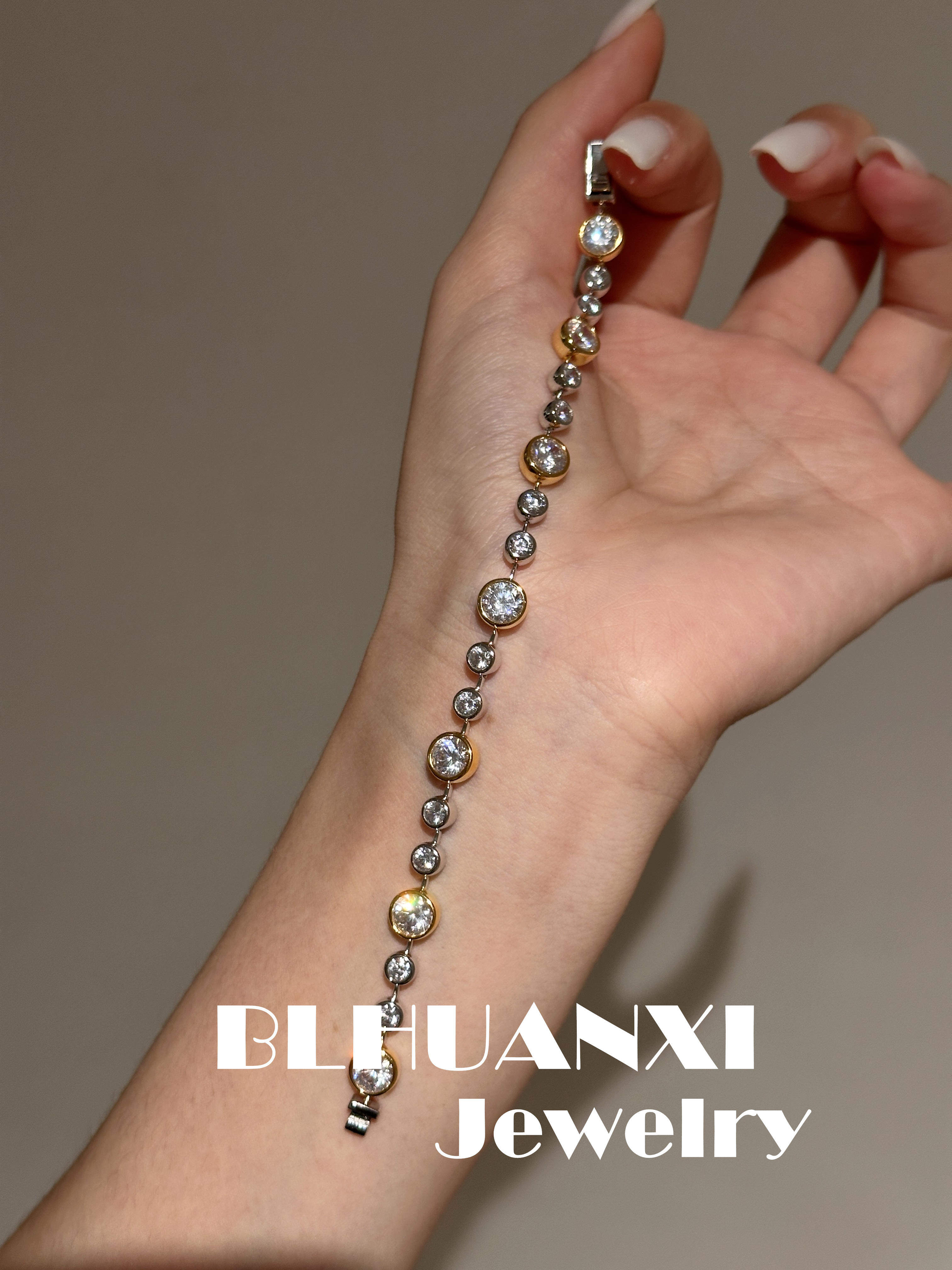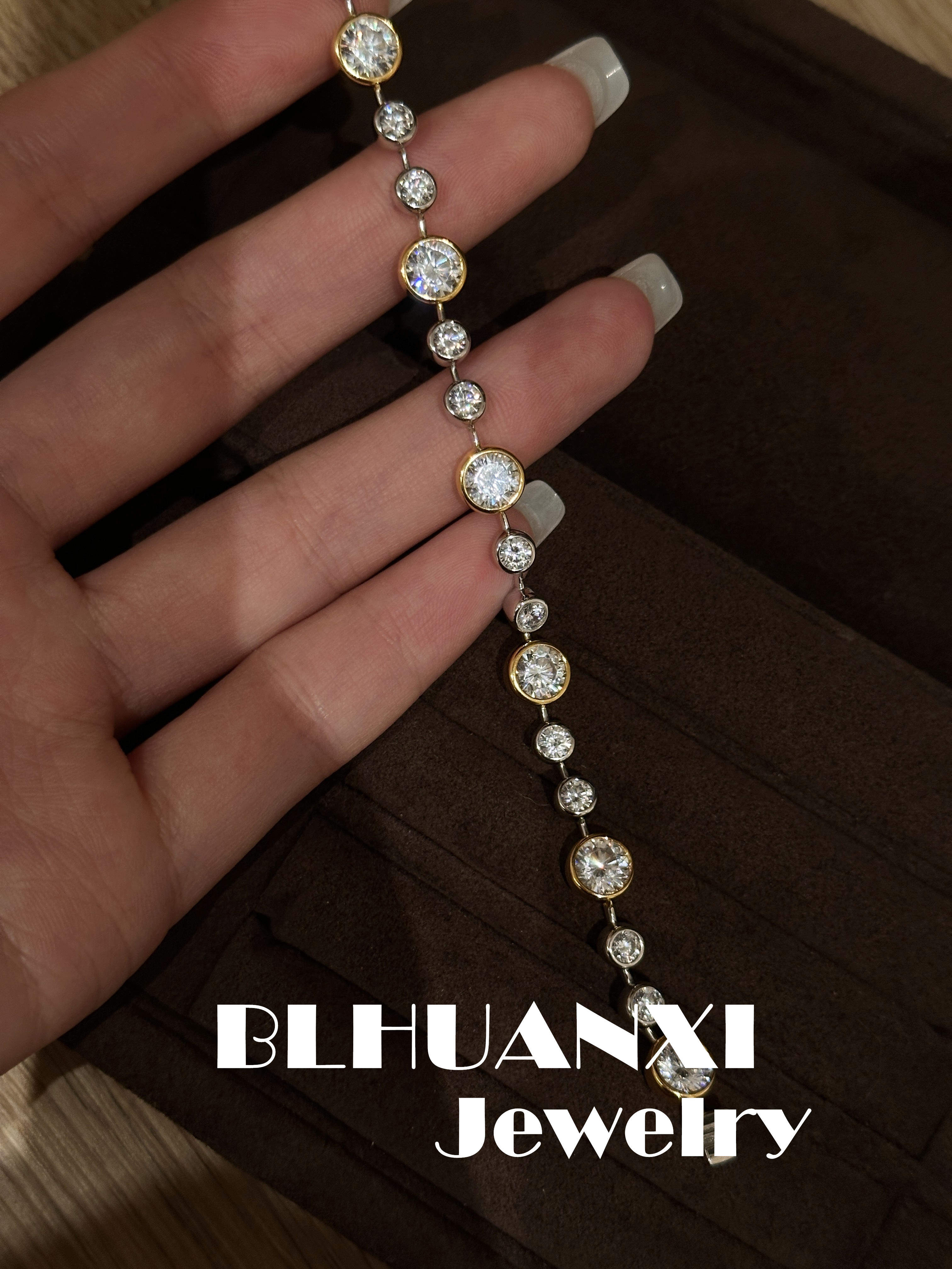 【Look for Joy】925 Silver Gold-Plated 1 Carat High Weight Version Thick Gold Bubble Diamond Gold and Silver Color-Separated Bracelet