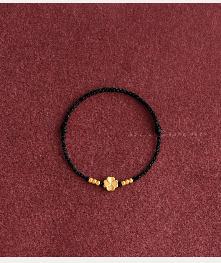 999 Pure Gold Four-Leaf Clover Red String Bracelet Anklet for Men and Women, Gold Fortune Bead, Zodiac Year Safety Woven Bracelet