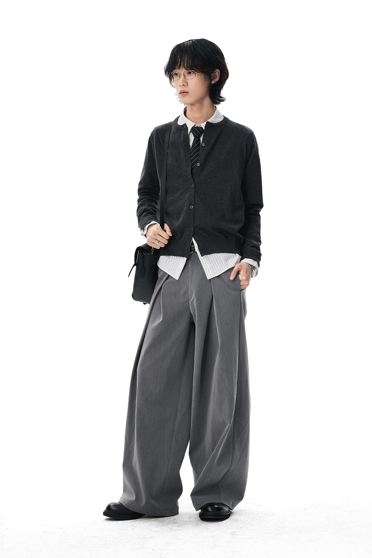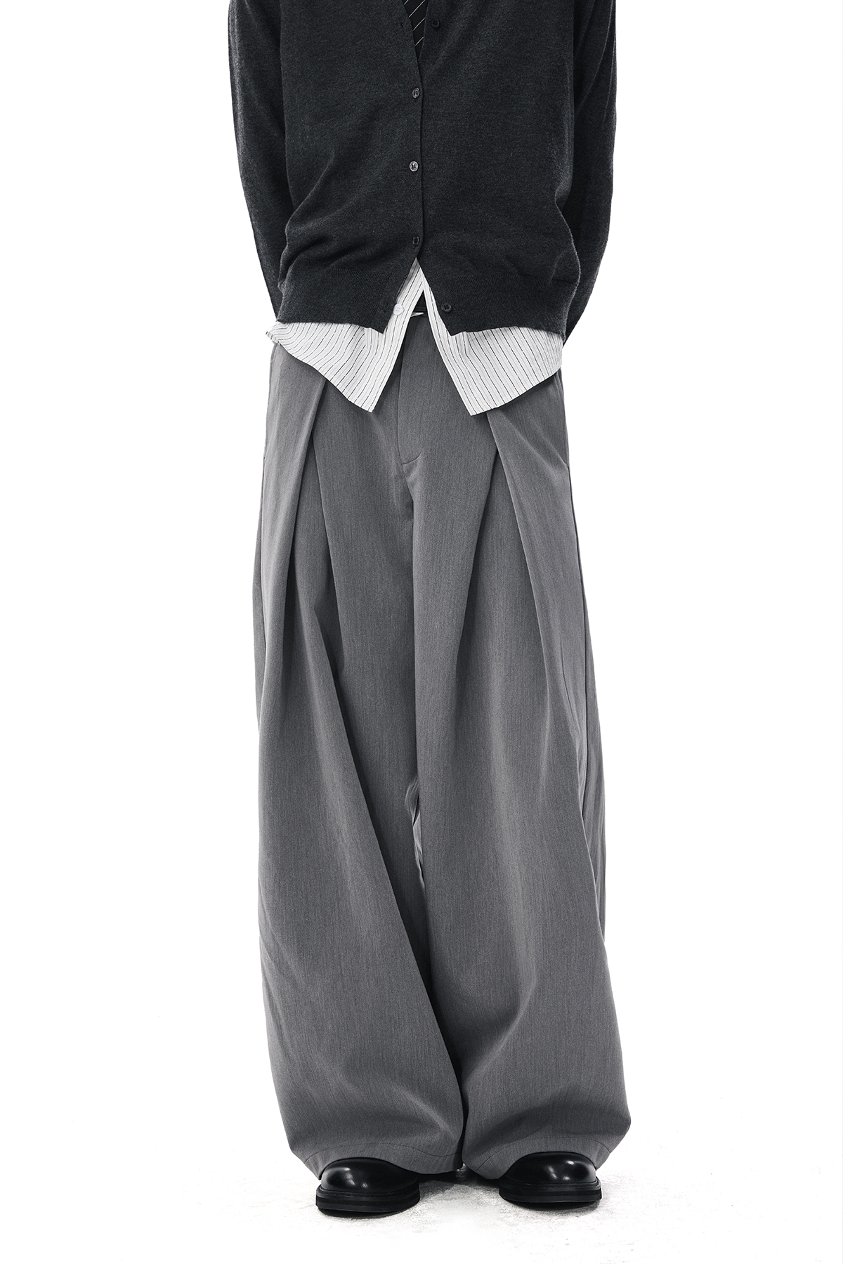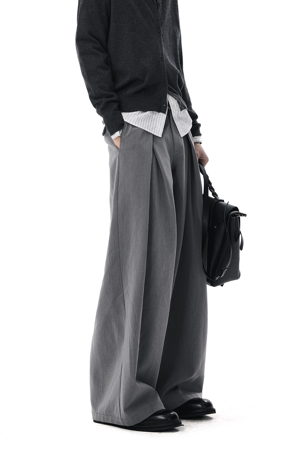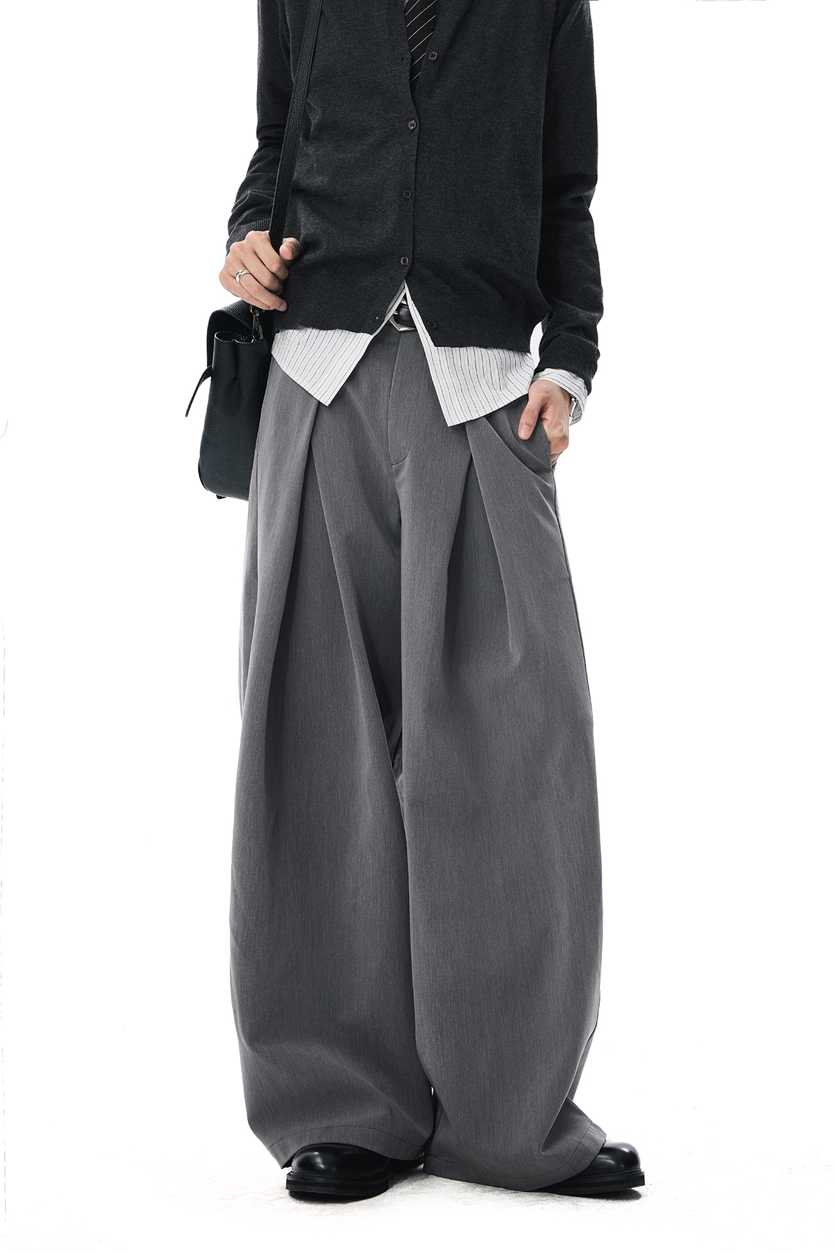 Sameuoo Loose-Fitting Cultural Gray Straight-Leg Dress Pants for Autumn, Wrinkle-Resistant and Easy to Care For, Three-Dimensional Pleats, Unisex Style