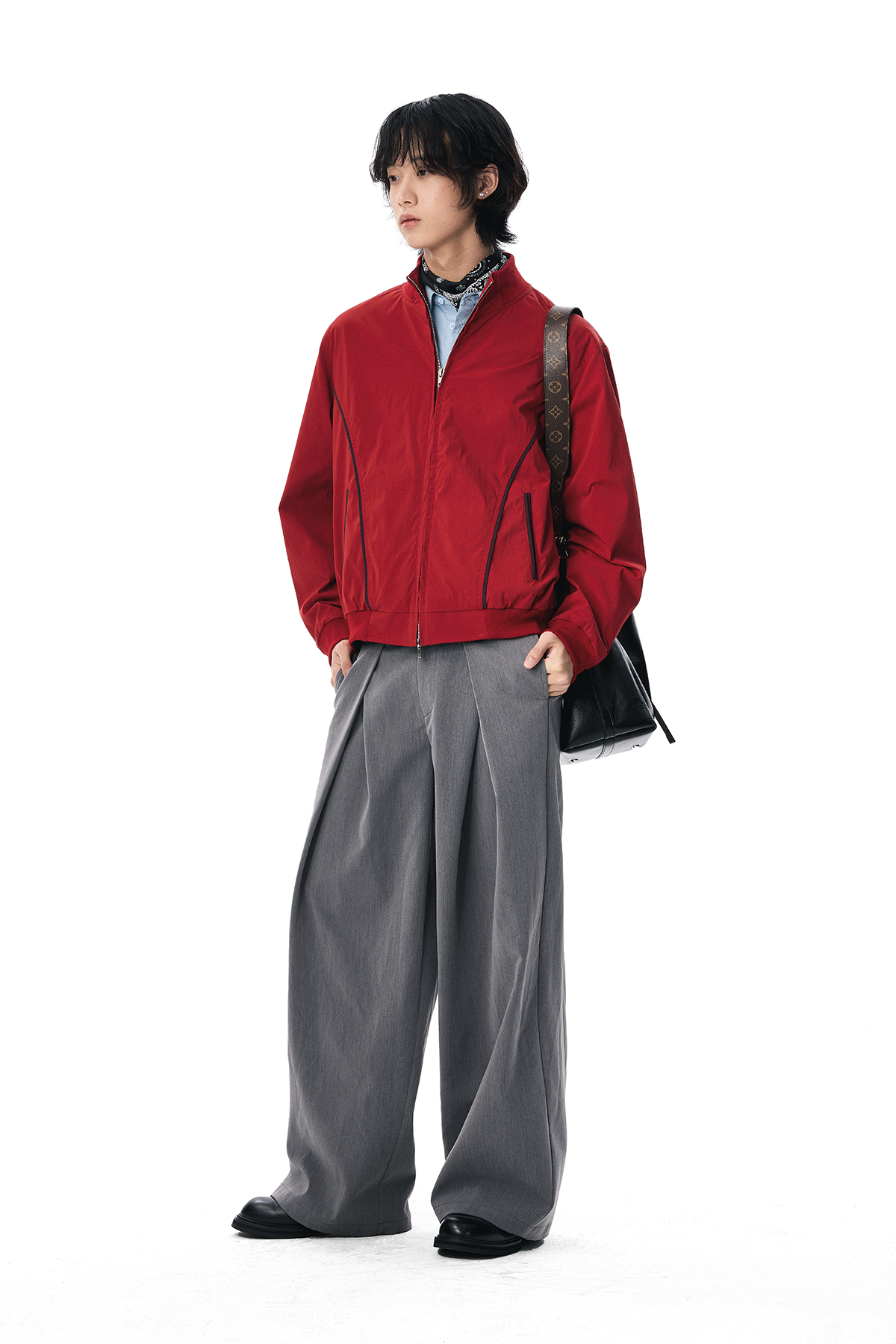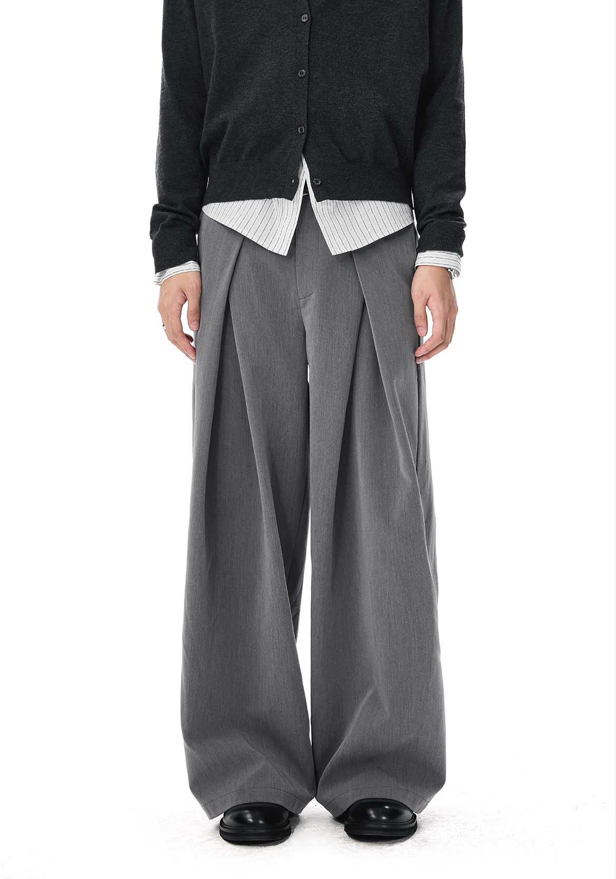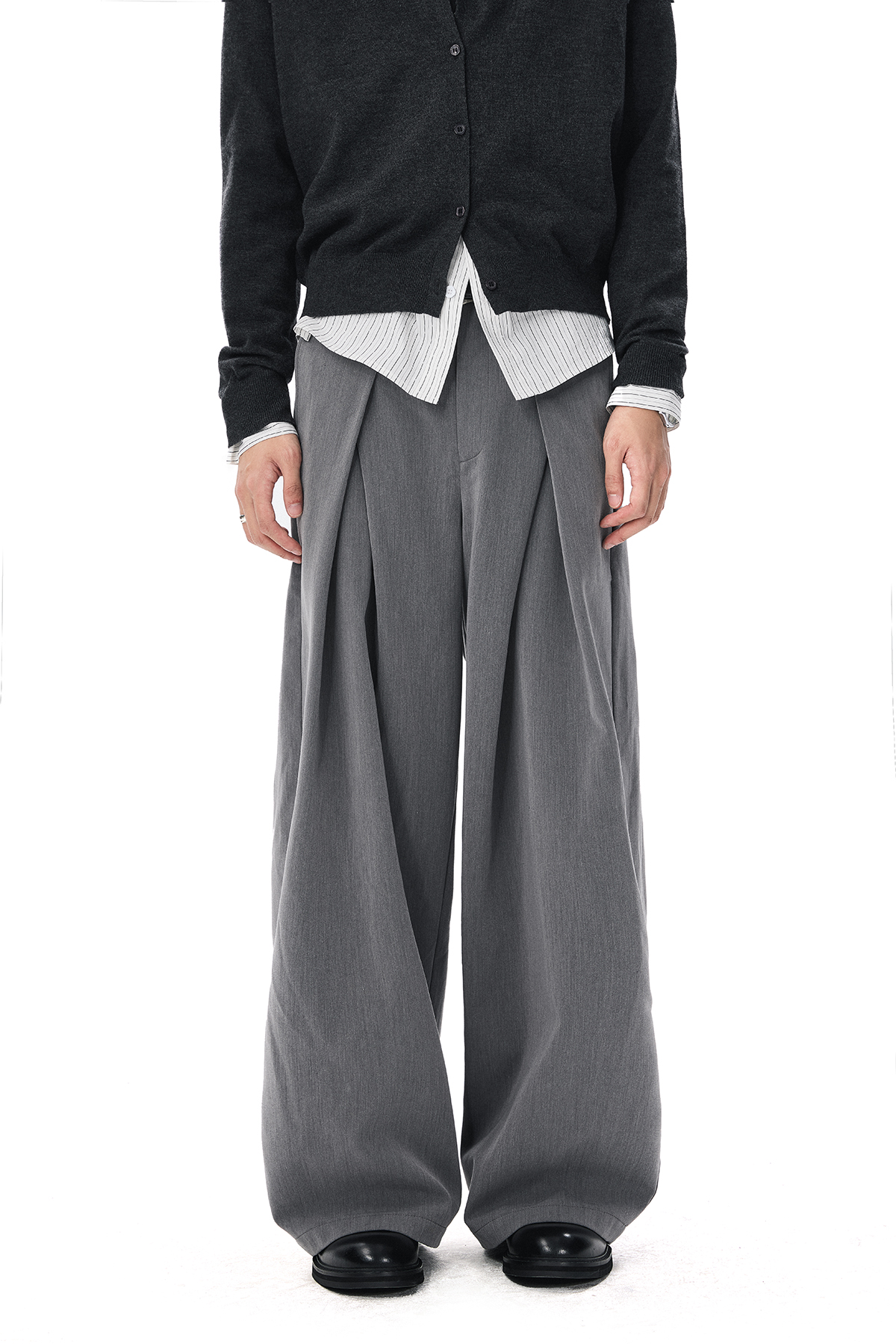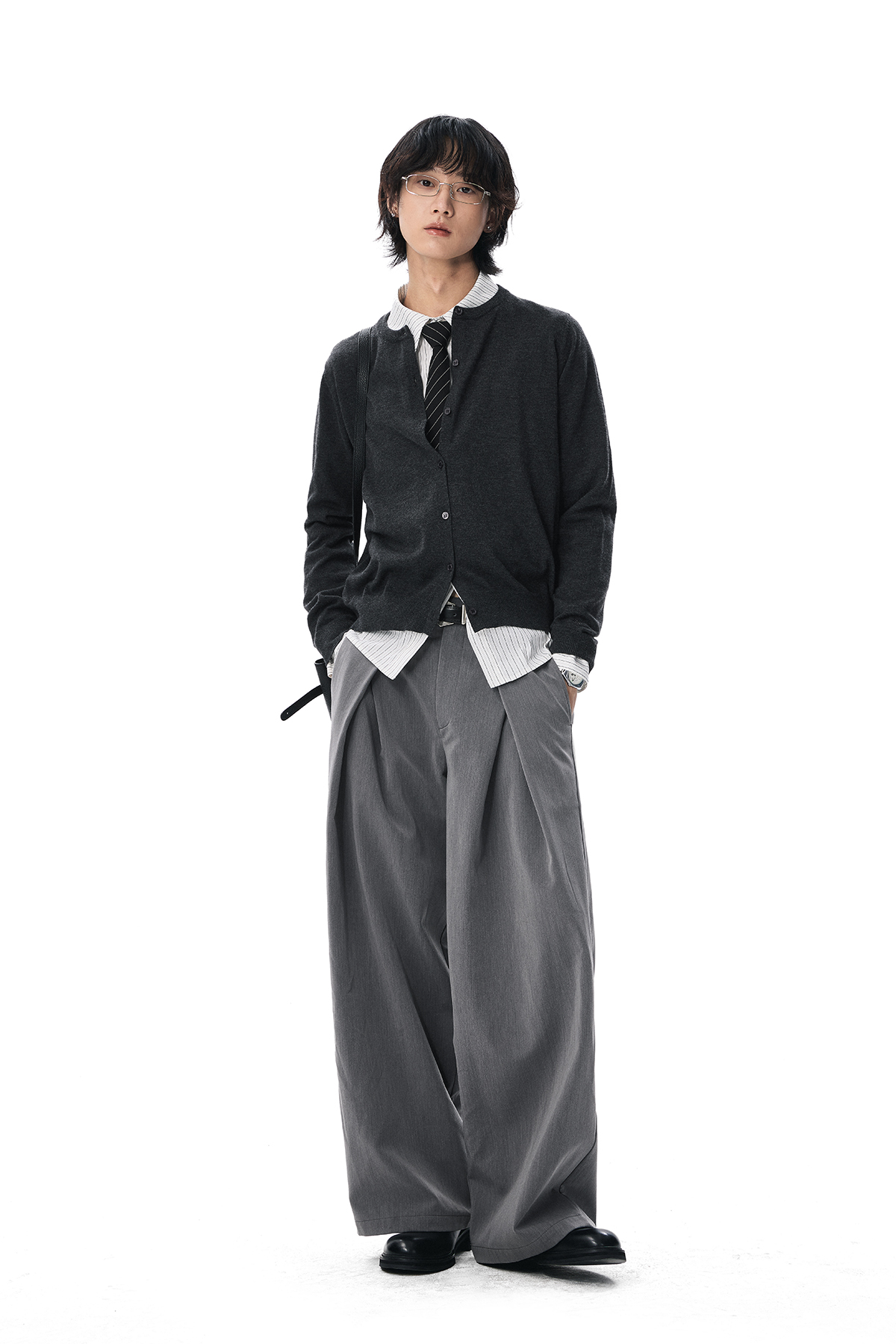 Sameuoo Loose-Fitting Cultural Gray Straight-Leg Dress Pants for Autumn, Wrinkle-Resistant and Easy to Care For, Three-Dimensional Pleats, Unisex Style