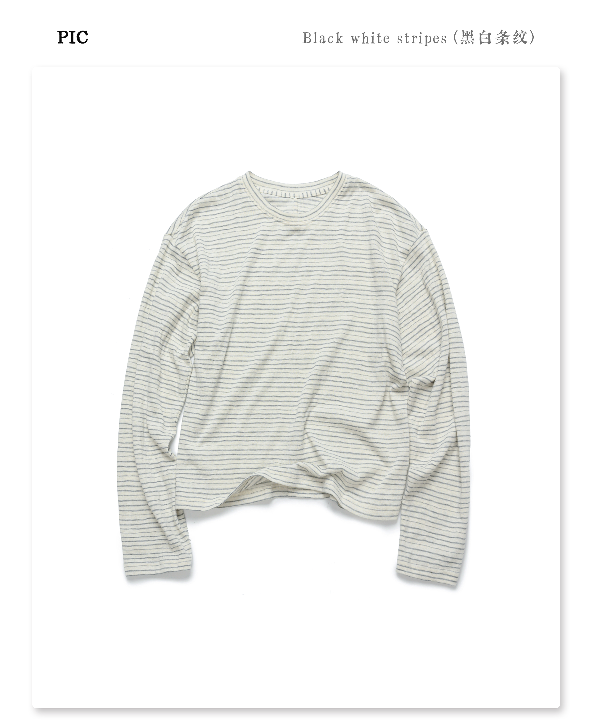 Set for Life 「Original Authentic」Six-Color Striped Lazy Casual Short Wide Round Neck Long-Sleeve T-Shirt Base Layer