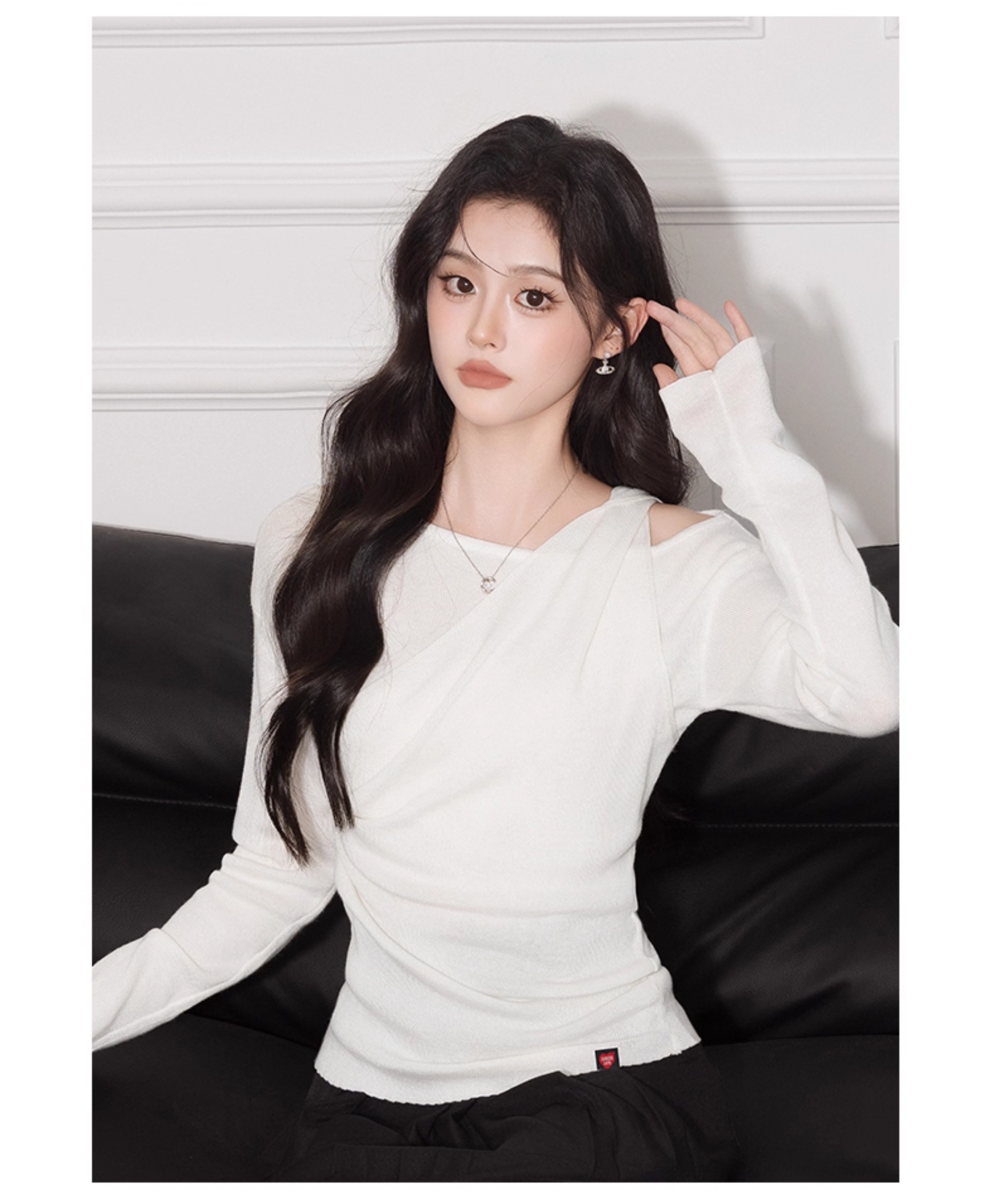 it :CHOCOOLATE pink oblique collar ruched Long sleeves T-shirt female 2025 New arrival pure wind Elegant Tops