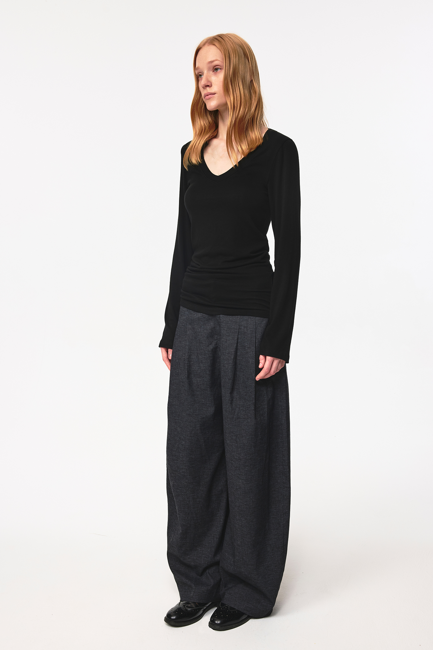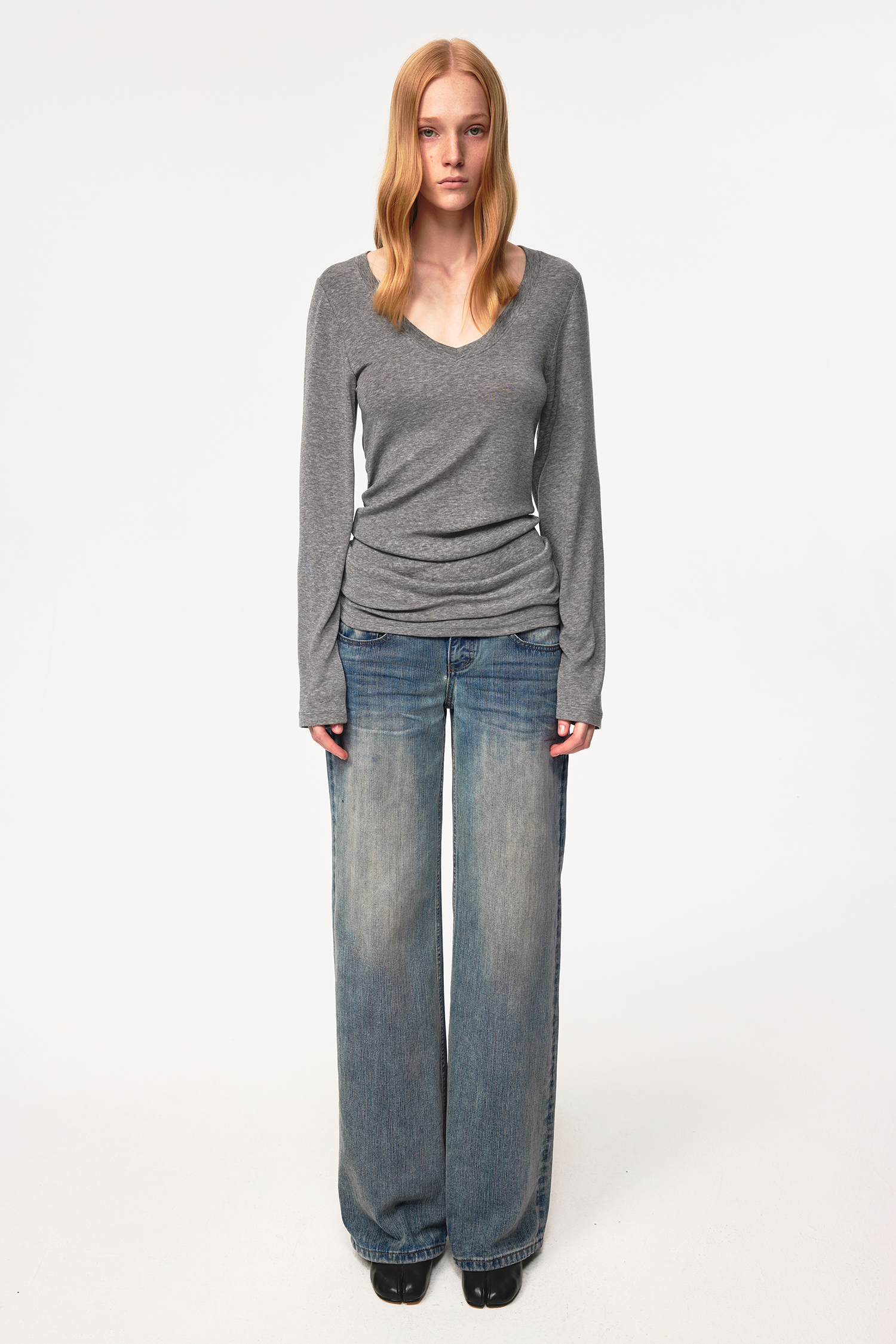 Northbutsouth Lightweight V-Neck Tencel Wool Waist-Slimming Long-Sleeved Stacked T-Shirt